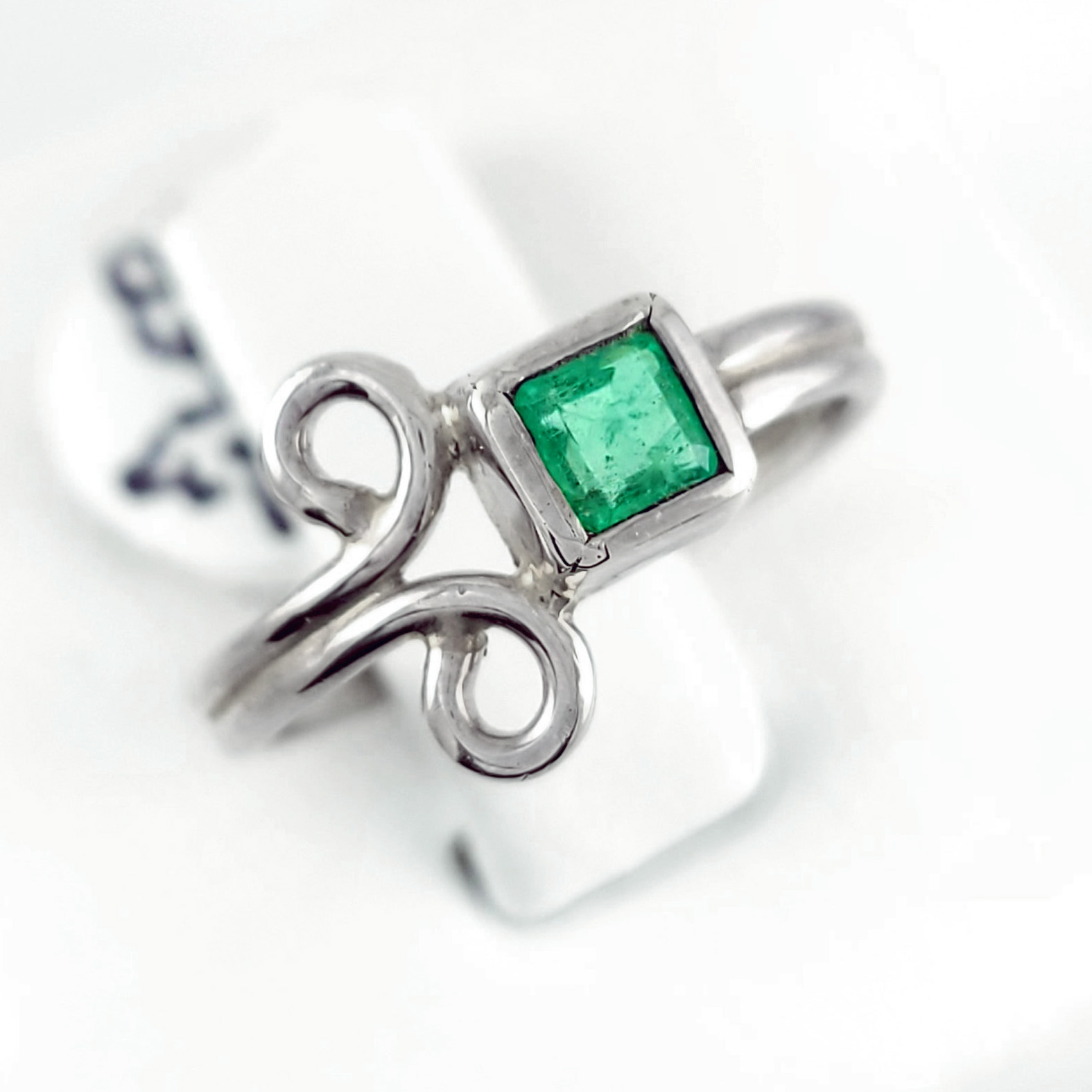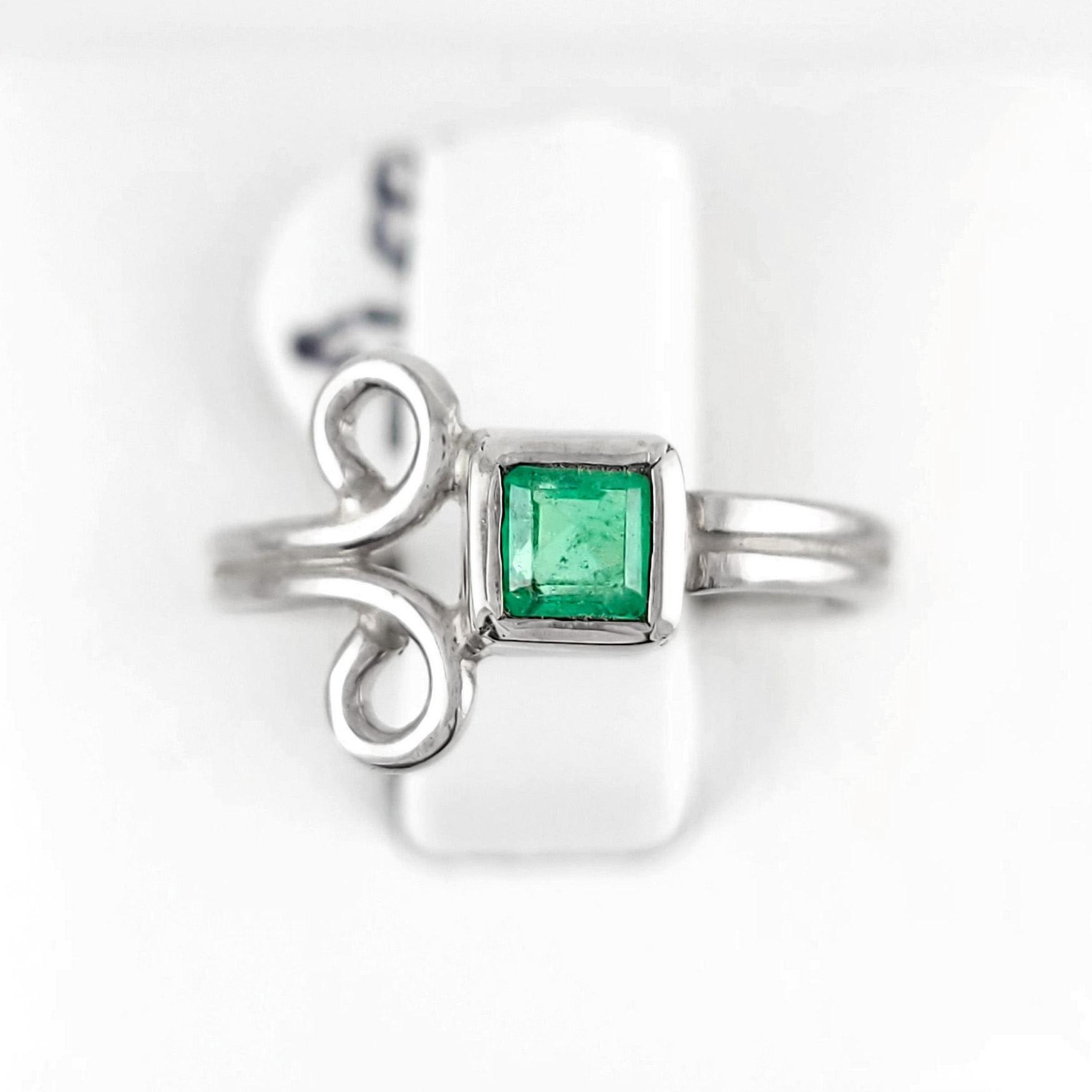 Anillo de plata sólida con esmeralda natural Colombiana. Peso total de la(s) esmeralda(s) 0.32kt