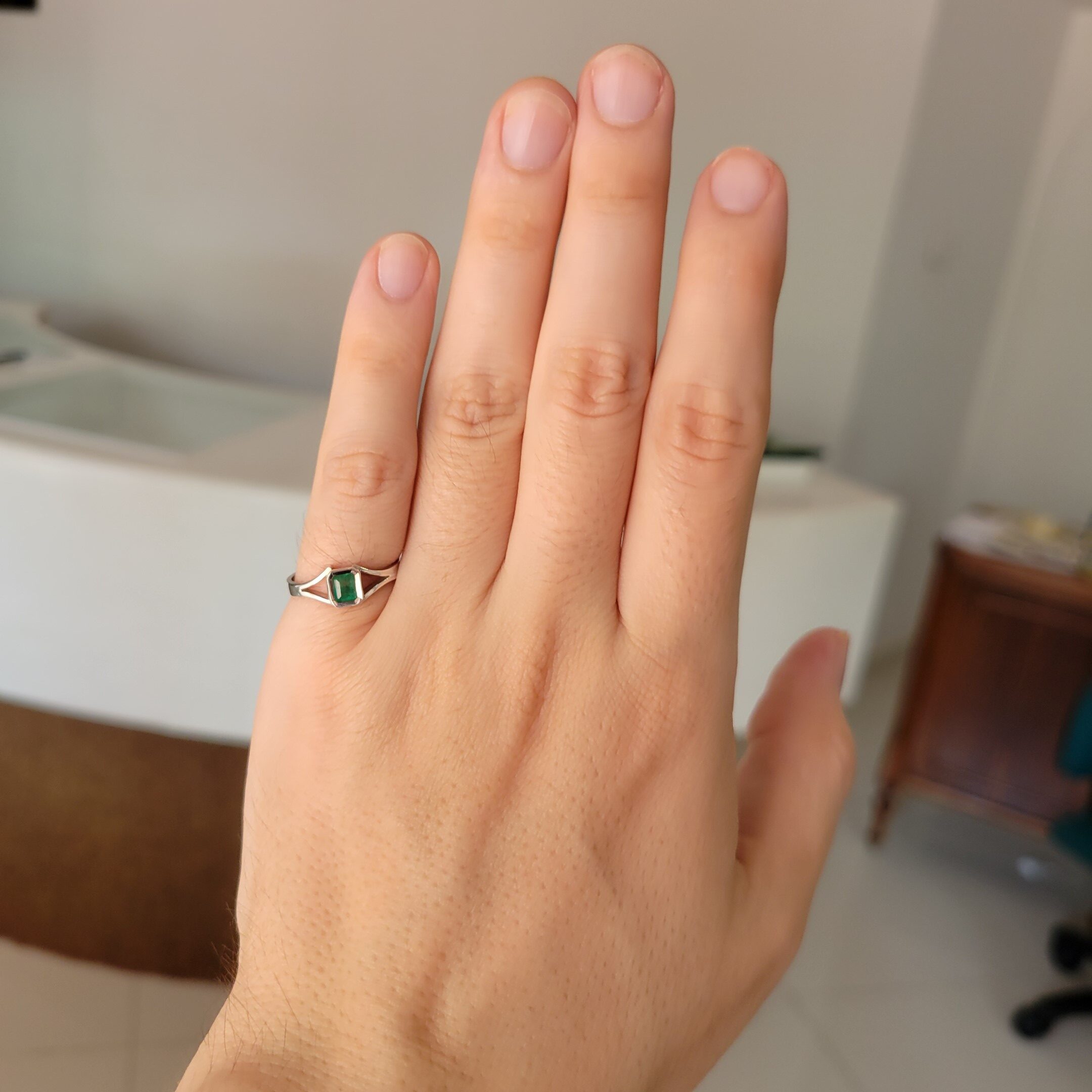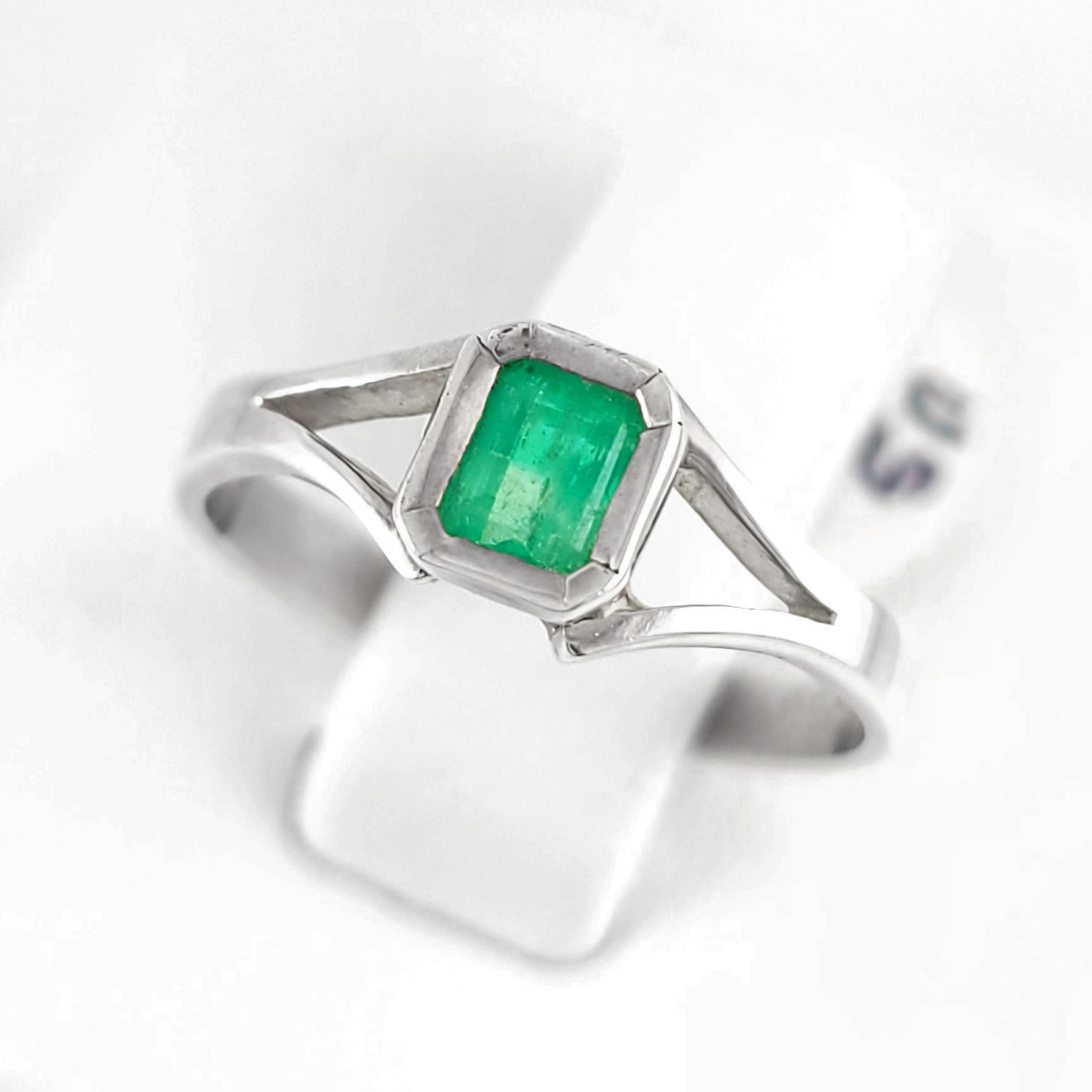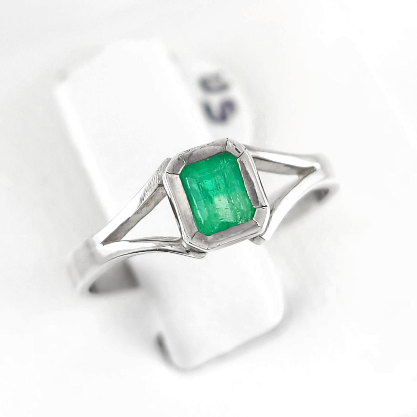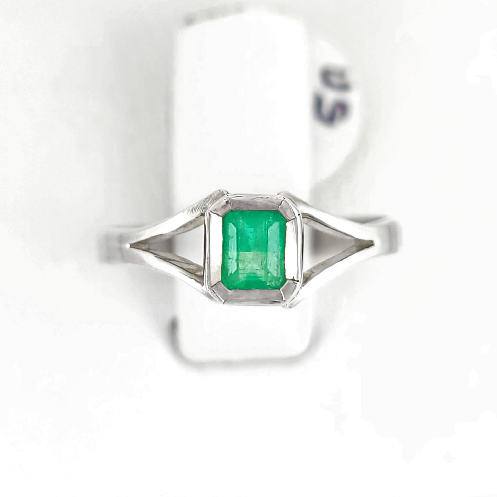 Anillo de plata sólida con esmeralda natural Colombiana. Peso total de la(s) esmeralda(s) 0.40kt