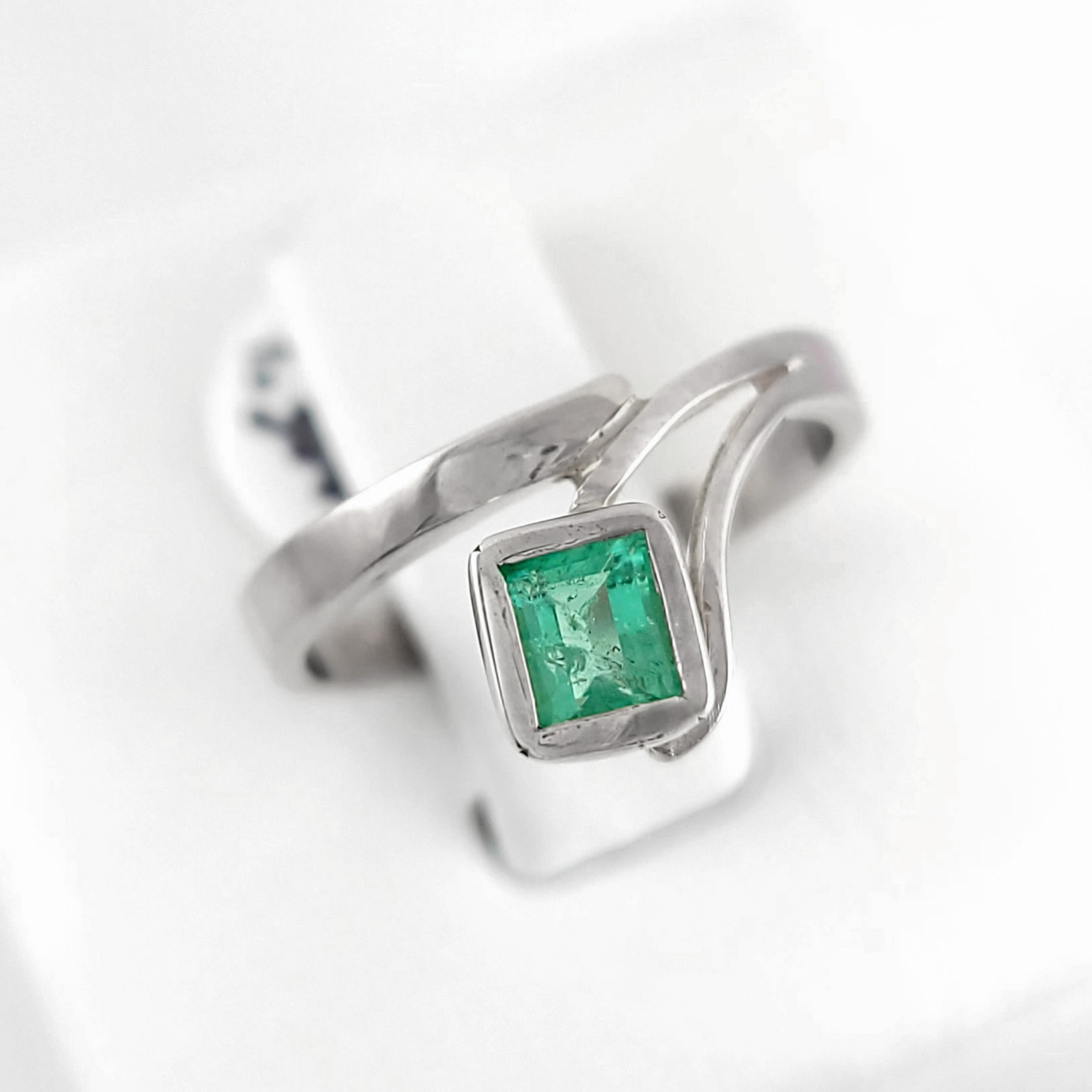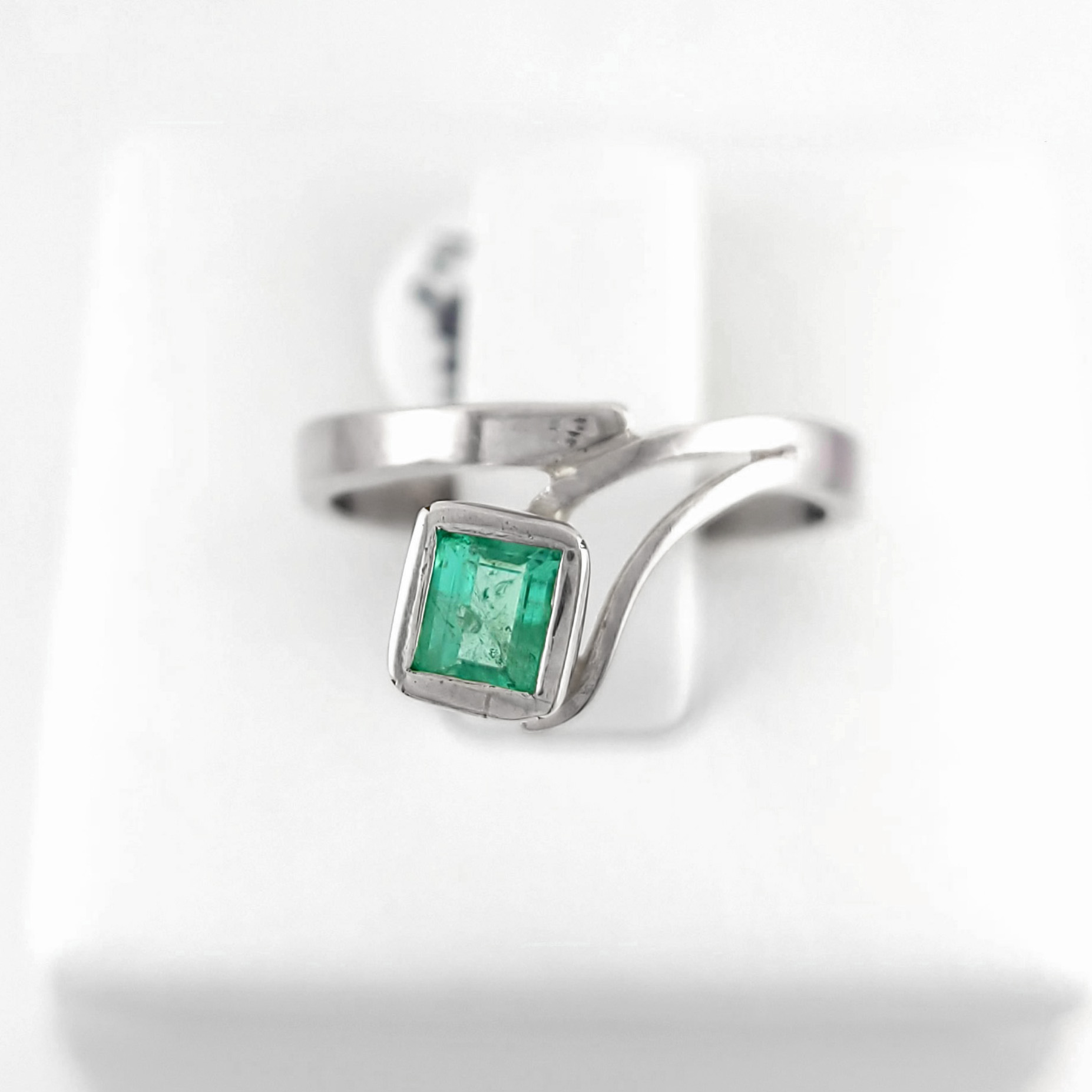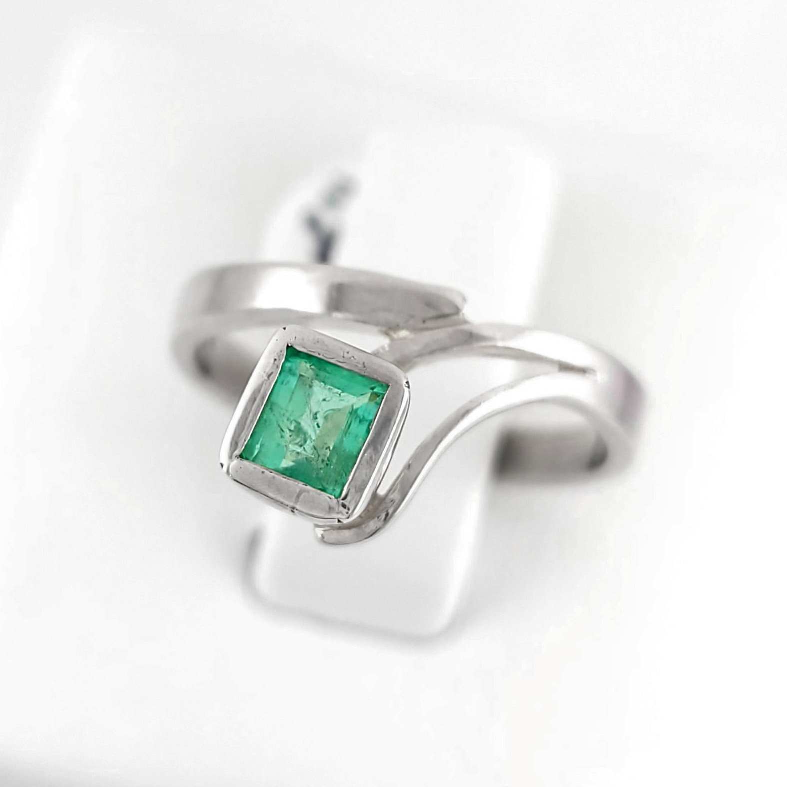Anillo de plata sólida con esmeralda natural Colombiana. Peso total de la(s) esmeralda(s) 0.50kt