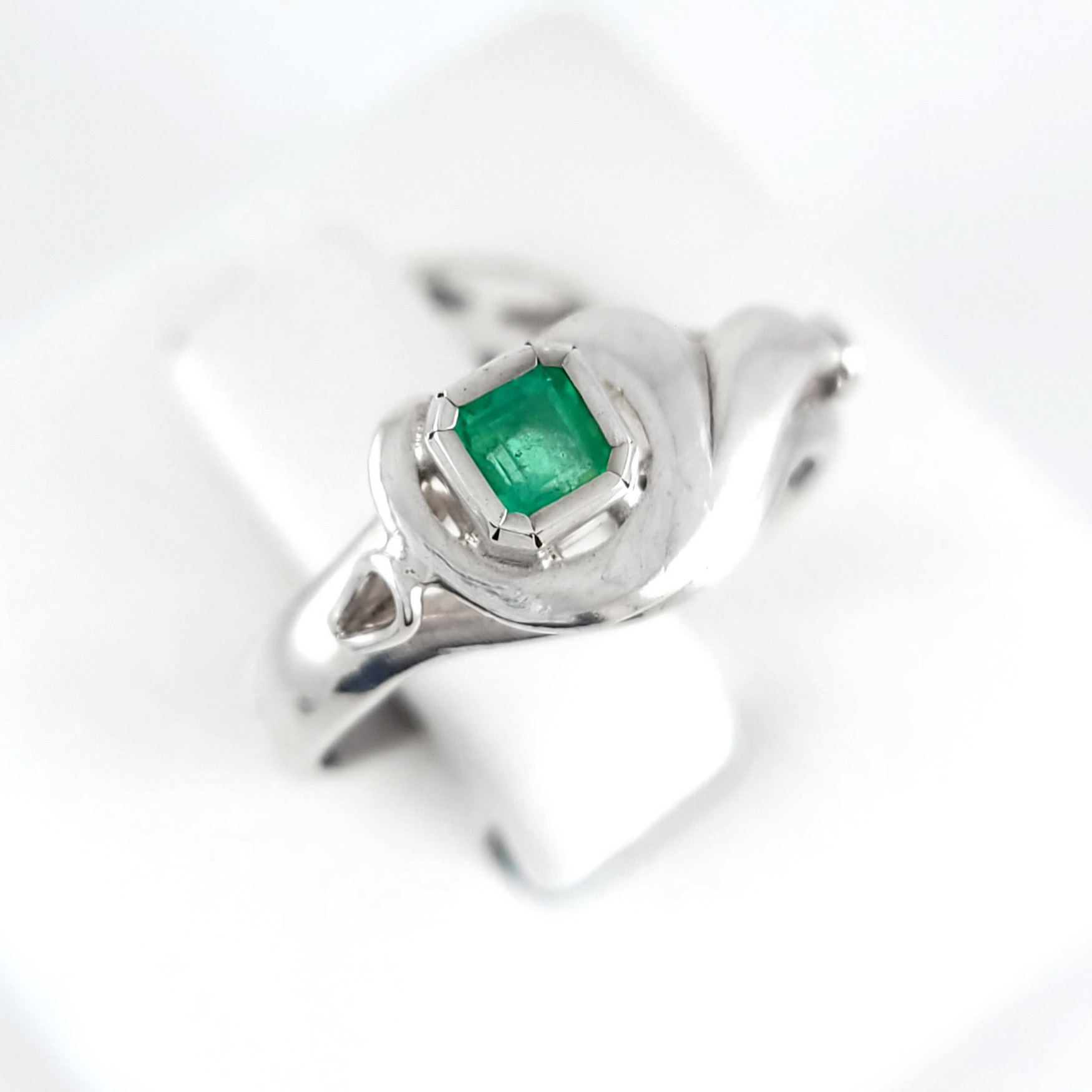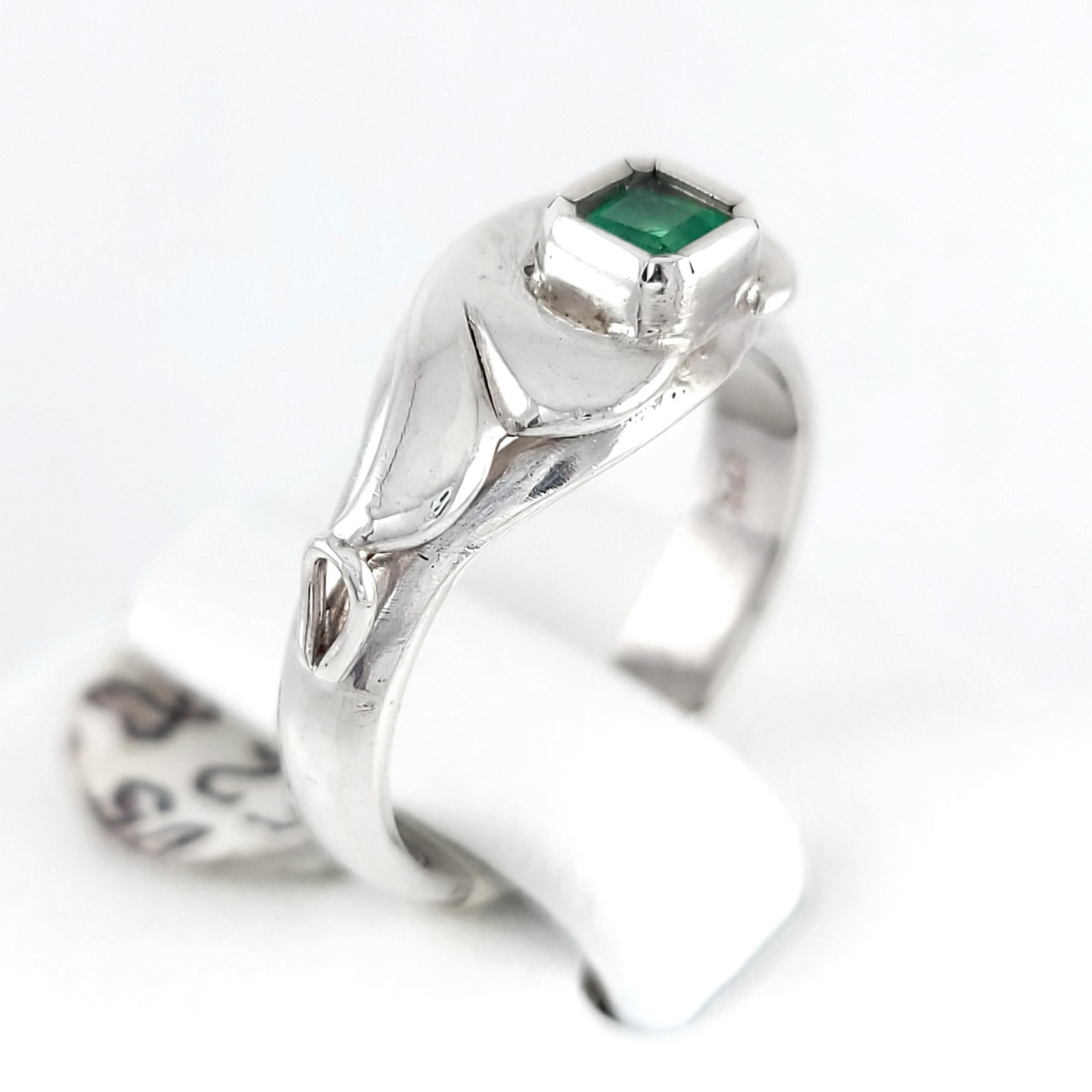 Anillo de plata sólida con esmeralda natural Colombiana. Peso total de la(s) esmeralda(s) 0.30kt