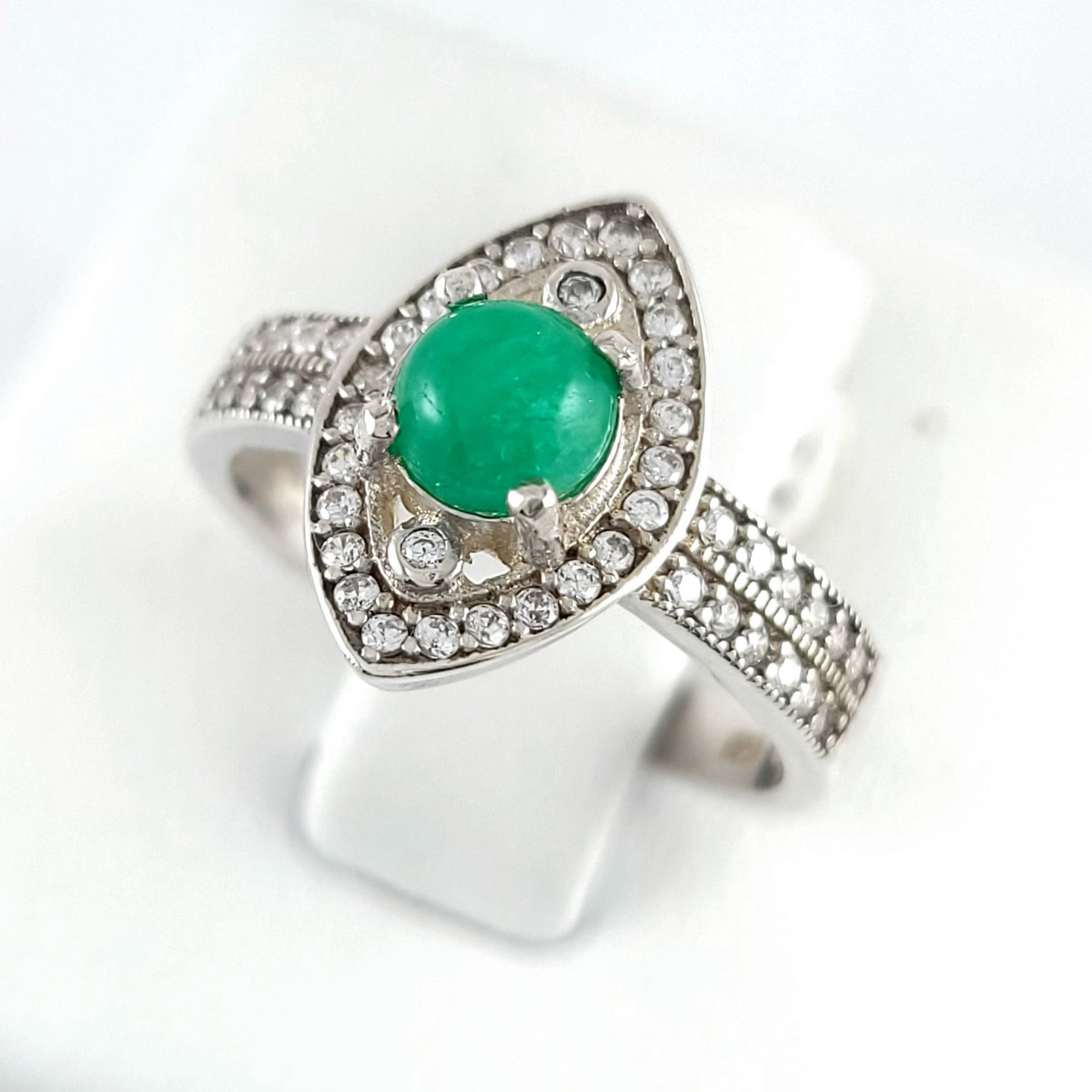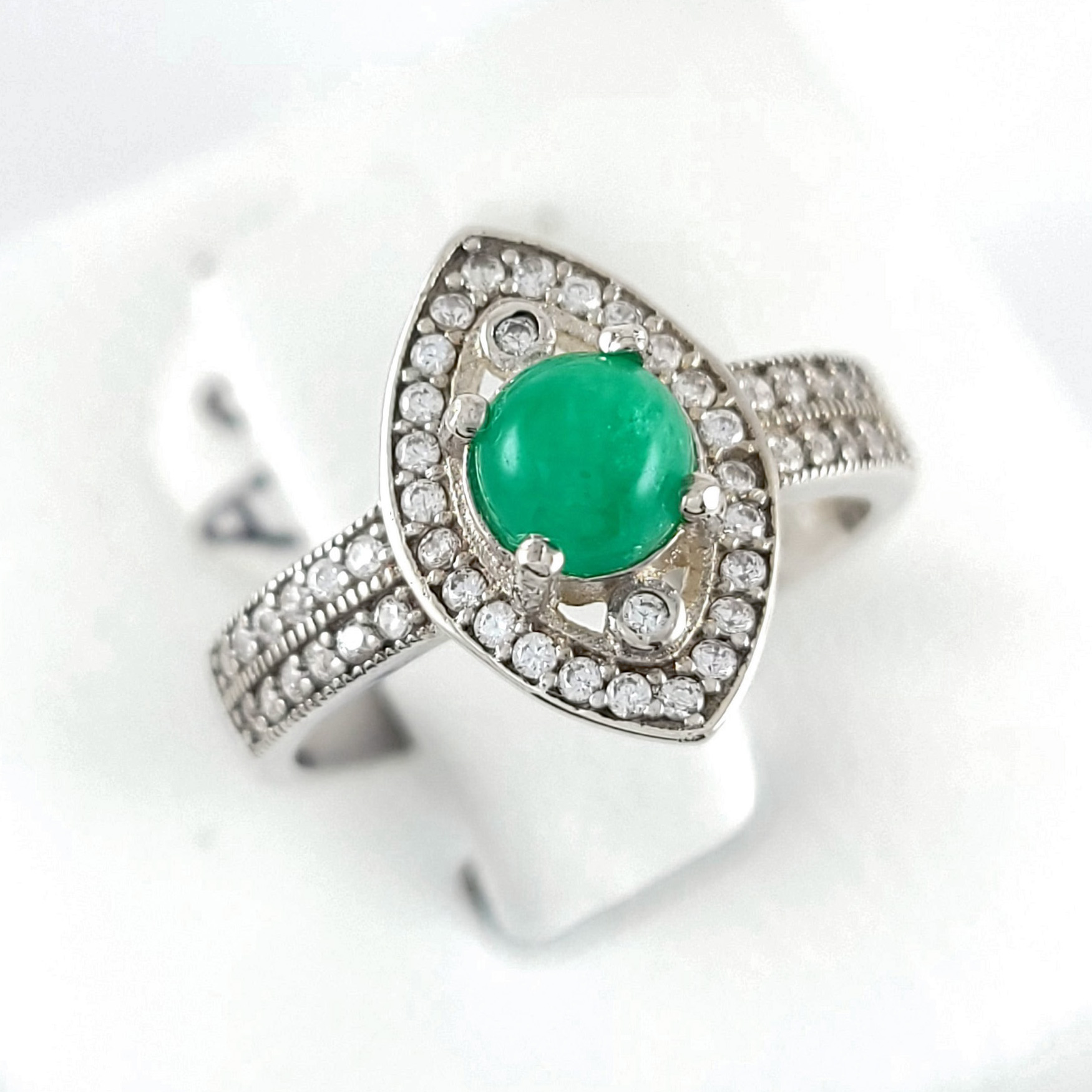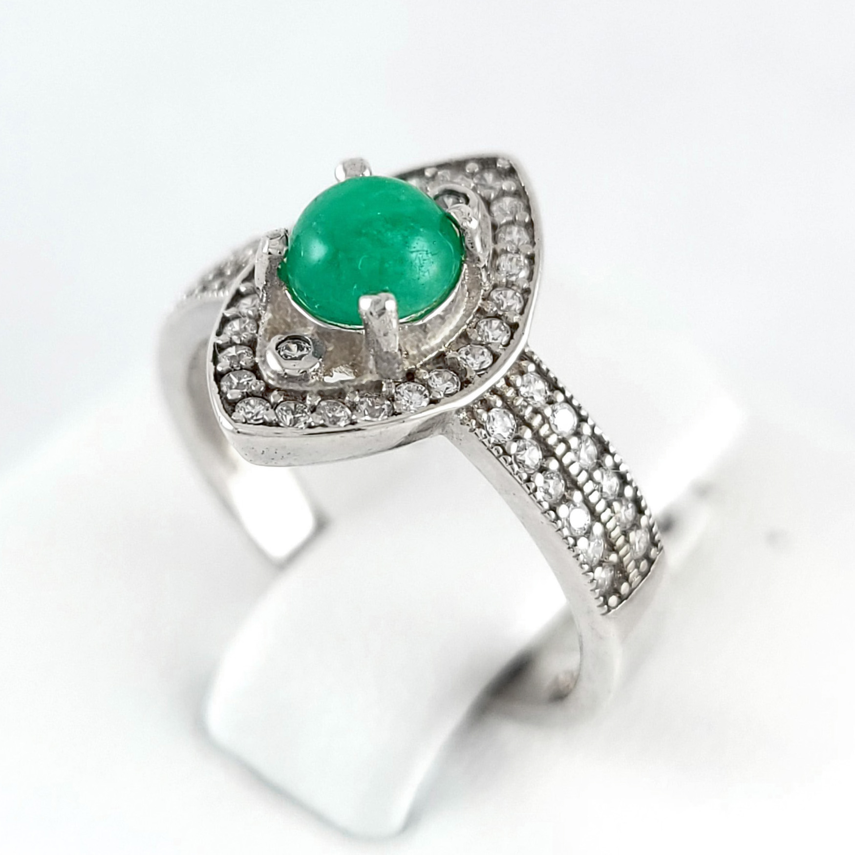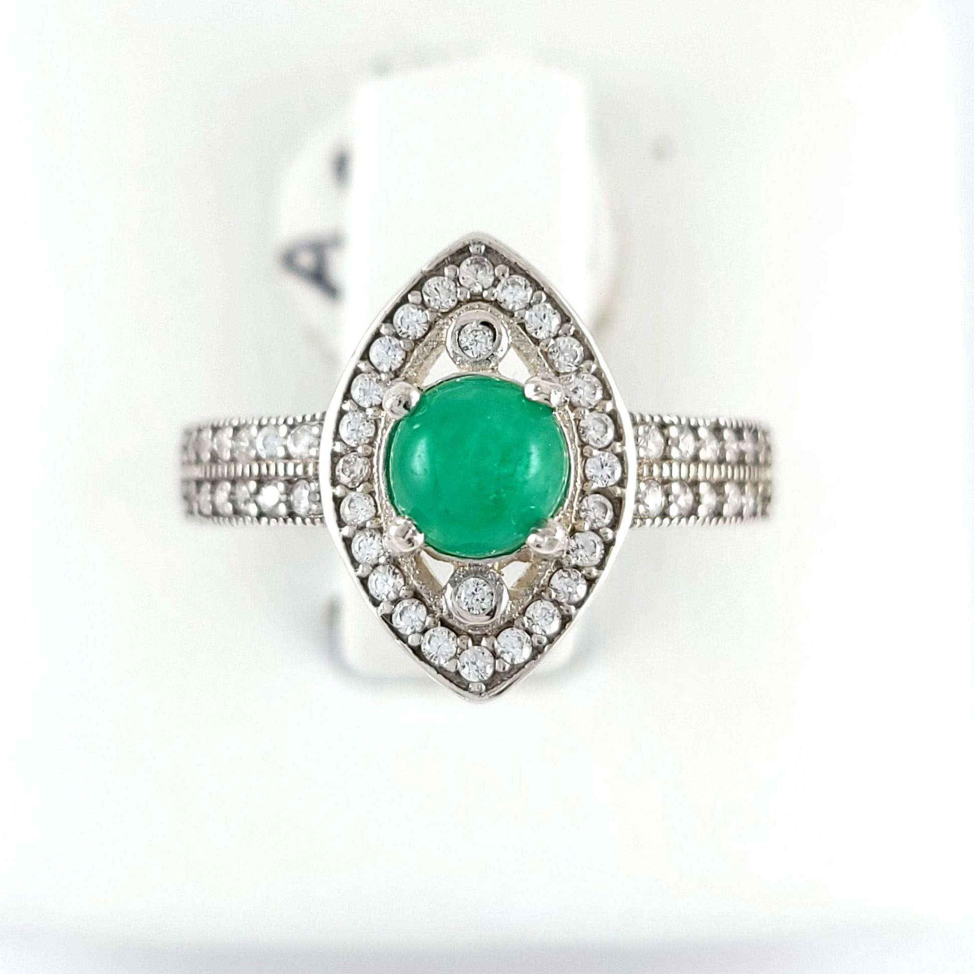 Anillo de plata sólida con esmeralda natural Colombiana y circones. Peso total de la(s) esmeralda(s) 0.69kt