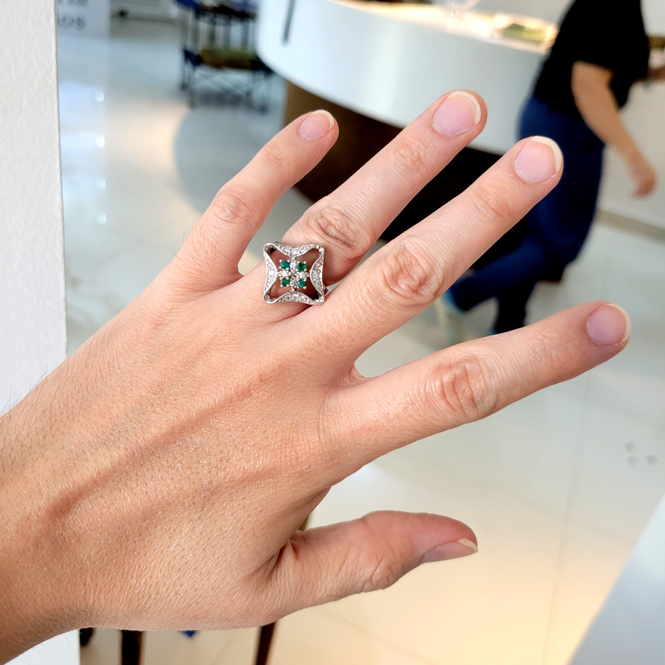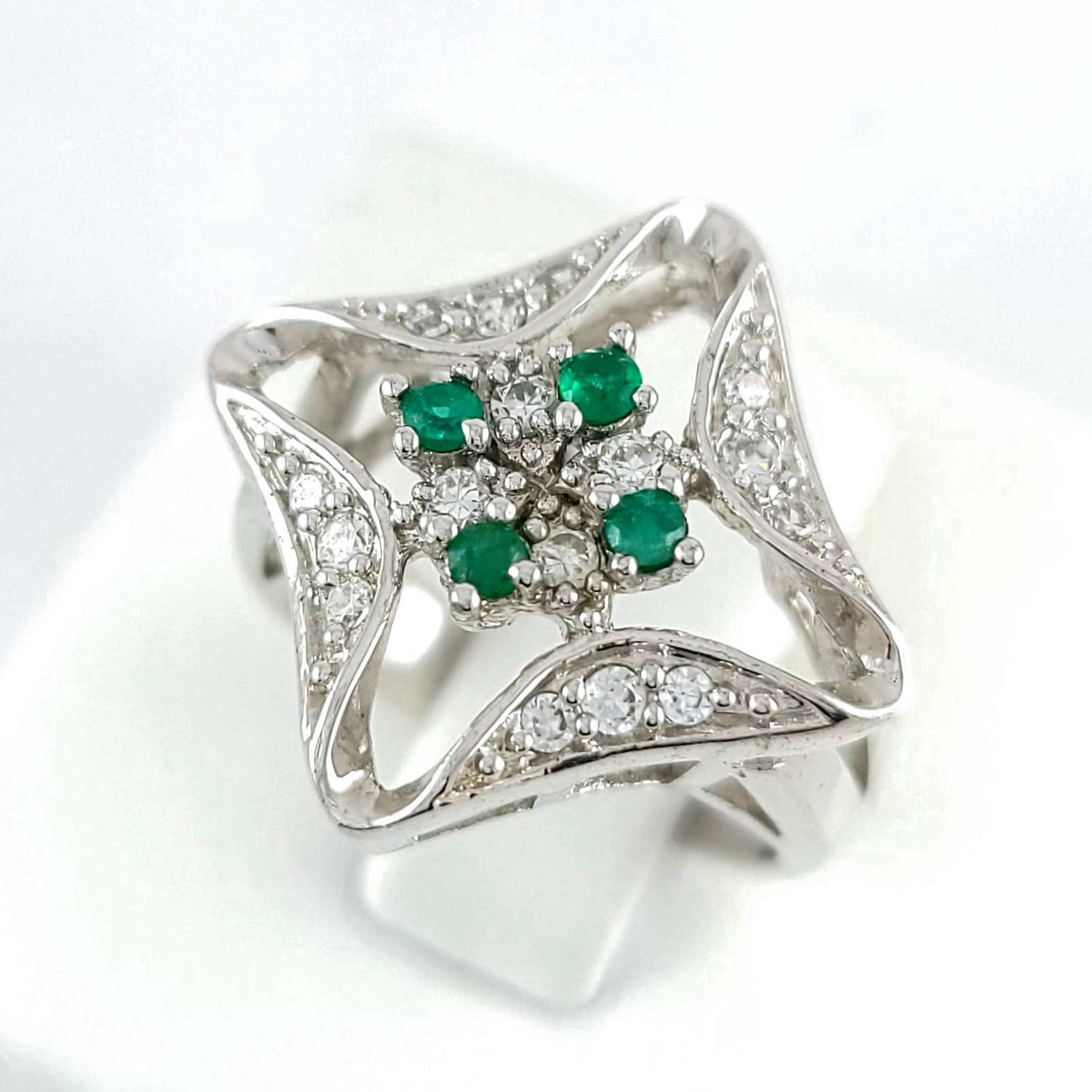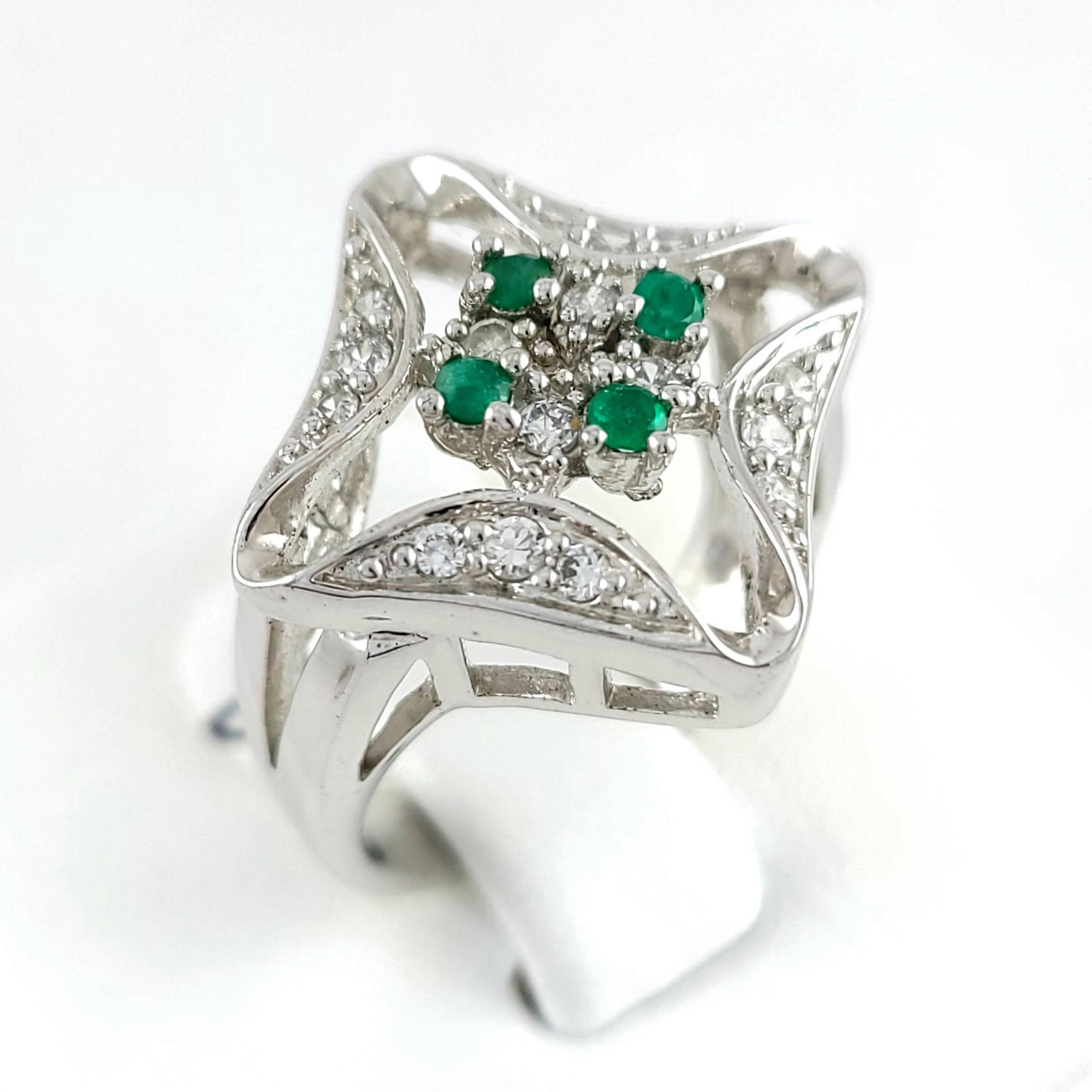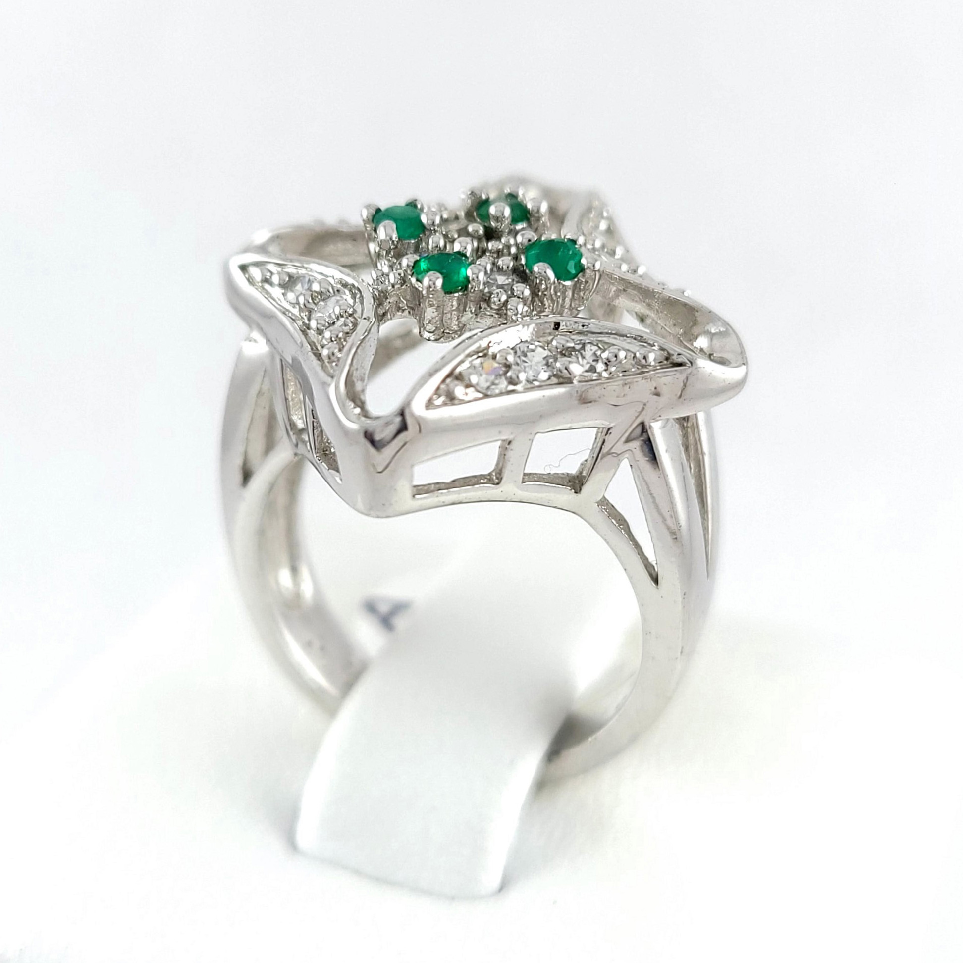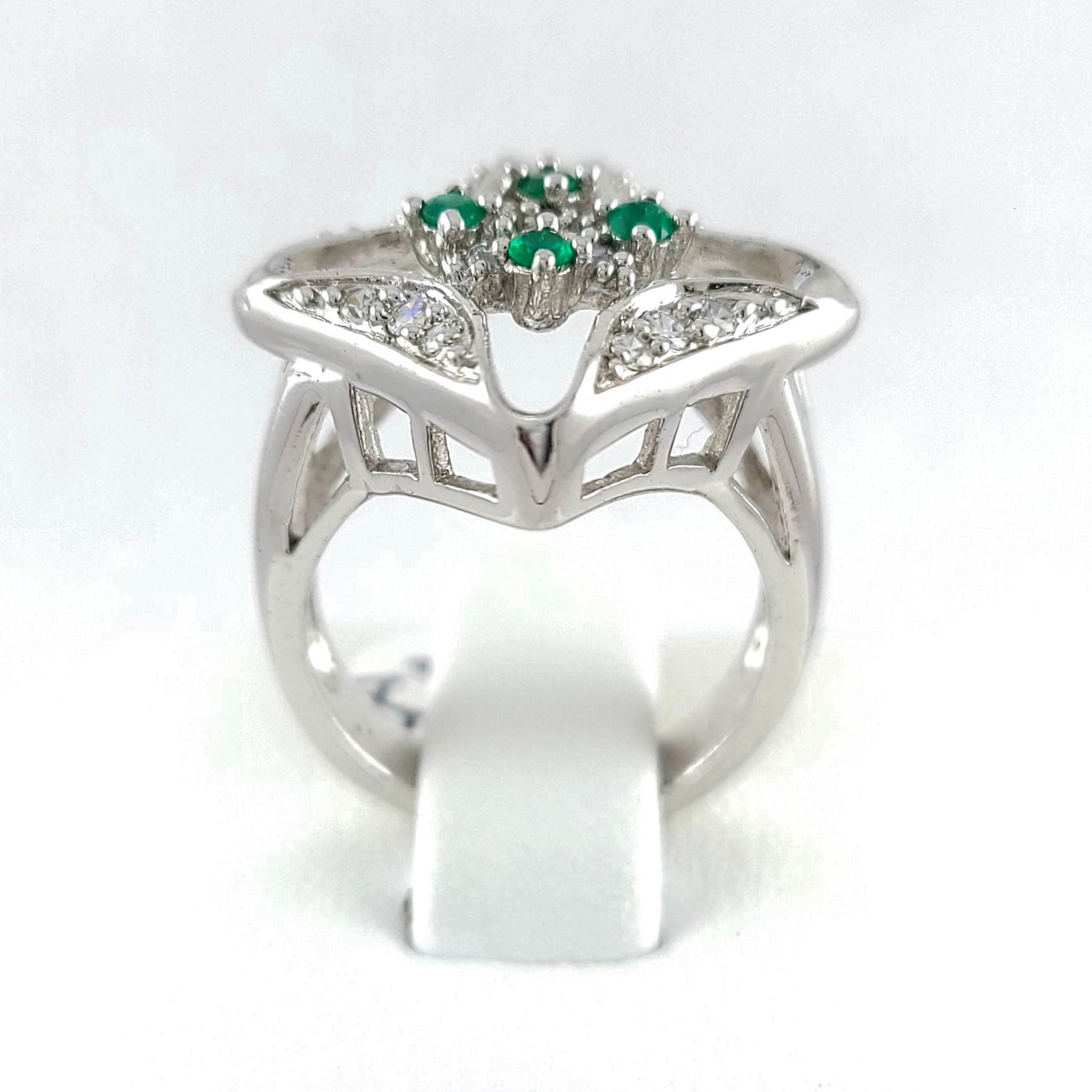 Anillo de plata sólida con esmeralda natural Colombiana y circones. Peso total de la(s) esmeralda(s) 0.40kt