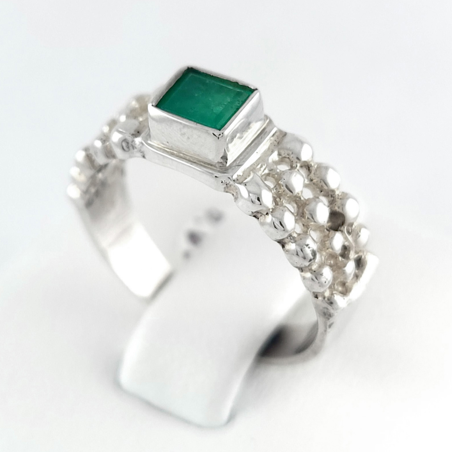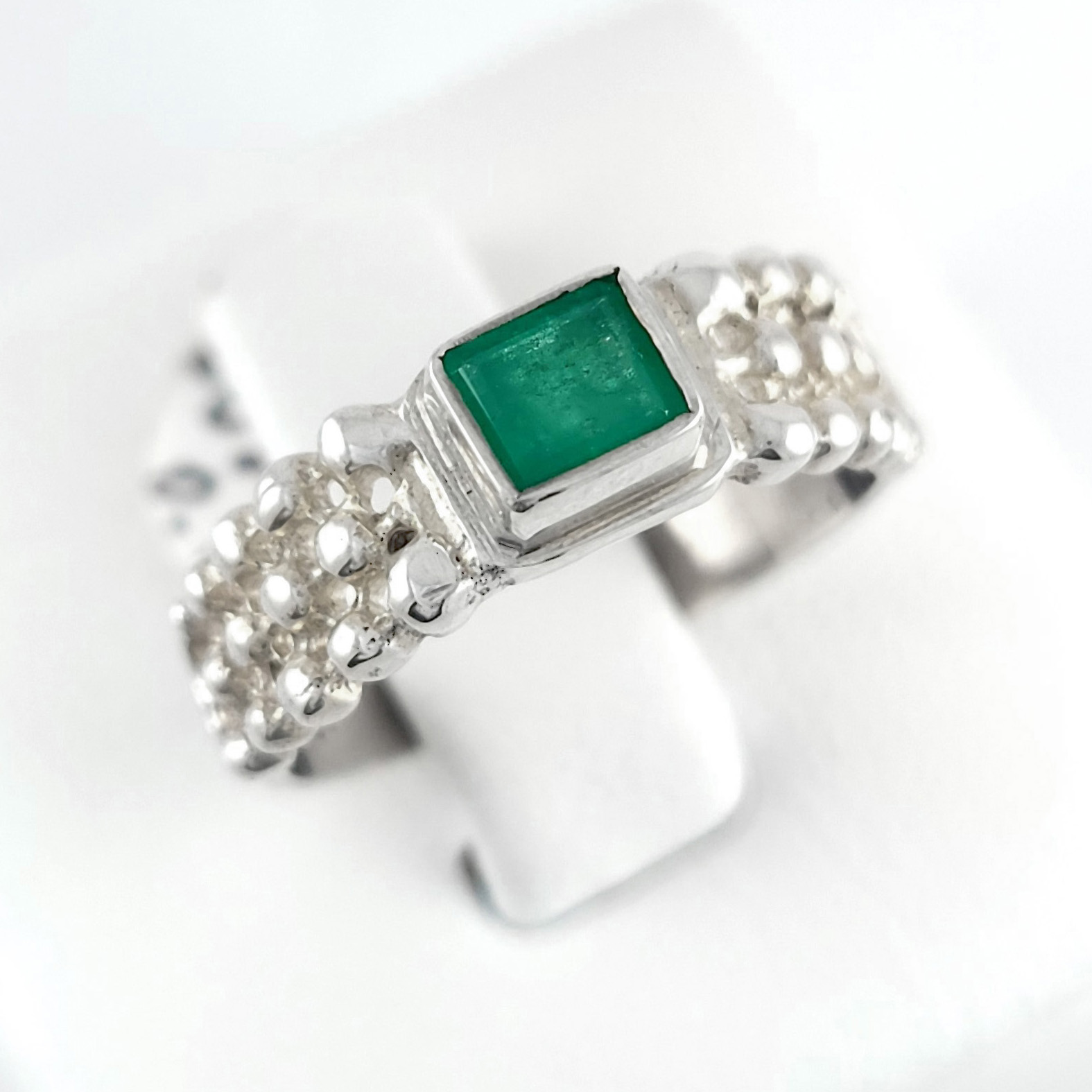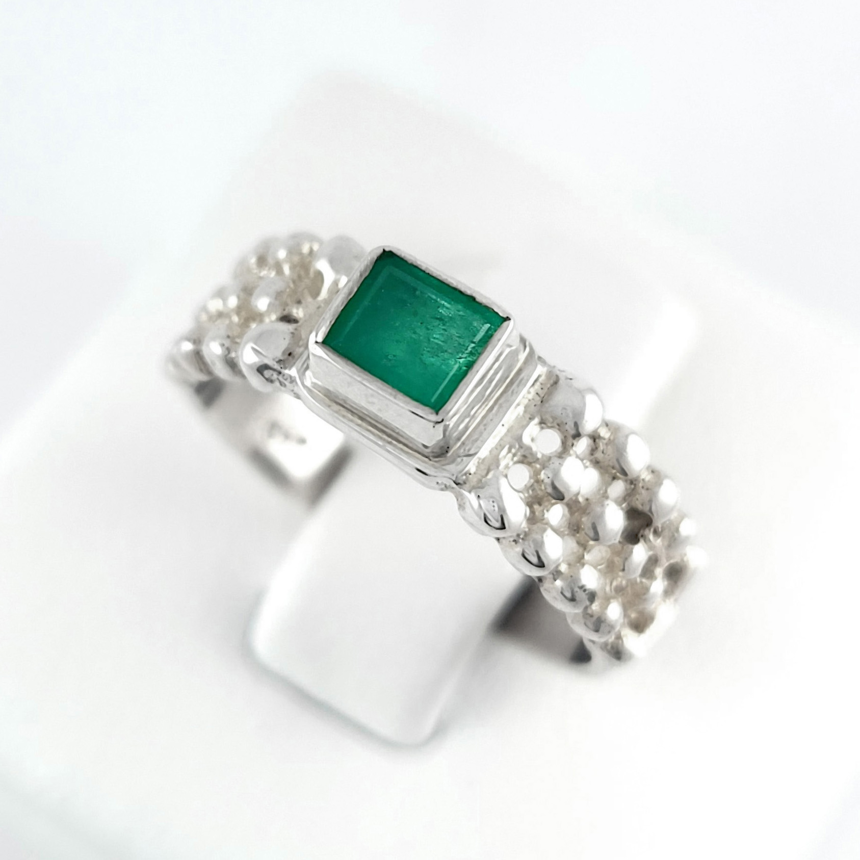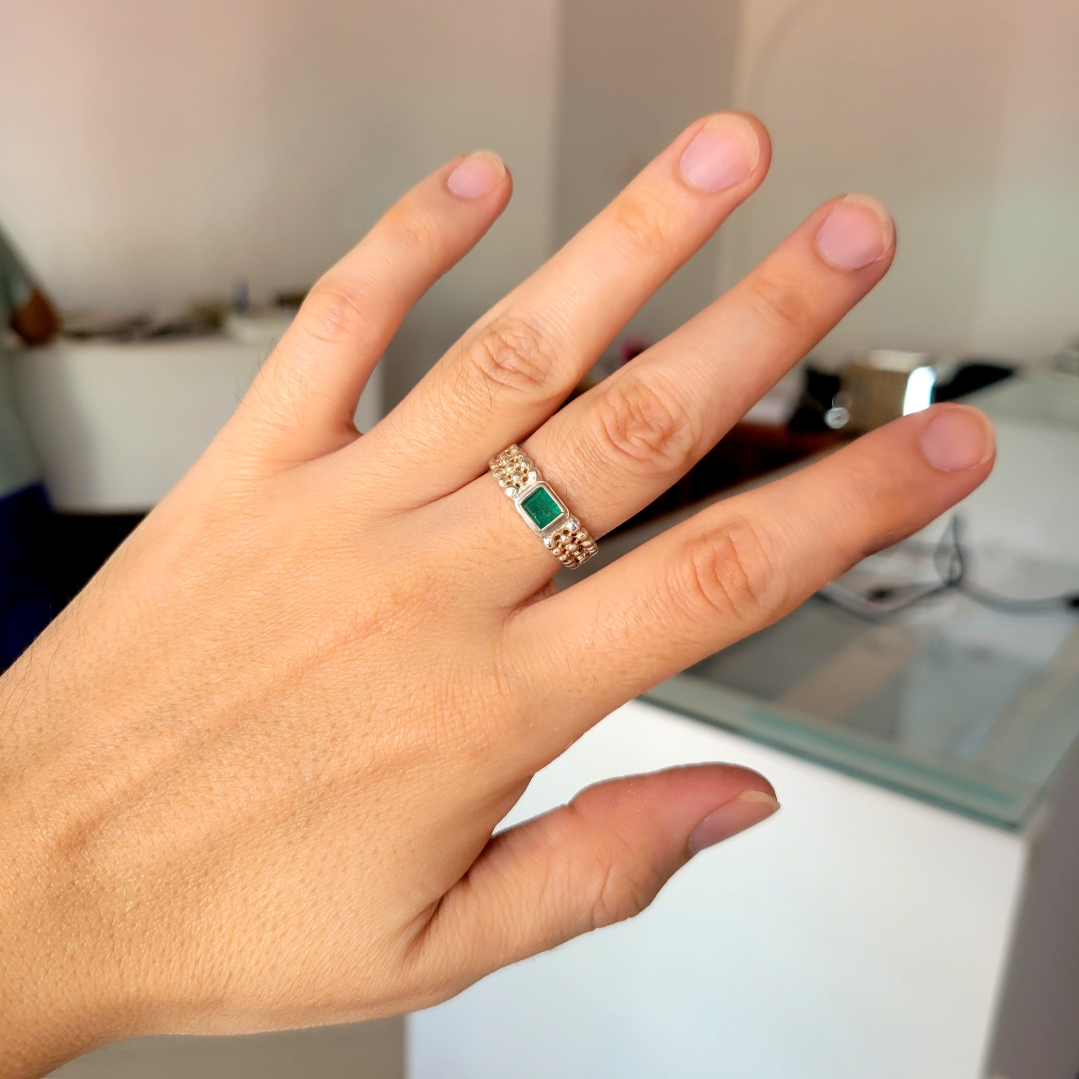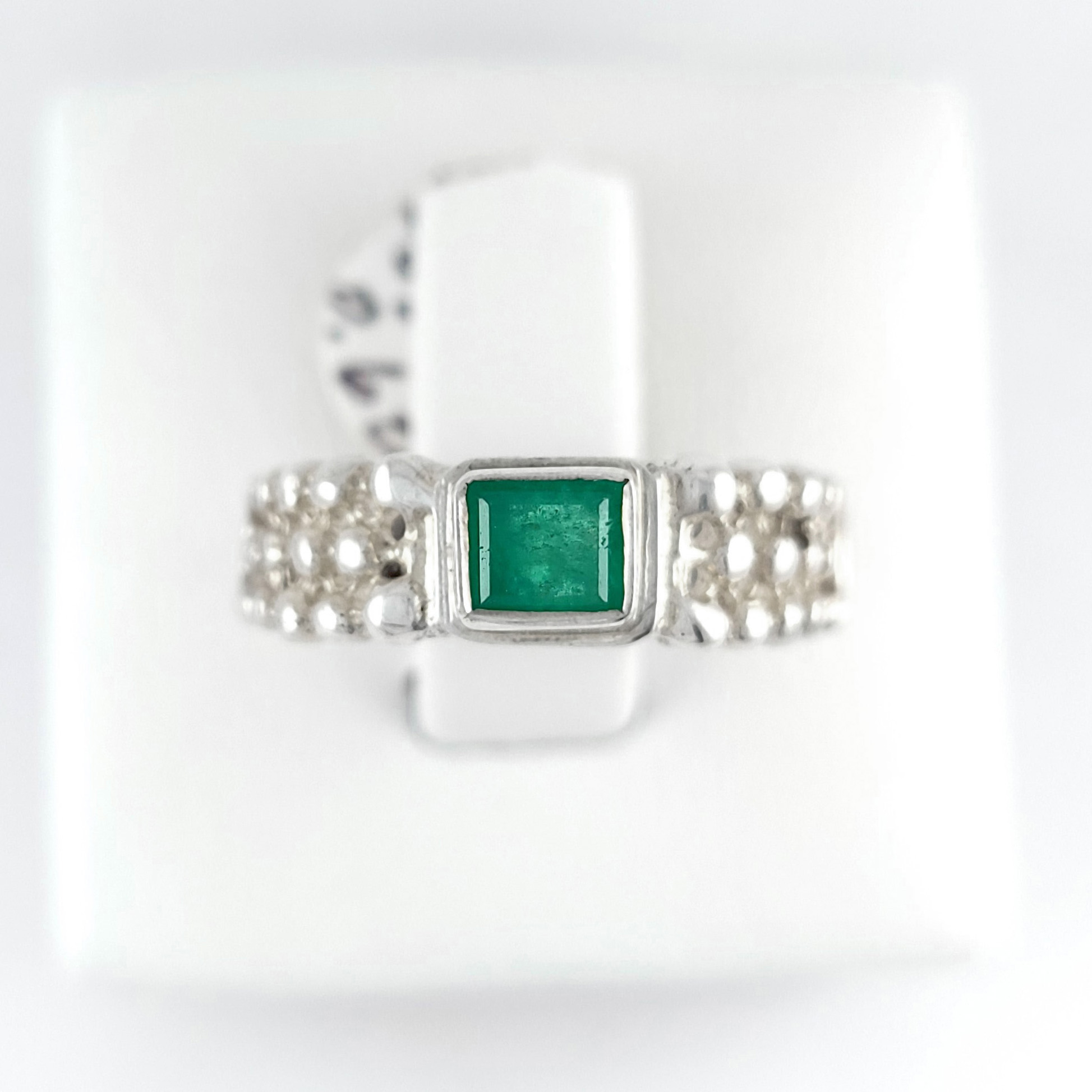 Anillo de plata sólida con esmeralda natural Colombiana. Peso total de la(s) esmeralda(s) 0.60kt