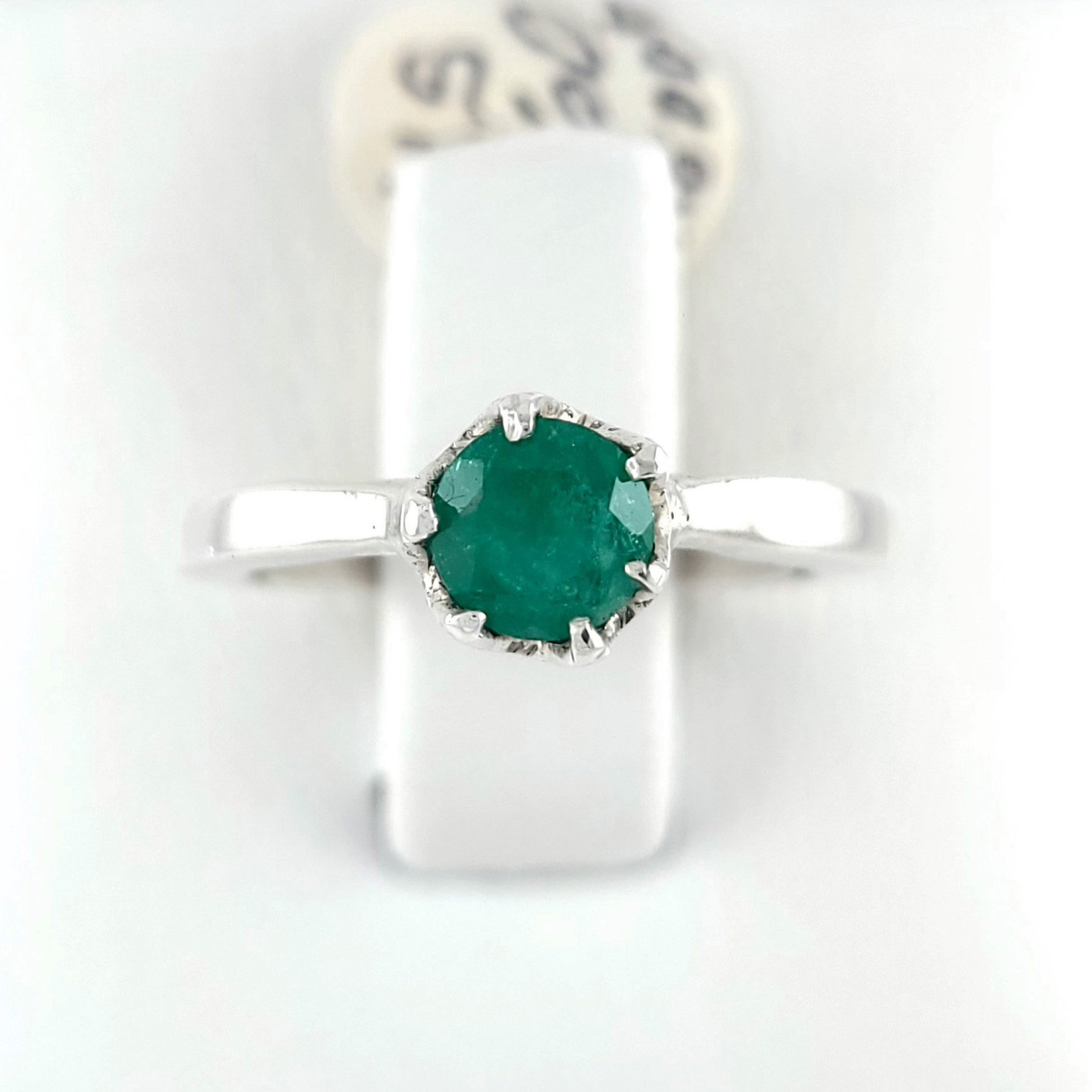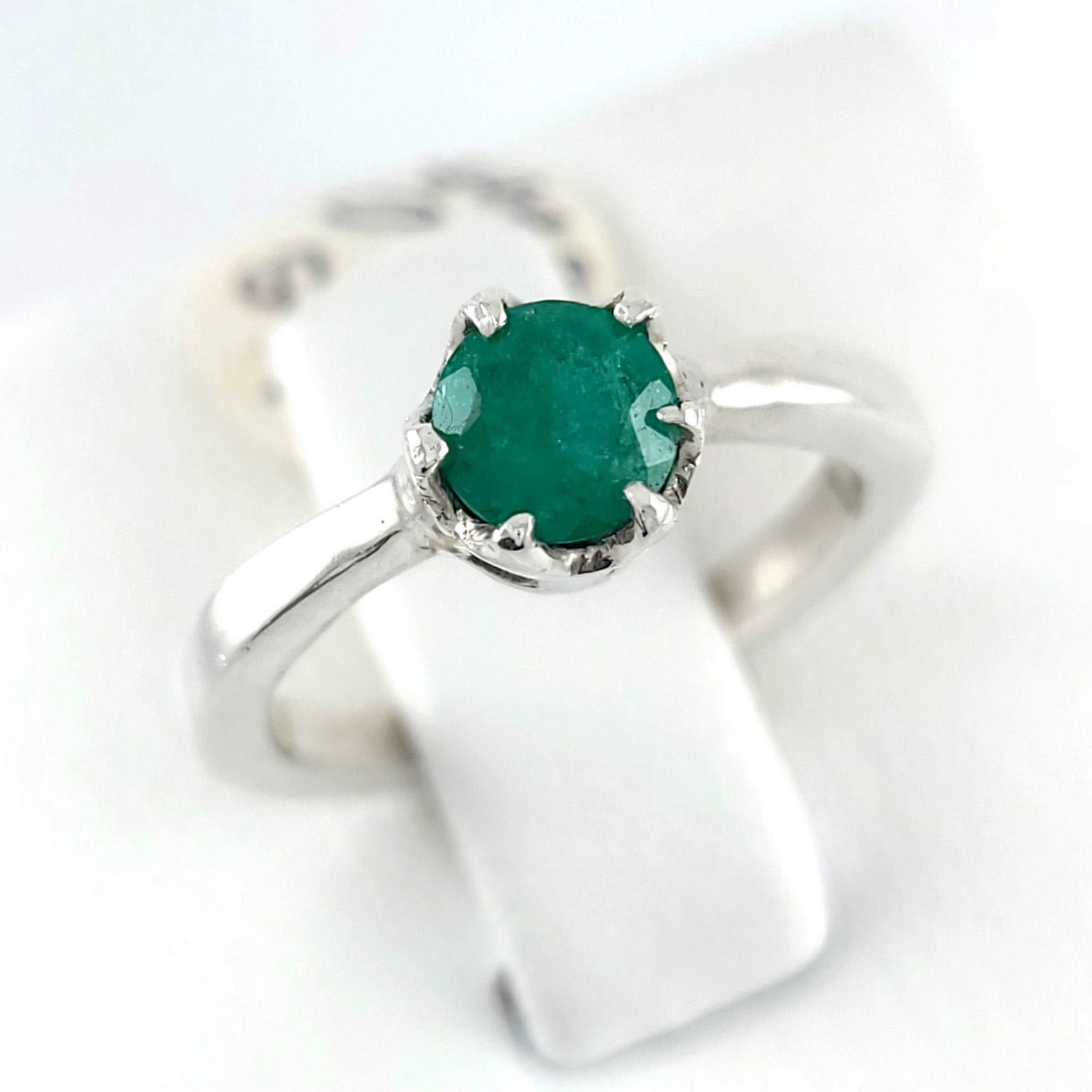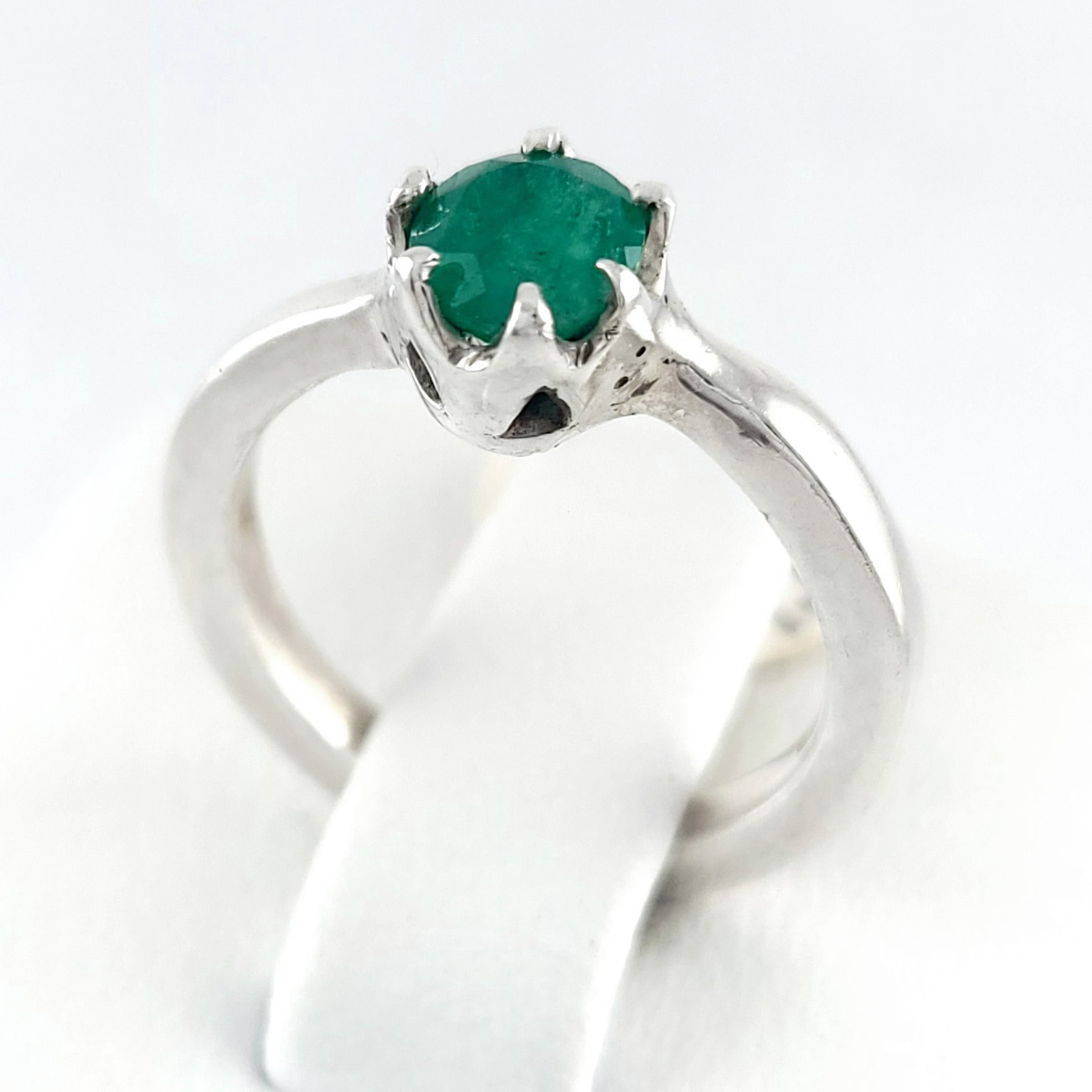 Anillo de plata sólida con esmeralda natural Colombiana. Peso total de la(s) esmeralda(s) 0.63kt