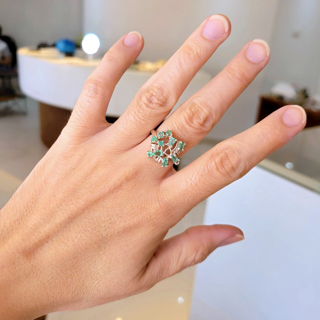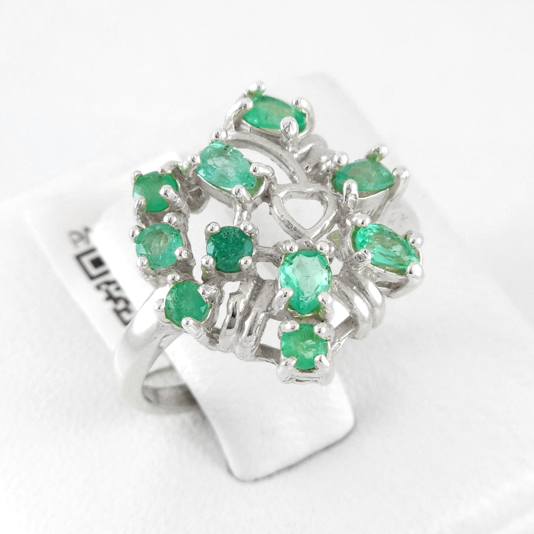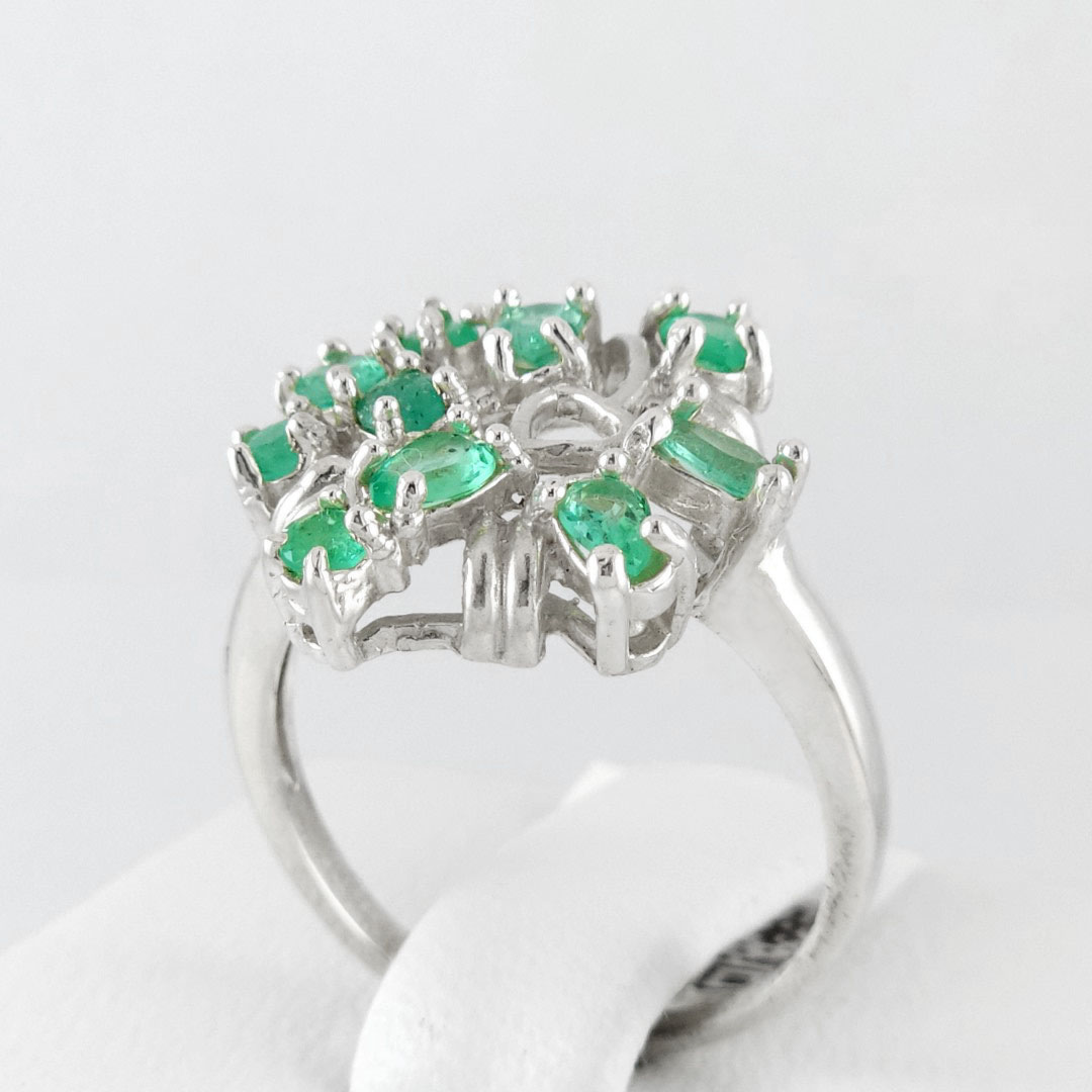 Anillo de plata sólida con esmeralda natural Colombiana. Peso total de la(s) esmeralda(s) 3kt