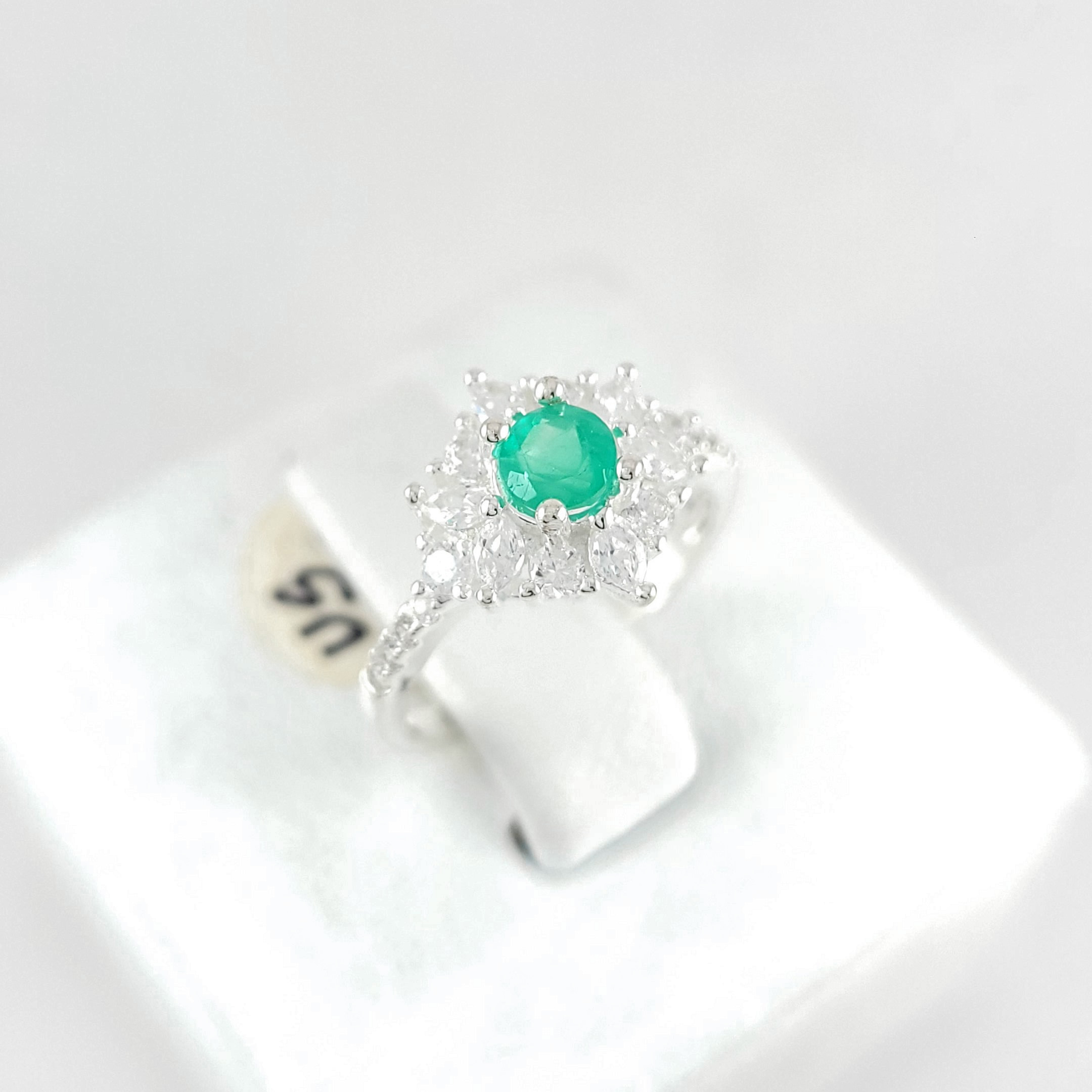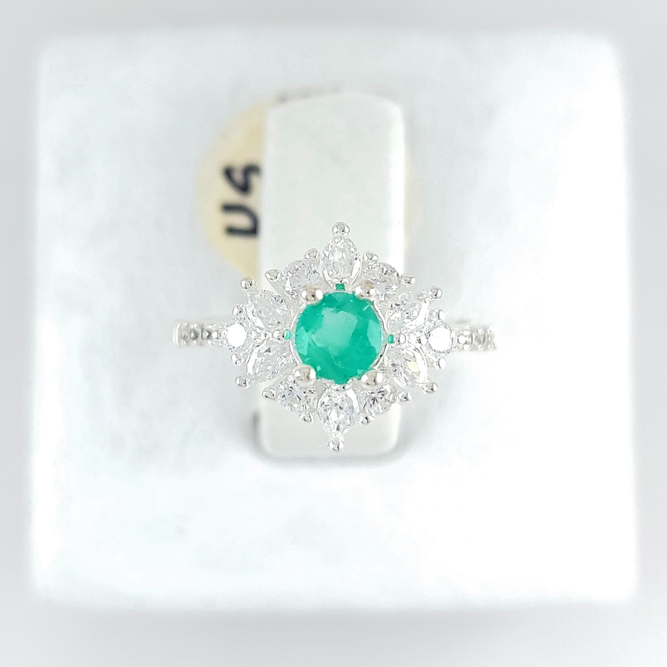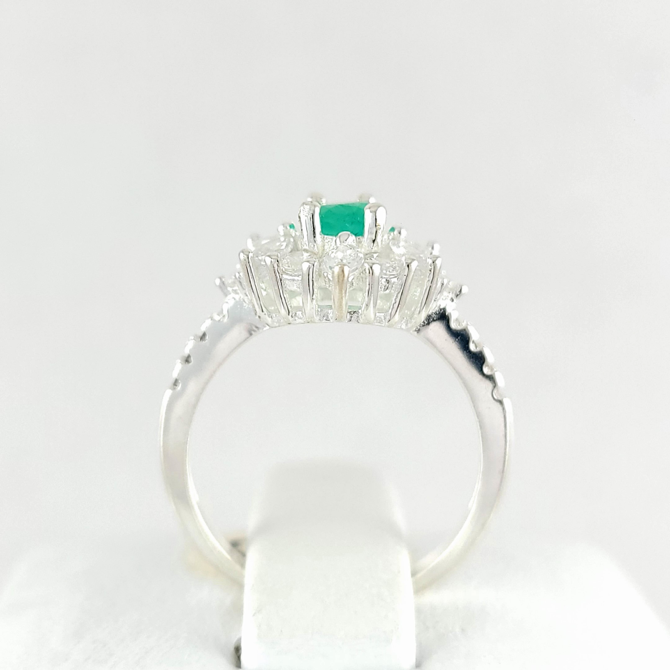 Anillo de plata sólida con esmeralda natural Colombiana y circones. Peso total de la(s) esmeralda(s) 0.50kt