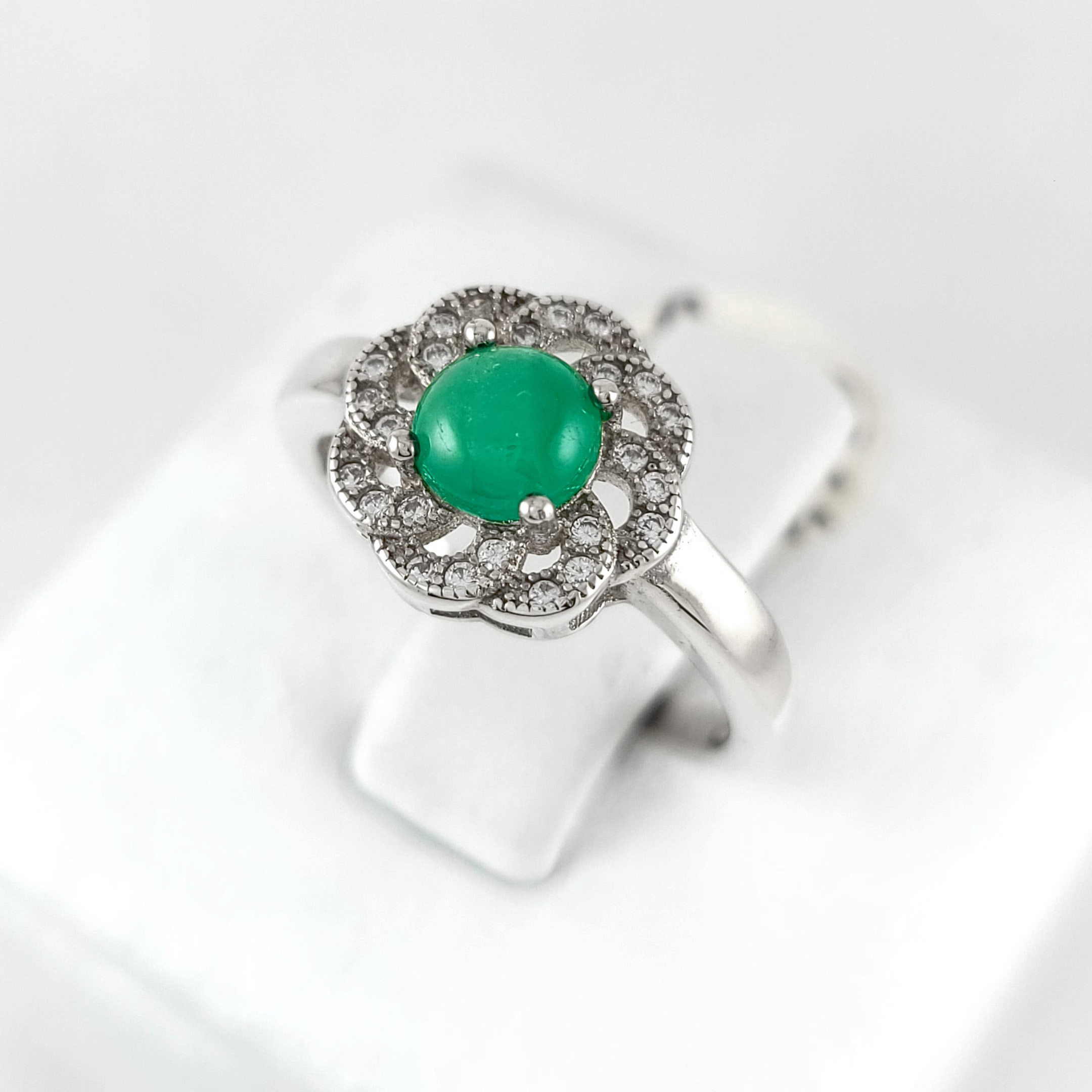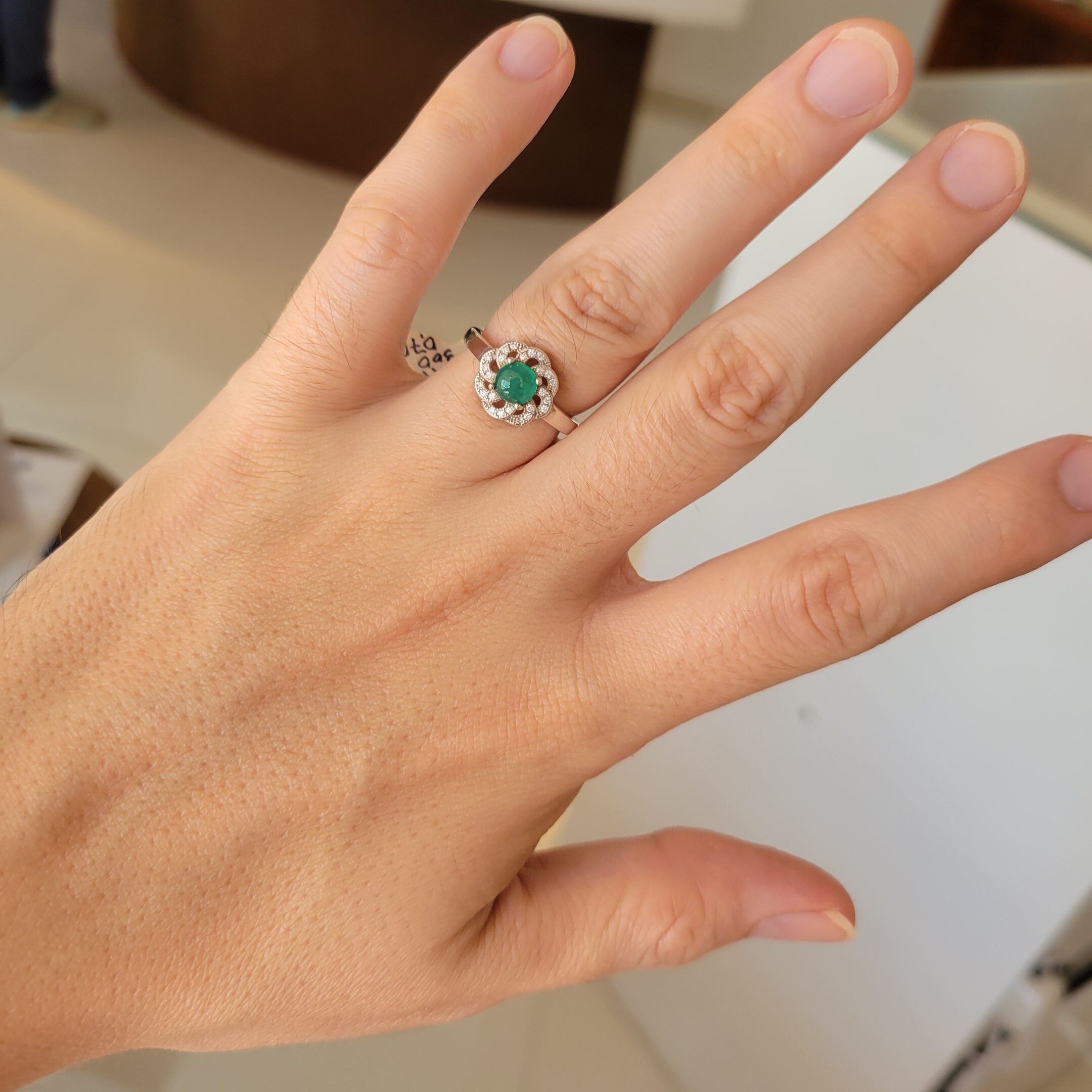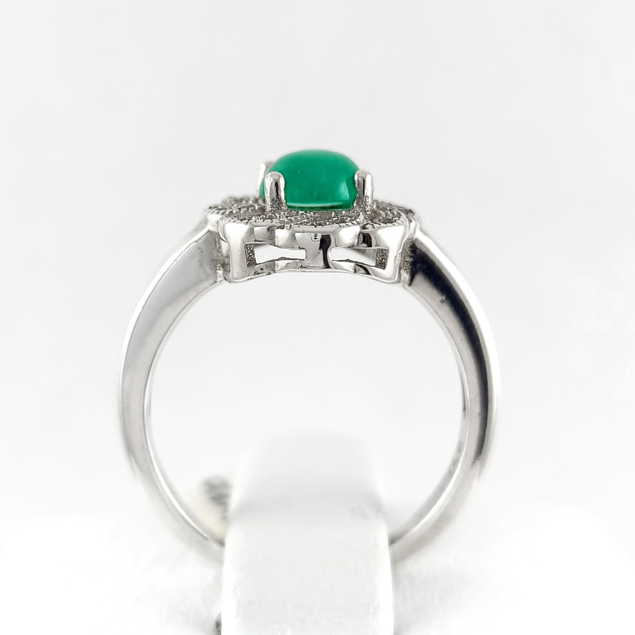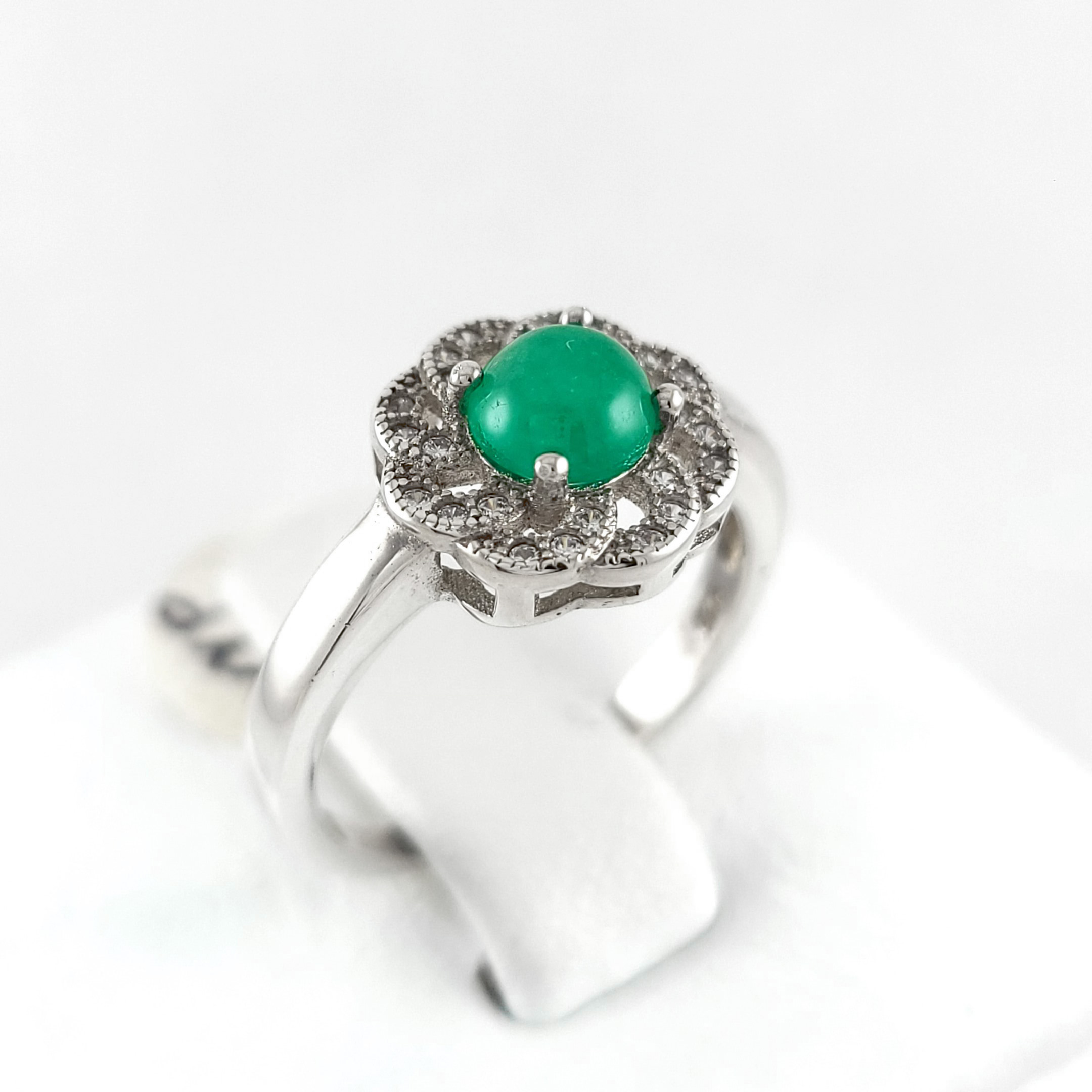 Anillo de plata sólida con esmeralda natural Colombiana y circones. Peso total de la(s) esmeralda(s) 0.70kt