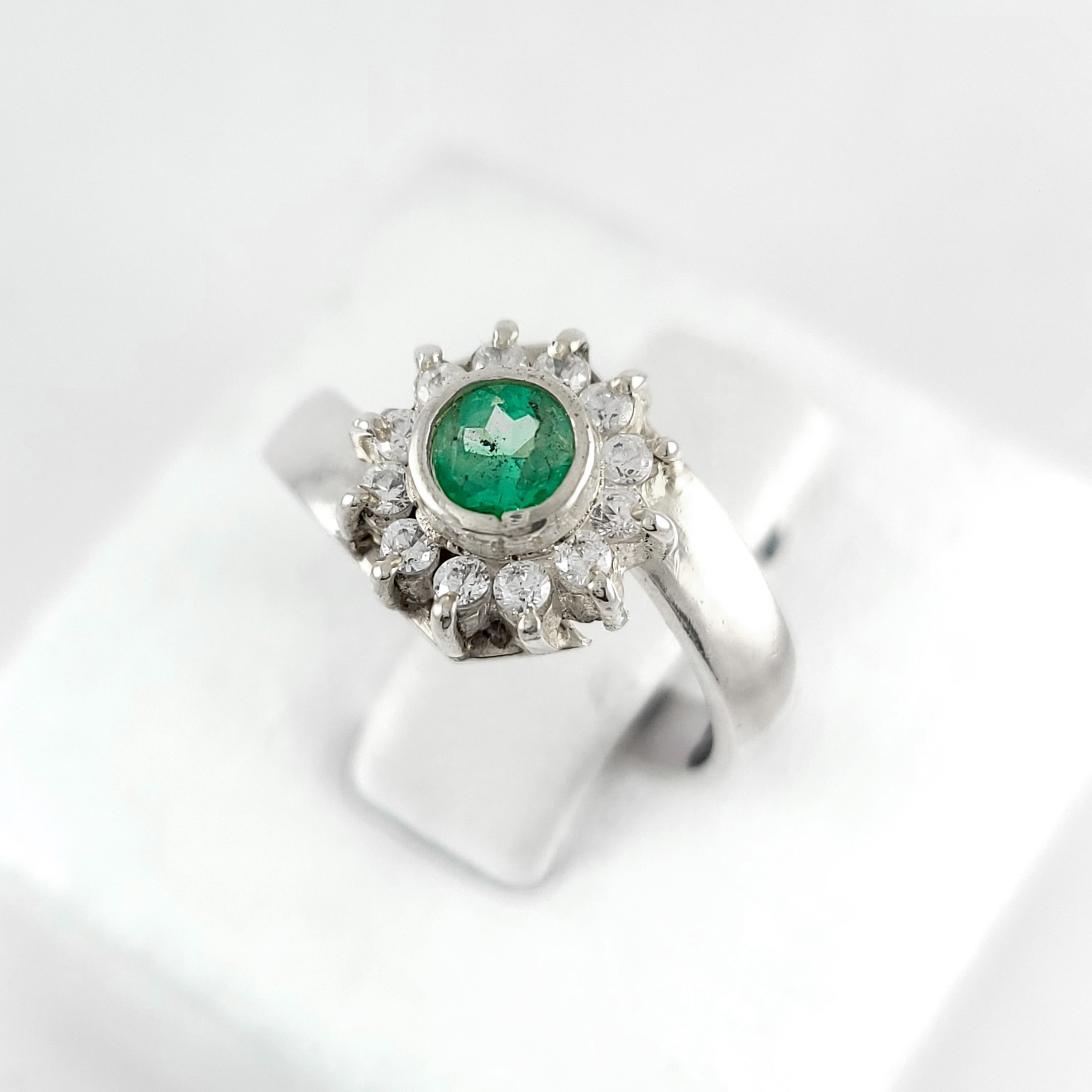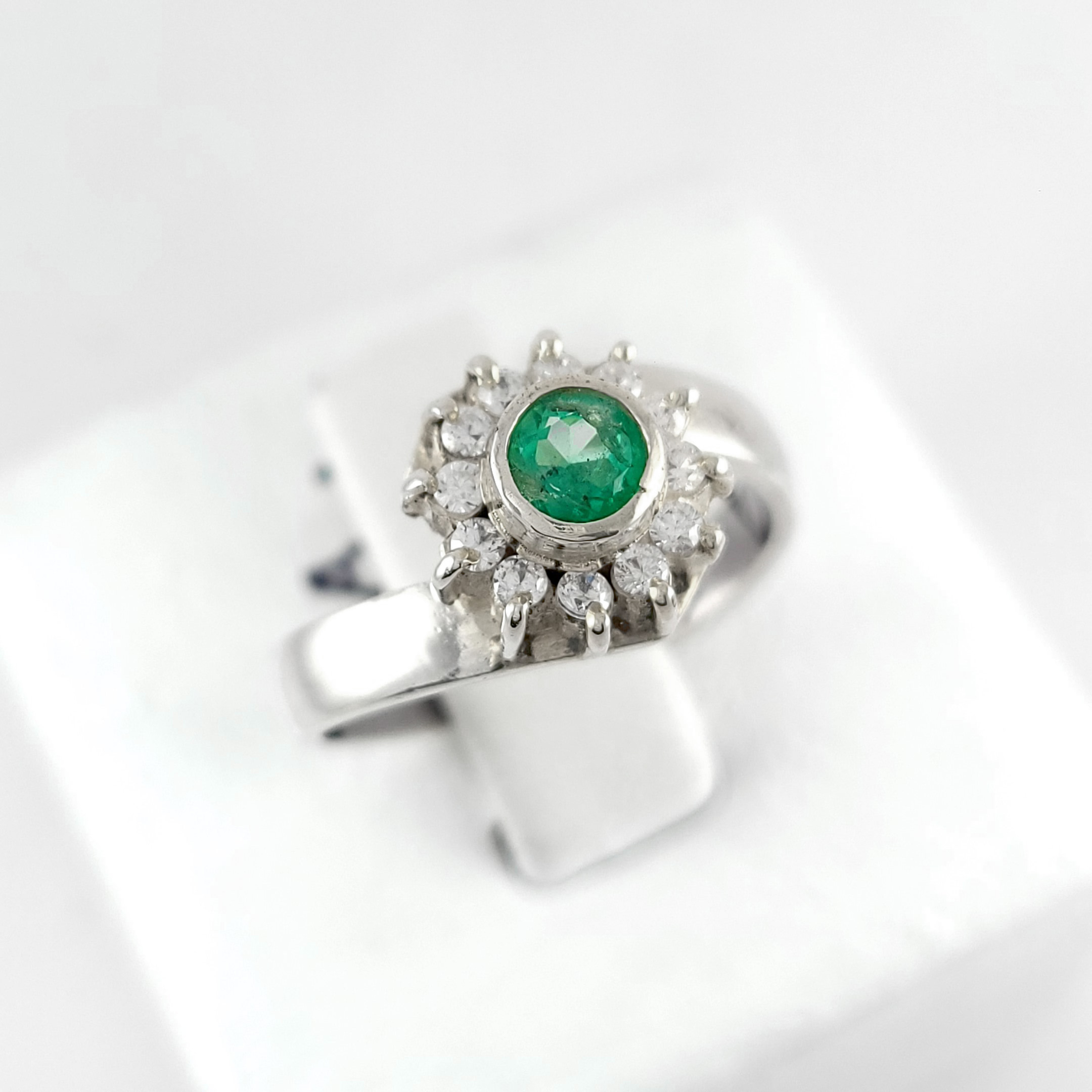 Anillo de plata sólida con esmeralda natural Colombiana y circones. Peso total de la(s) esmeralda(s) 0.36kt