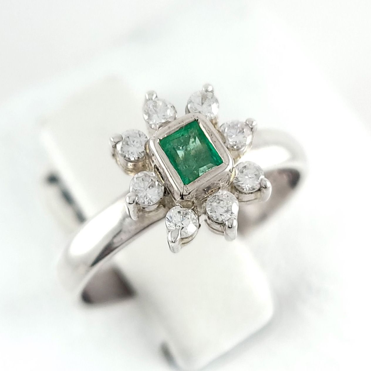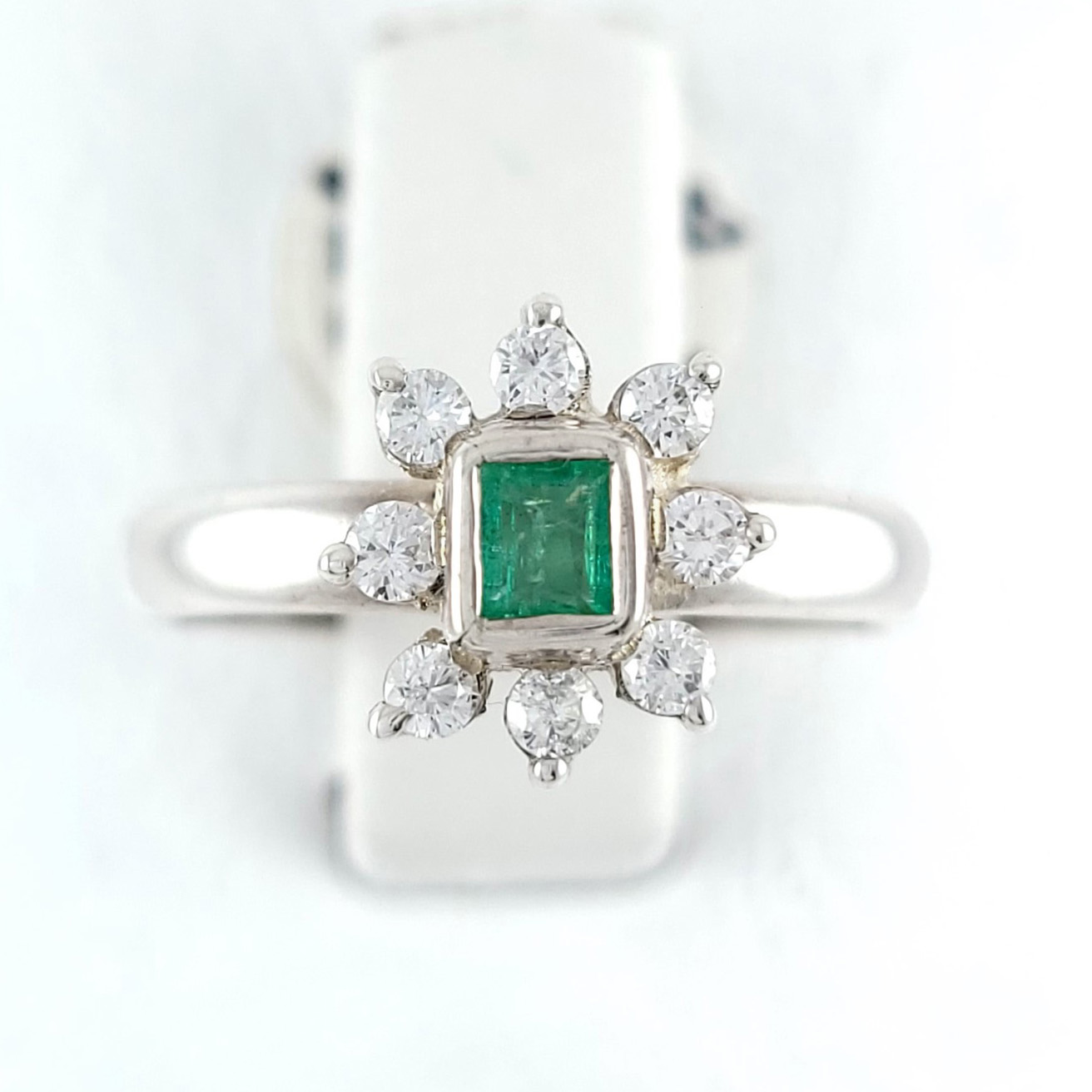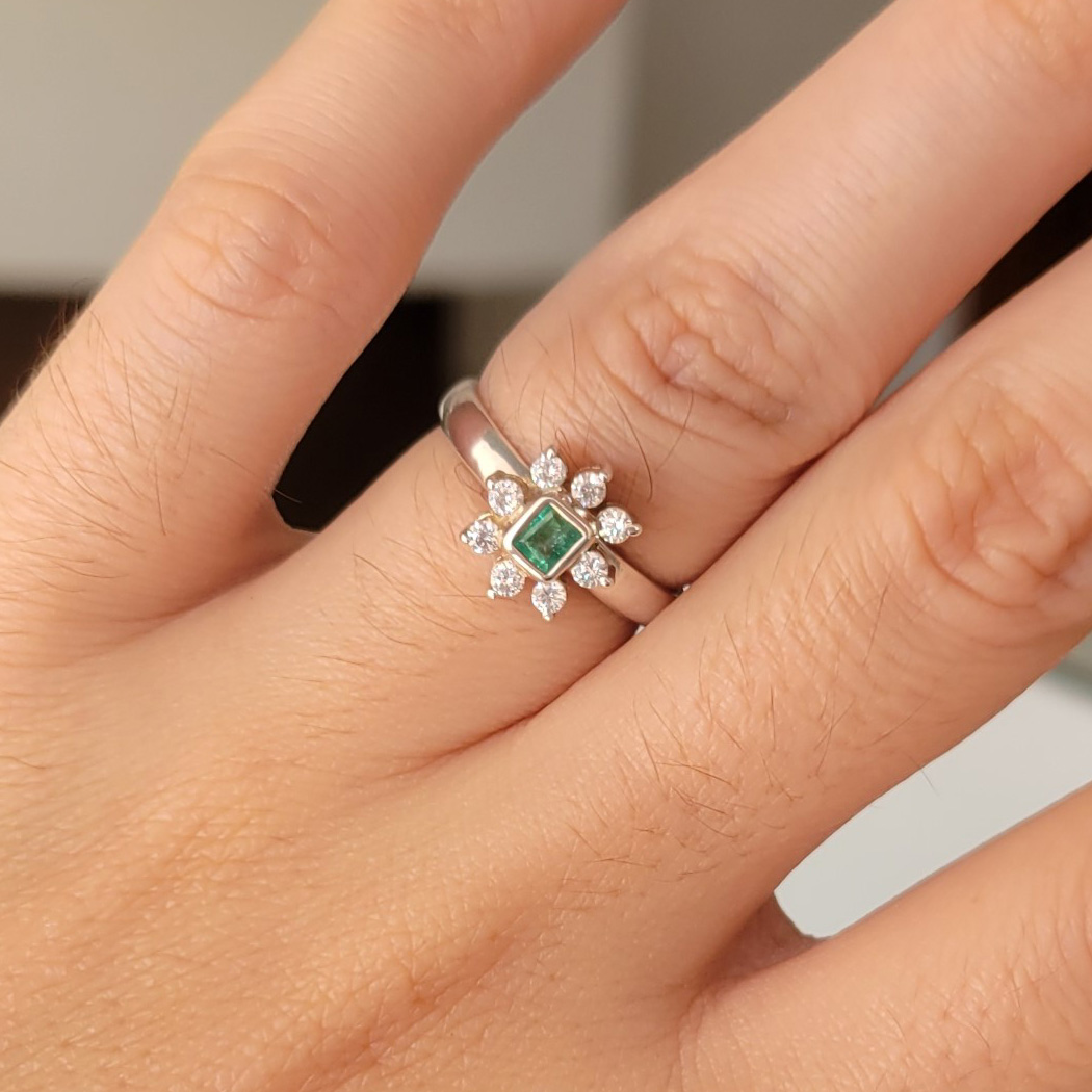 Anillo de plata sólida con esmeralda natural Colombiana y circones. Peso total de la(s) esmeralda(s) 0.28kt