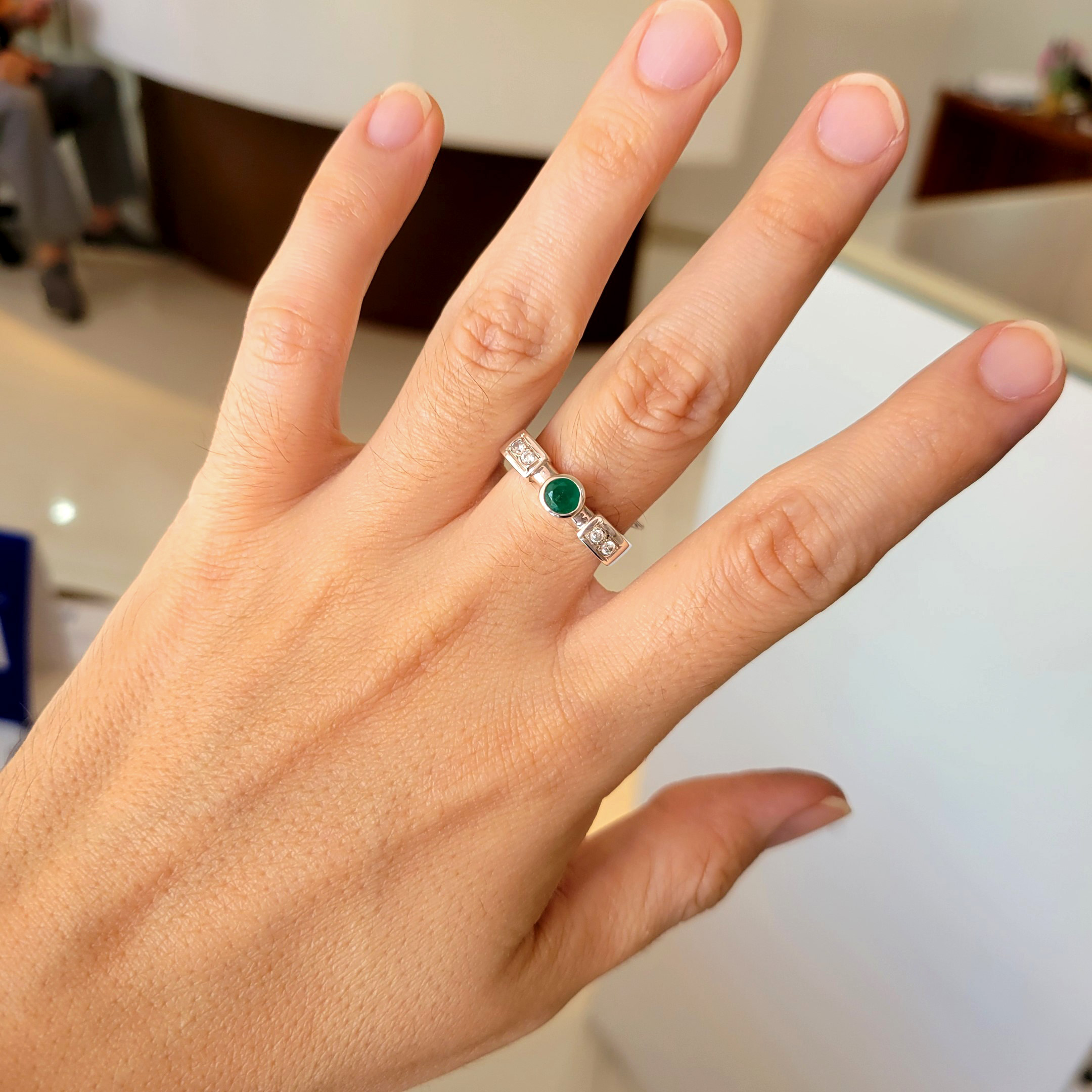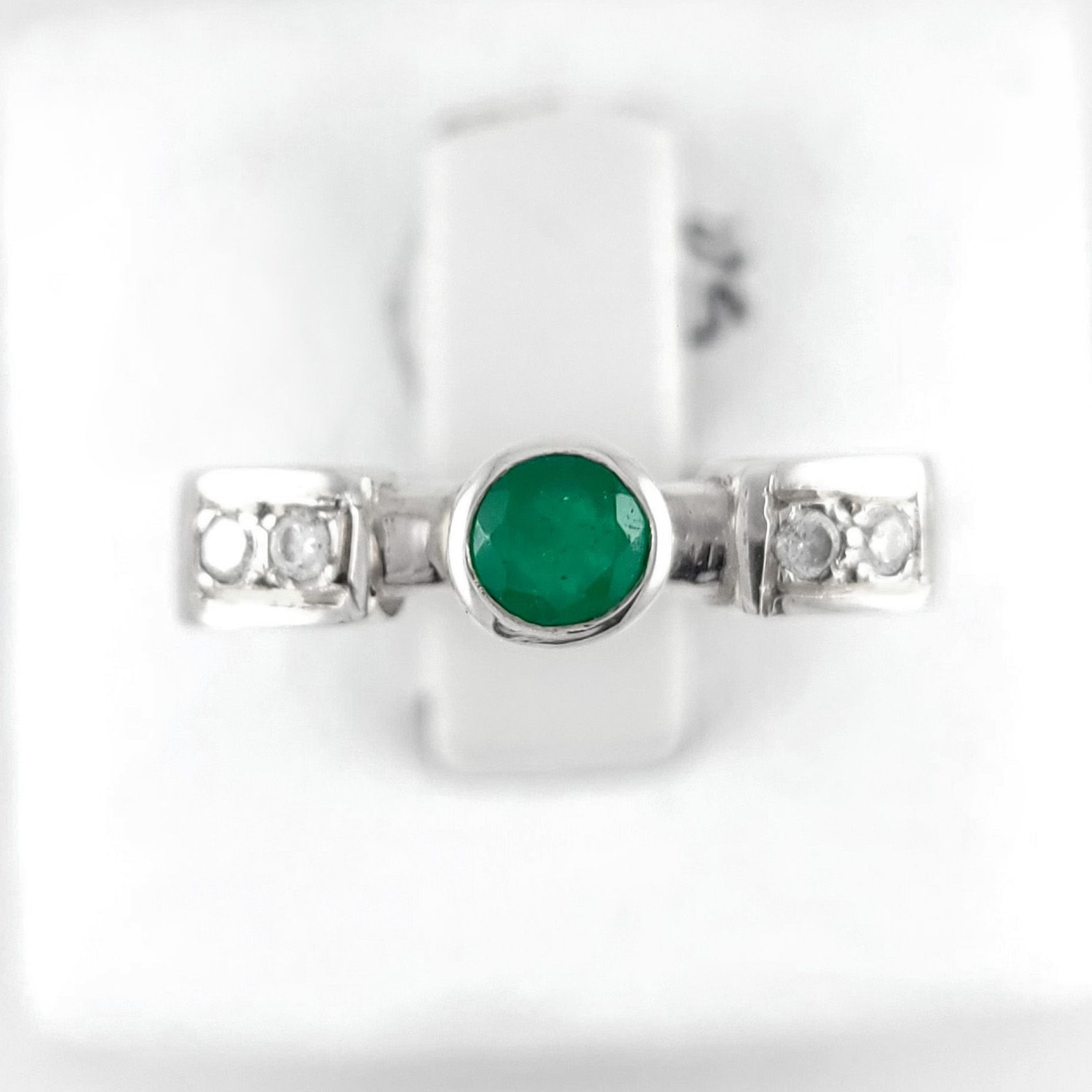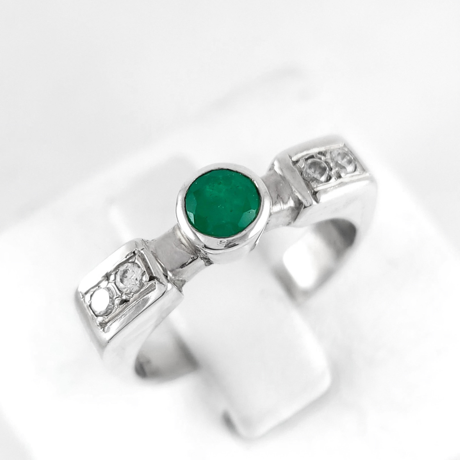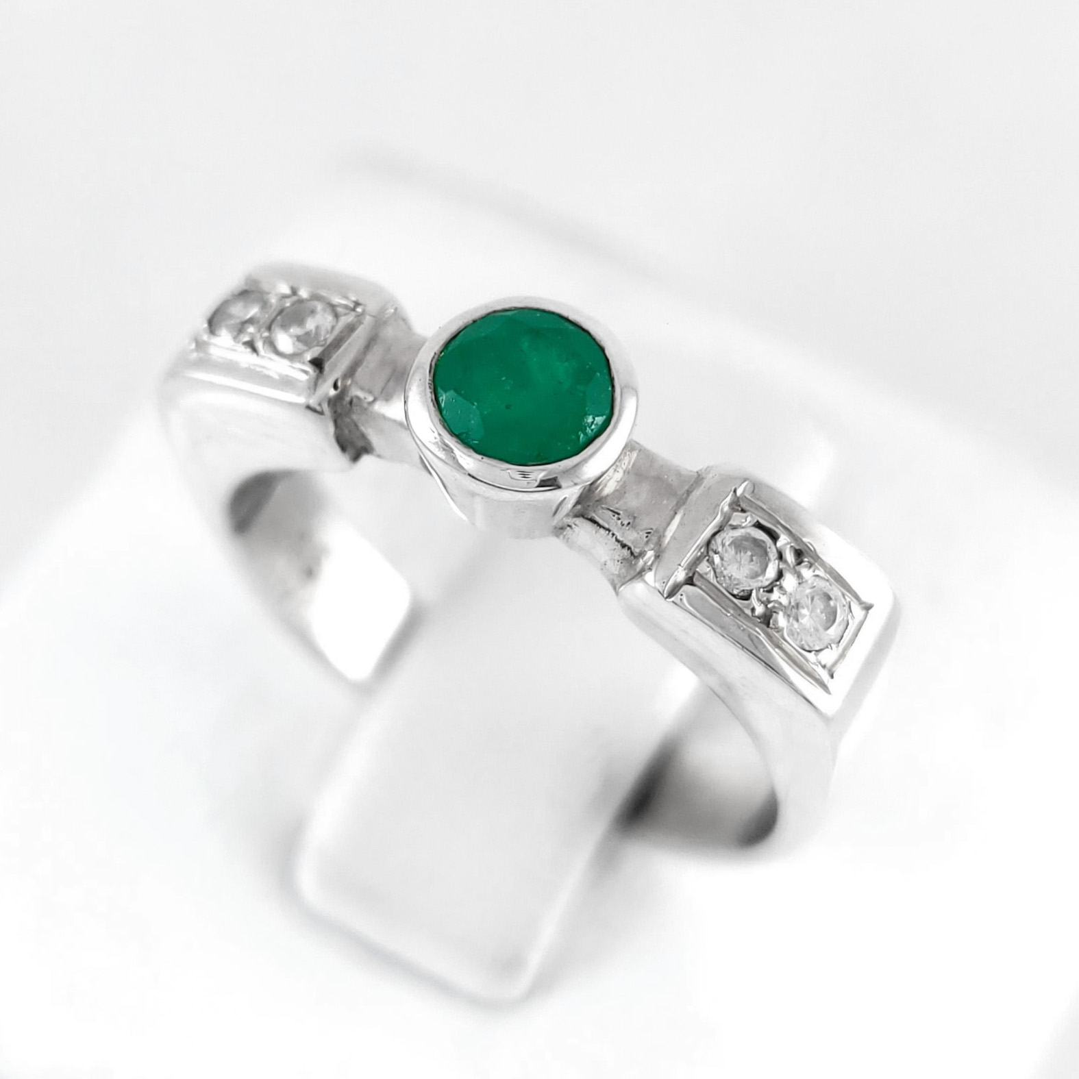 Anillo de plata sólida con esmeralda natural Colombiana y circones. Peso total de la(s) esmeralda(s) 0.30kt