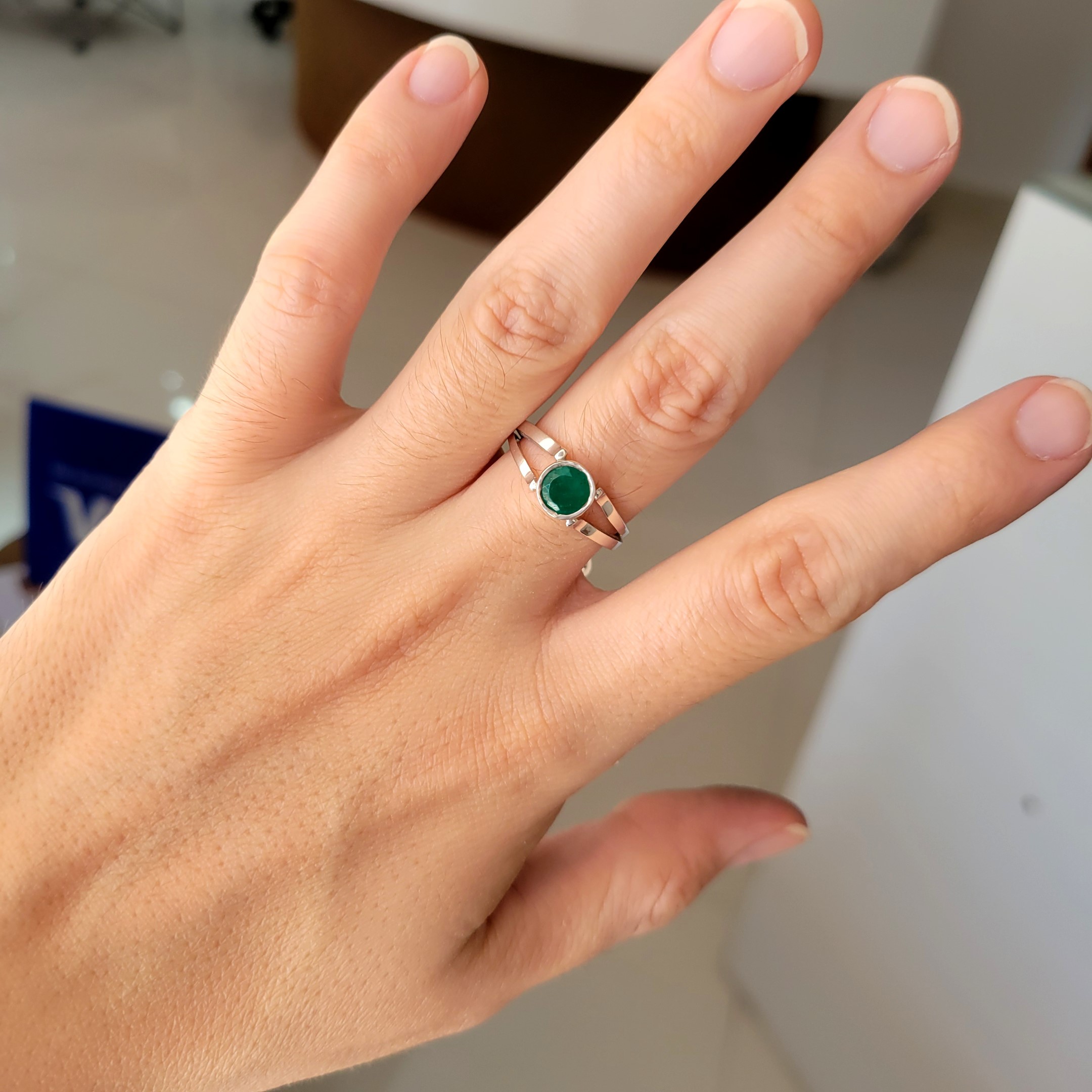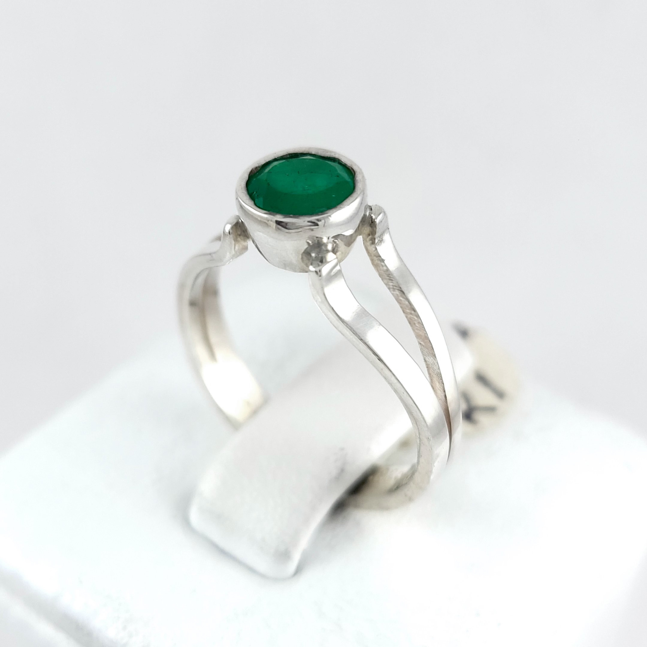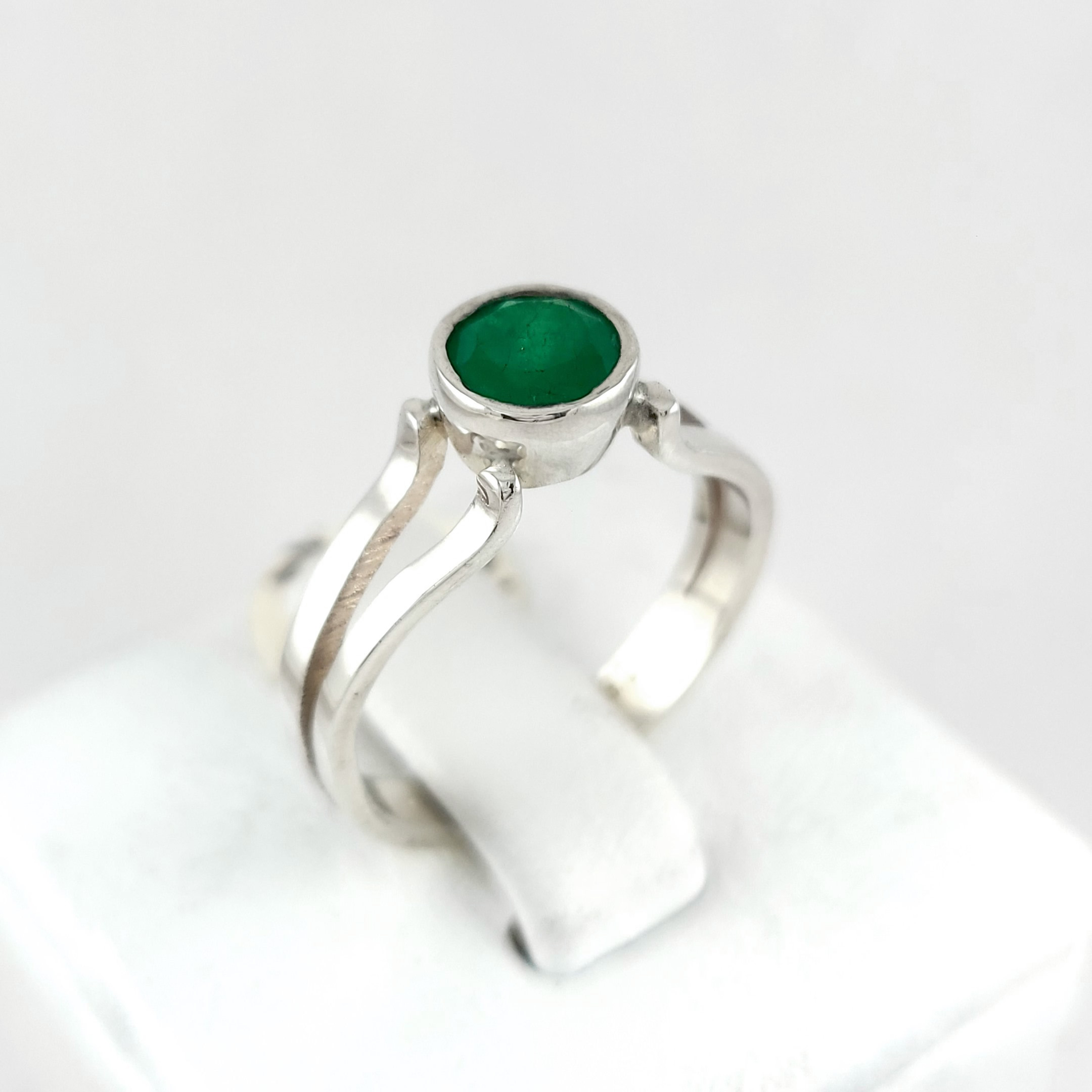 Anillo de plata sólida con esmeralda natural Colombiana. Peso total de la(s) esmeralda(s) 1kt