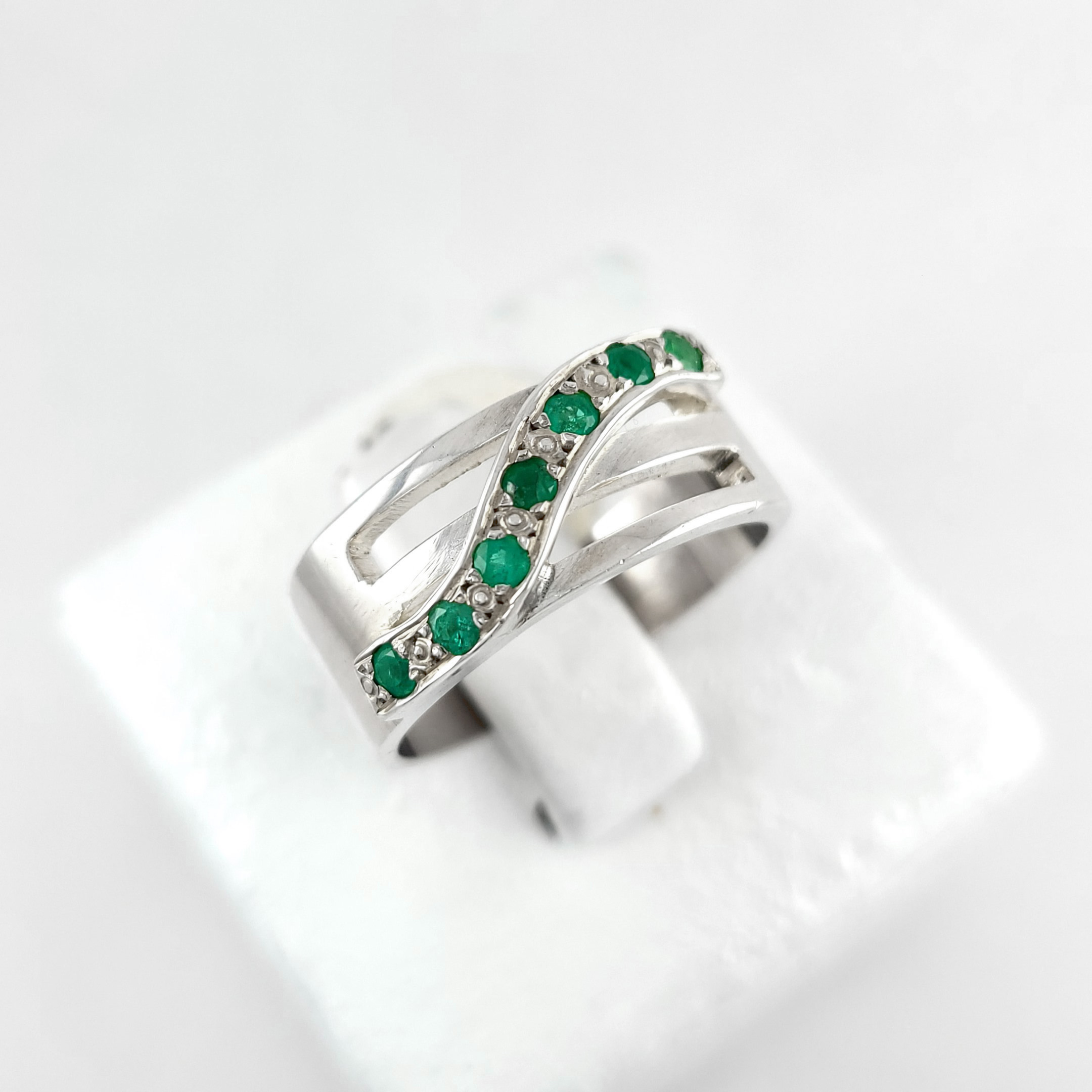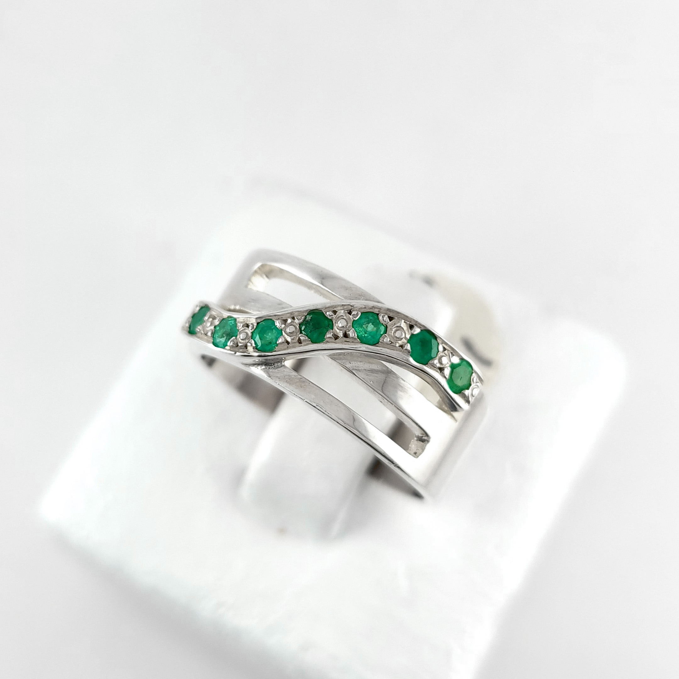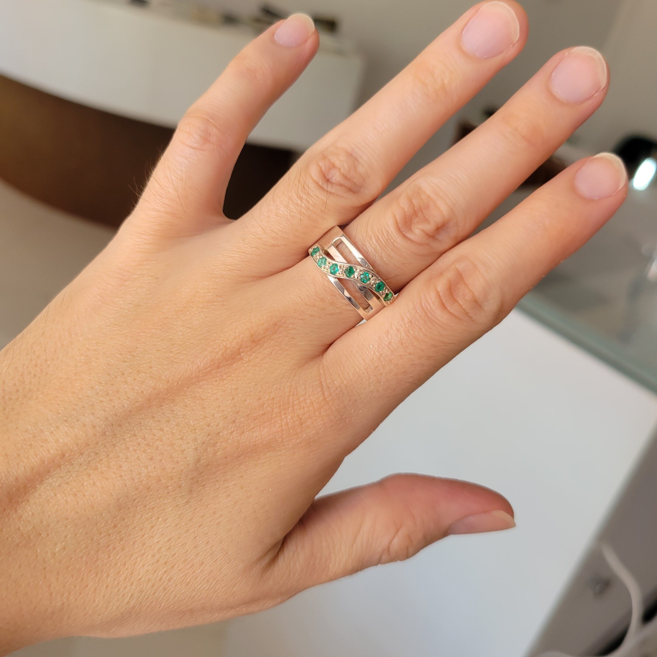 Anillo de plata sólida con esmeralda natural Colombiana. Peso total de la(s) esmeralda(s) 1kt