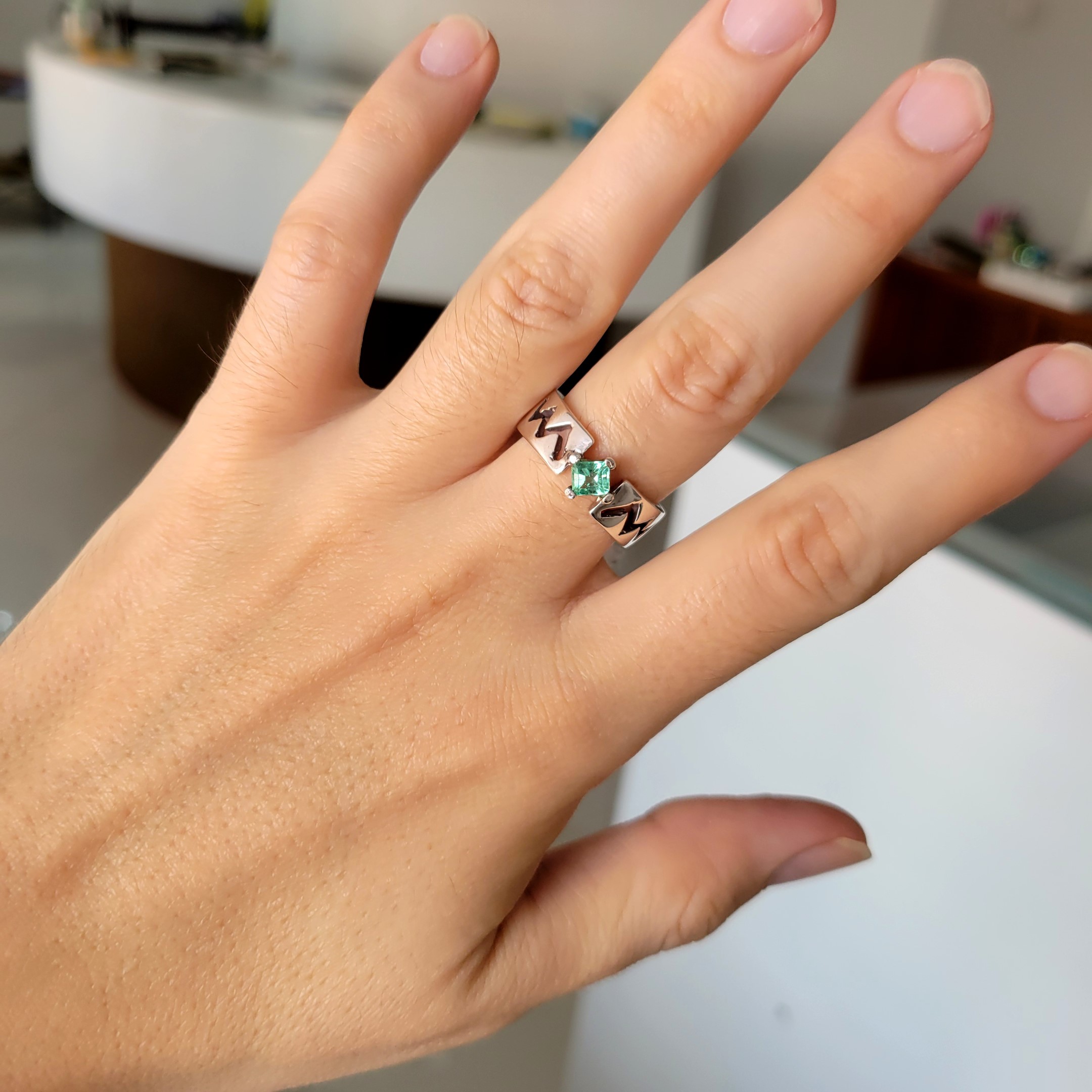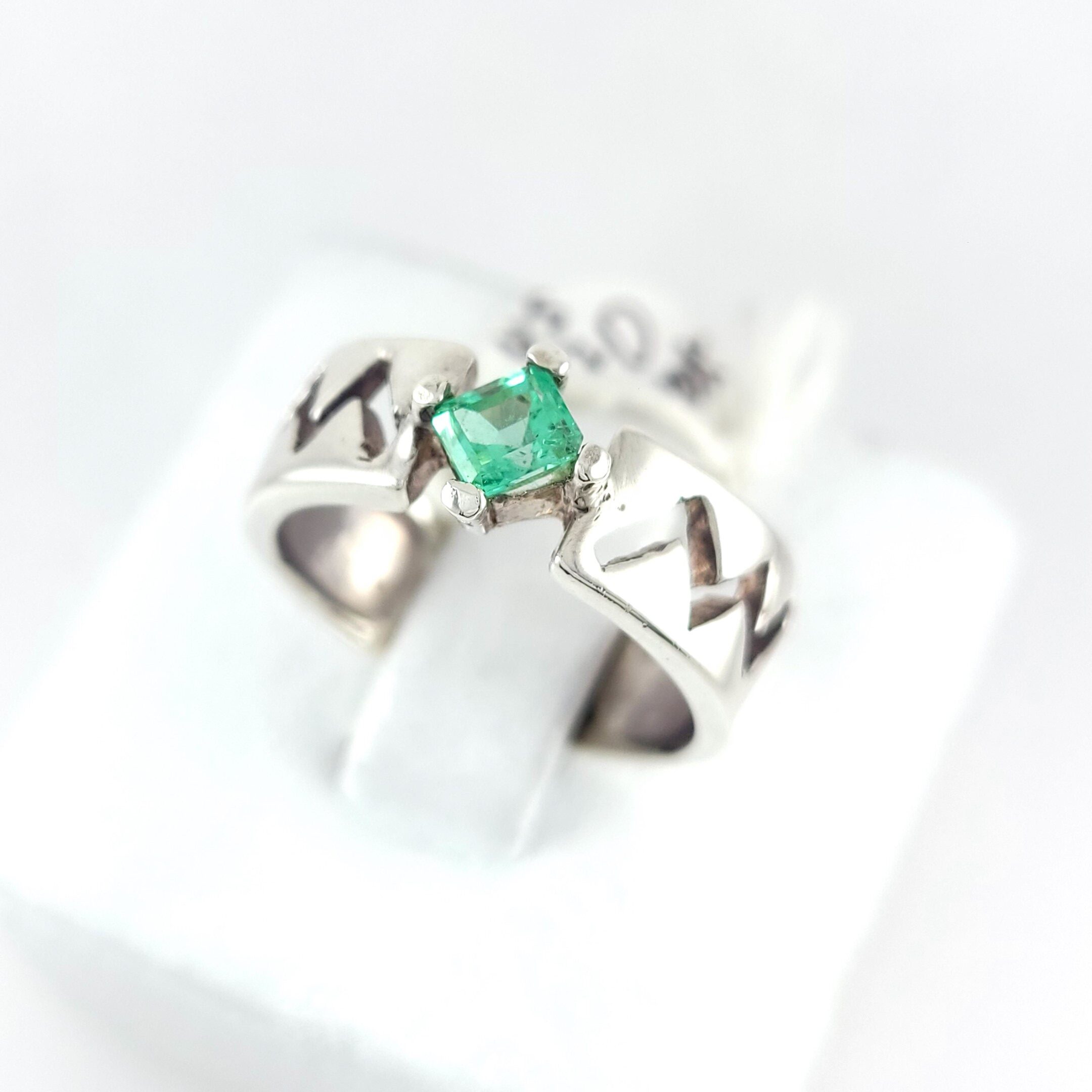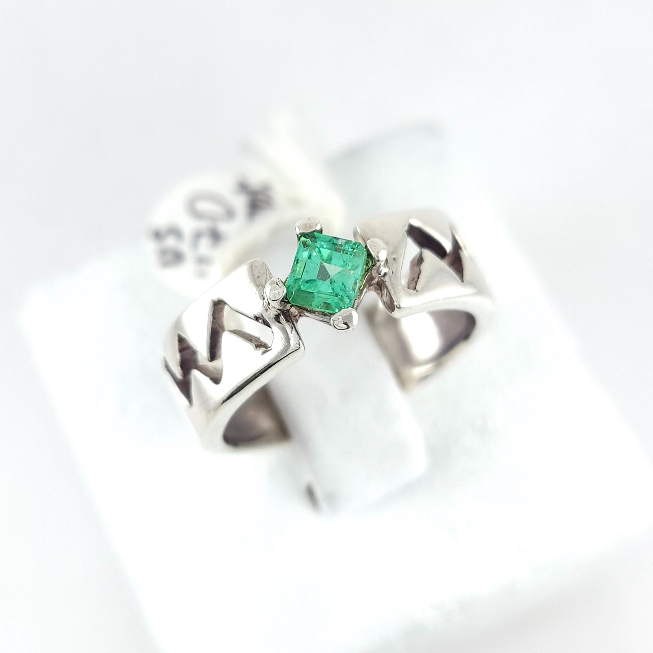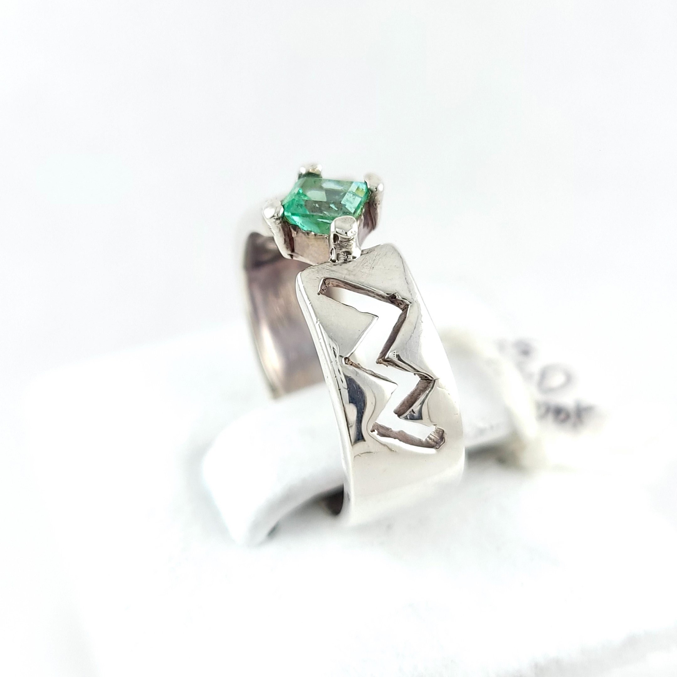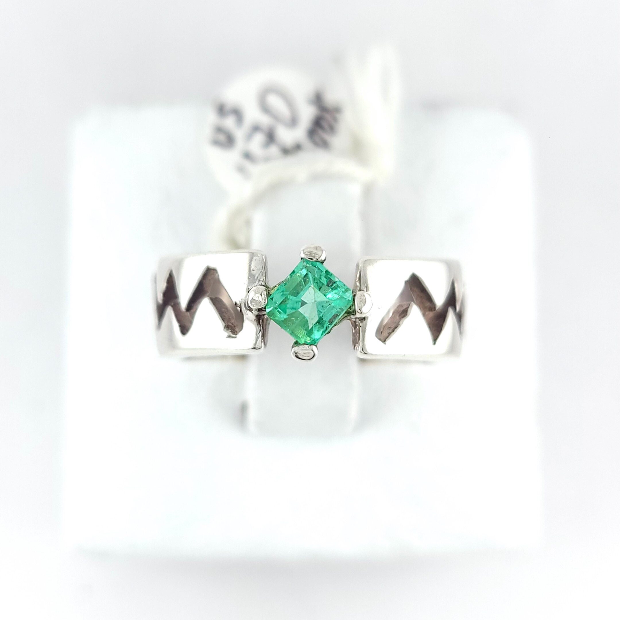 Anillo de plata sólida con esmeralda natural Colombiana. Peso total de la(s) esmeralda(s) 0.50kt