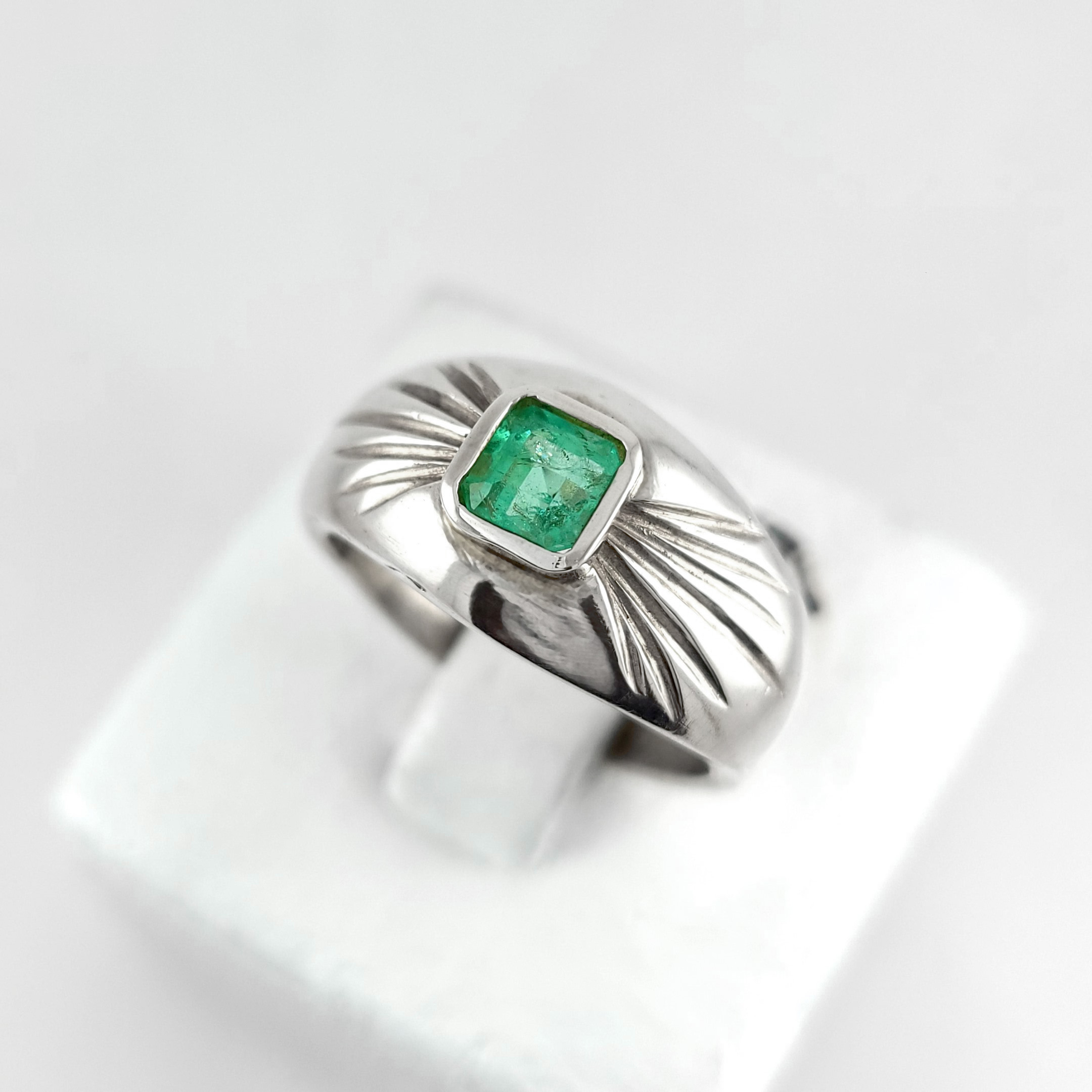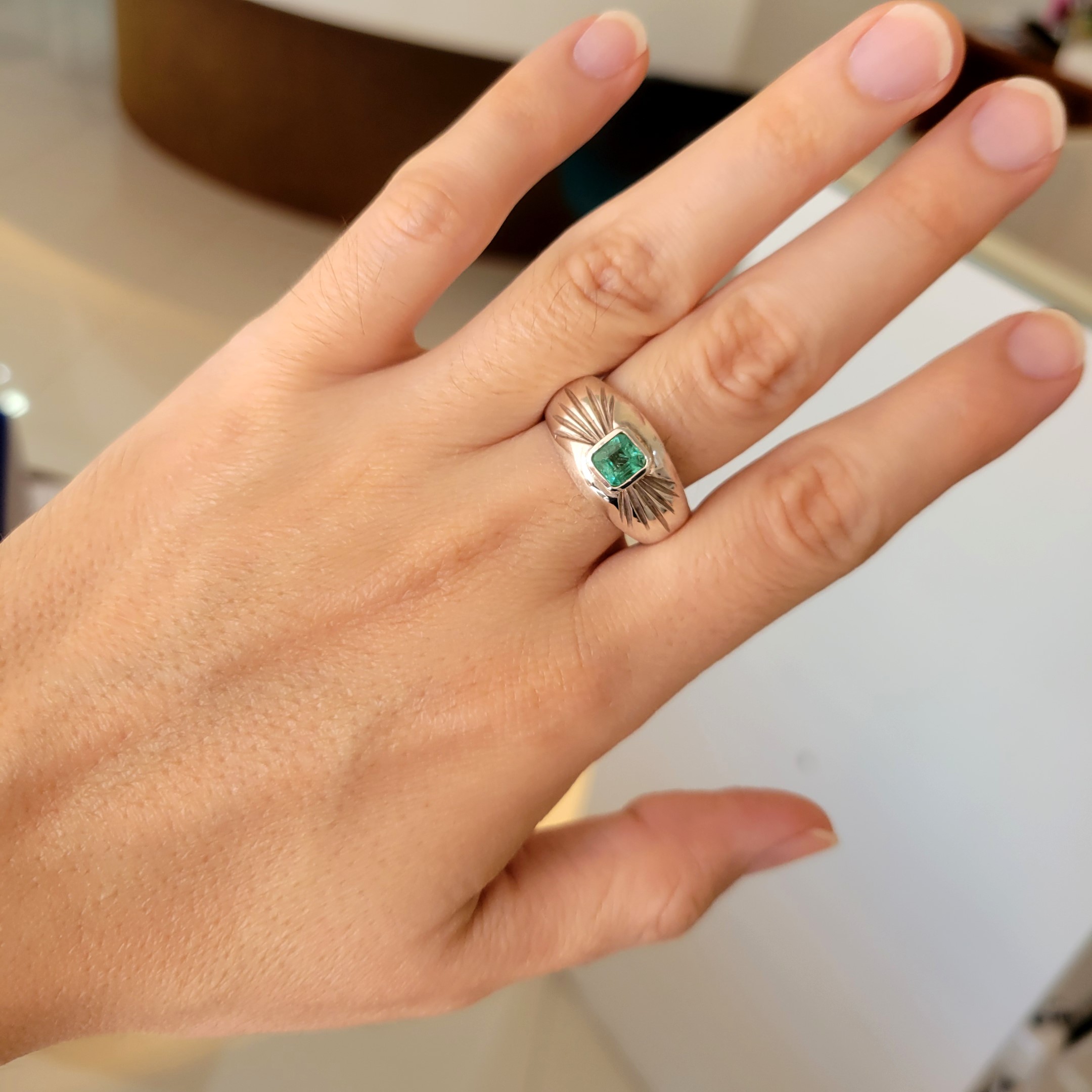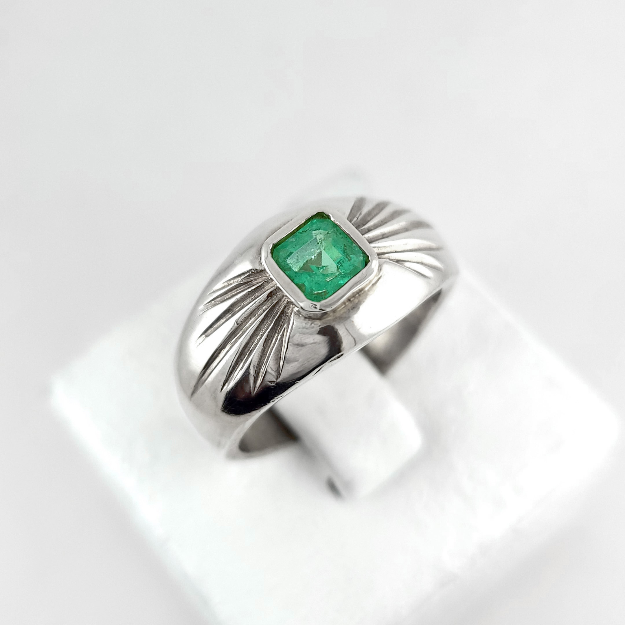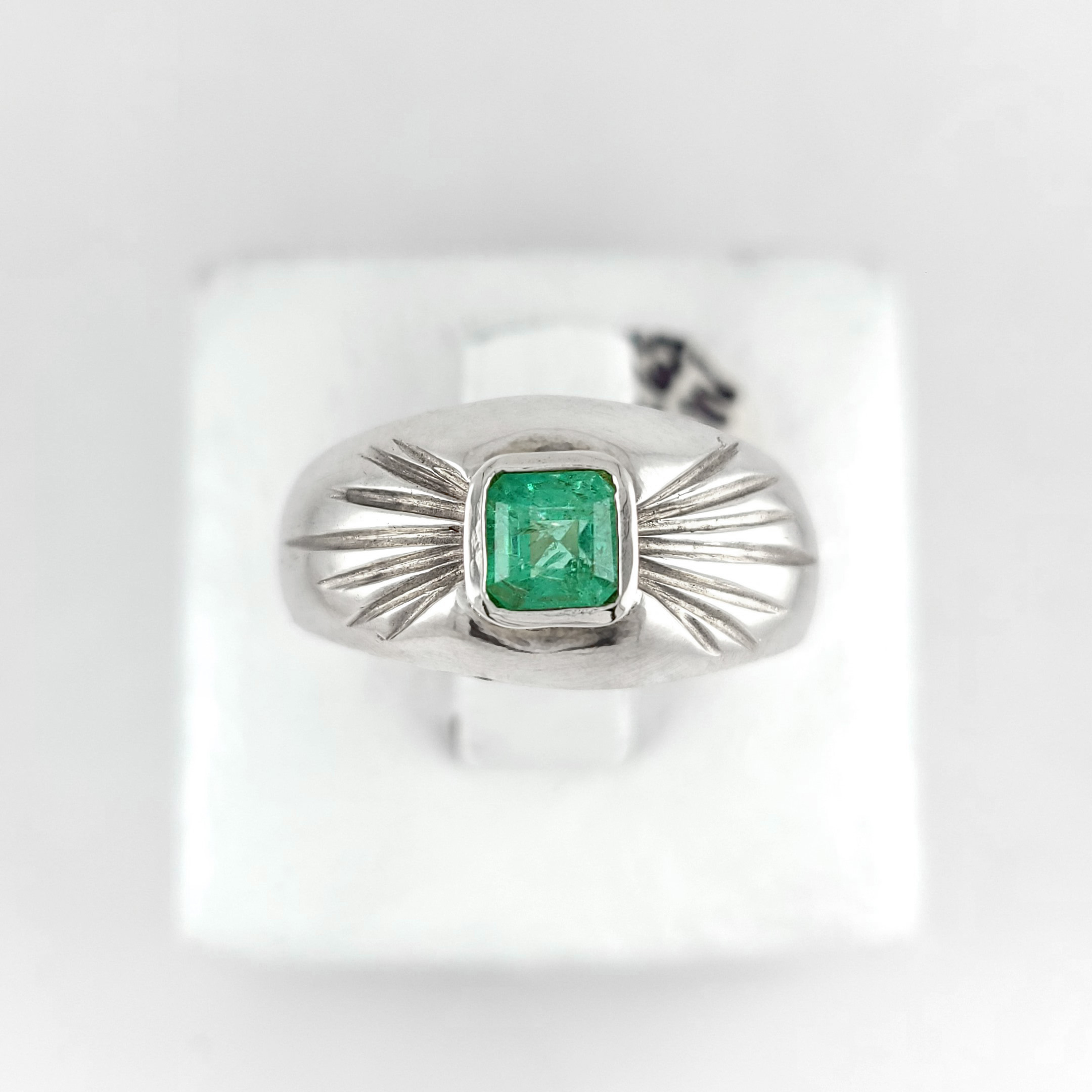 Anillo de plata sólida con esmeralda natural Colombiana. Peso total de la(s) esmeralda(s) 1kt
