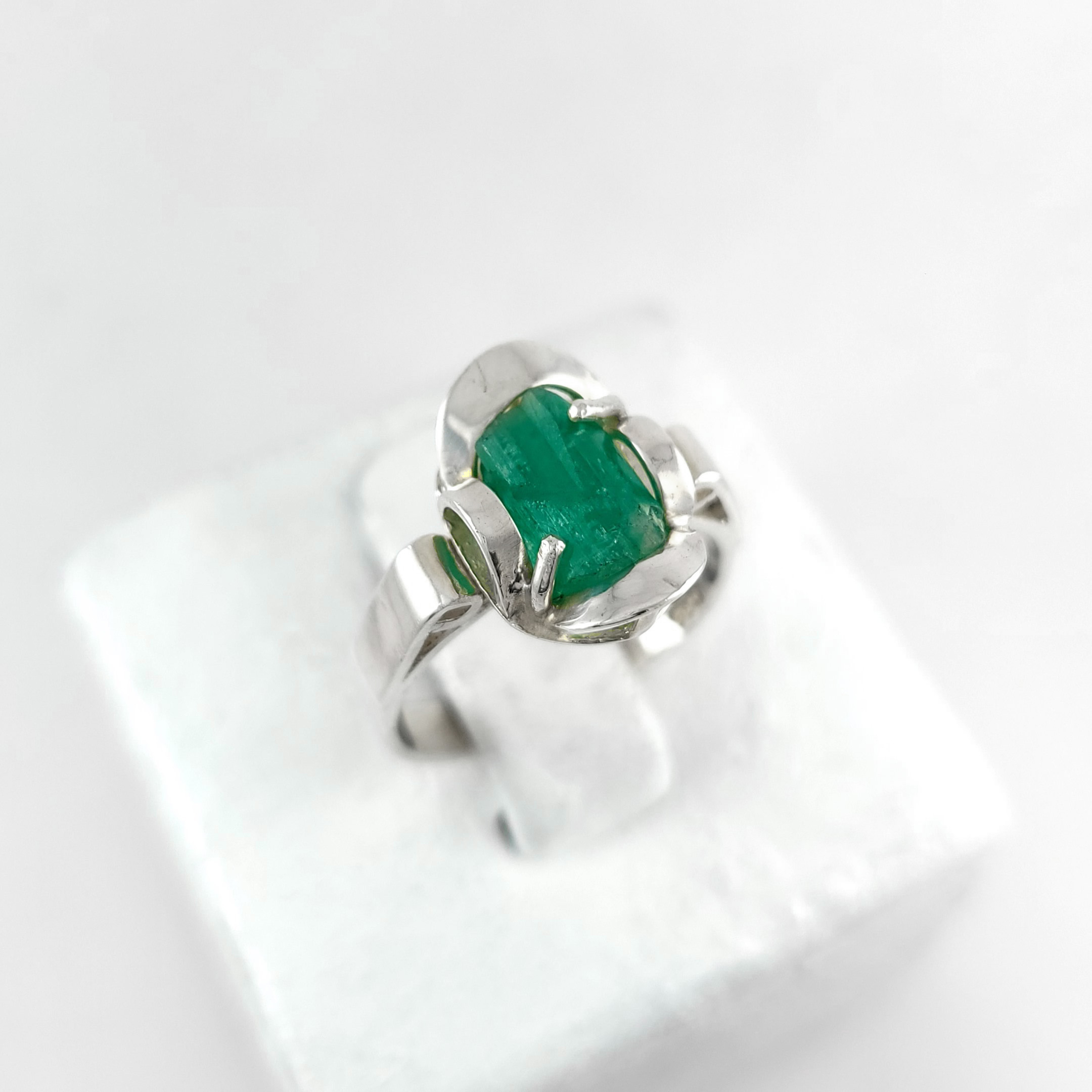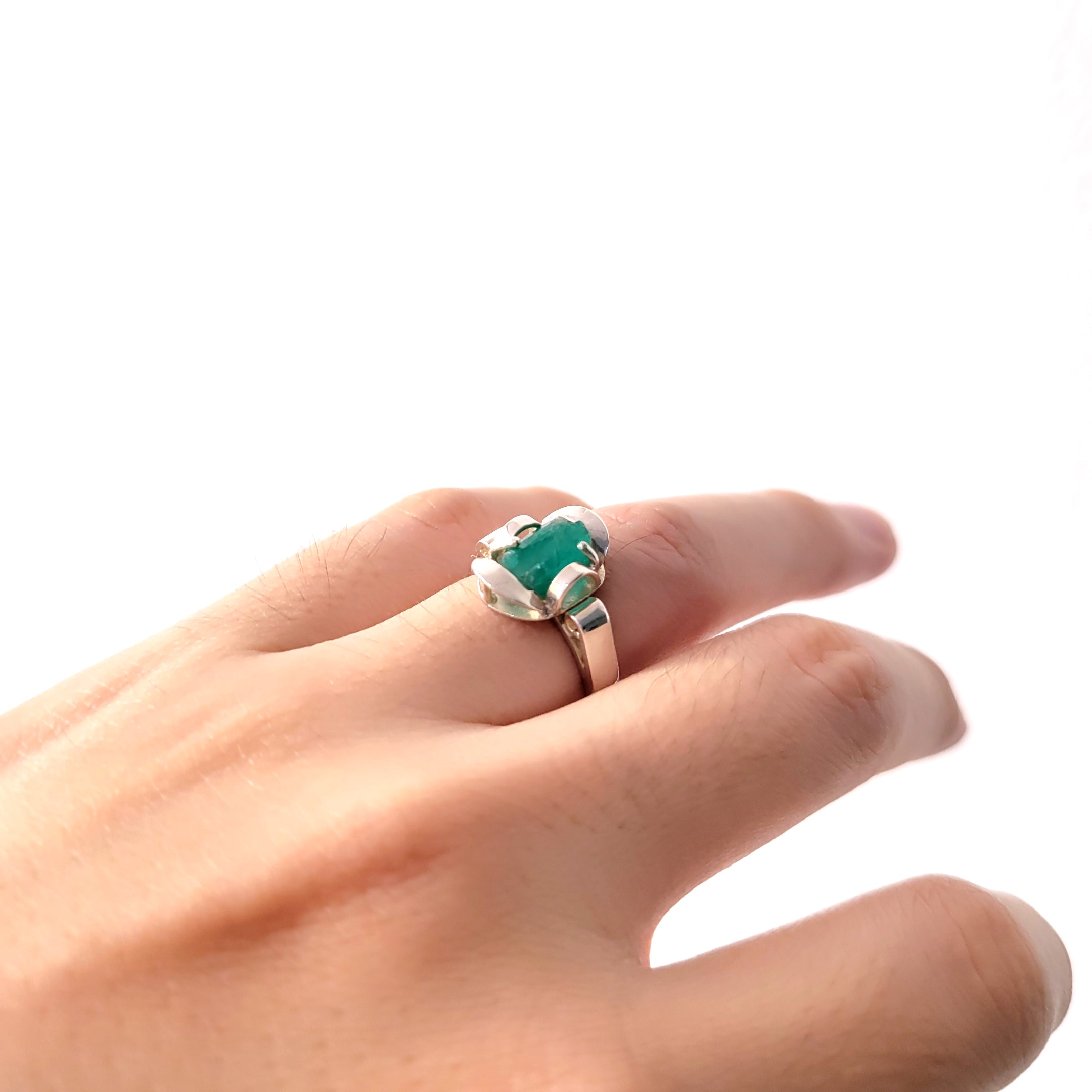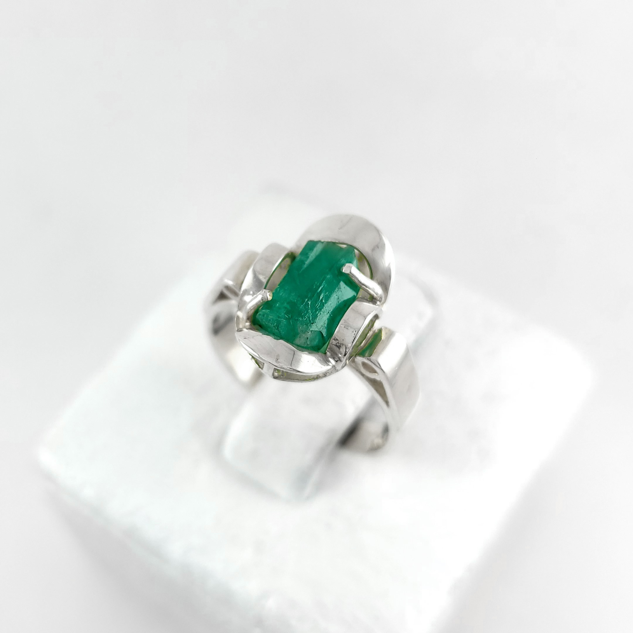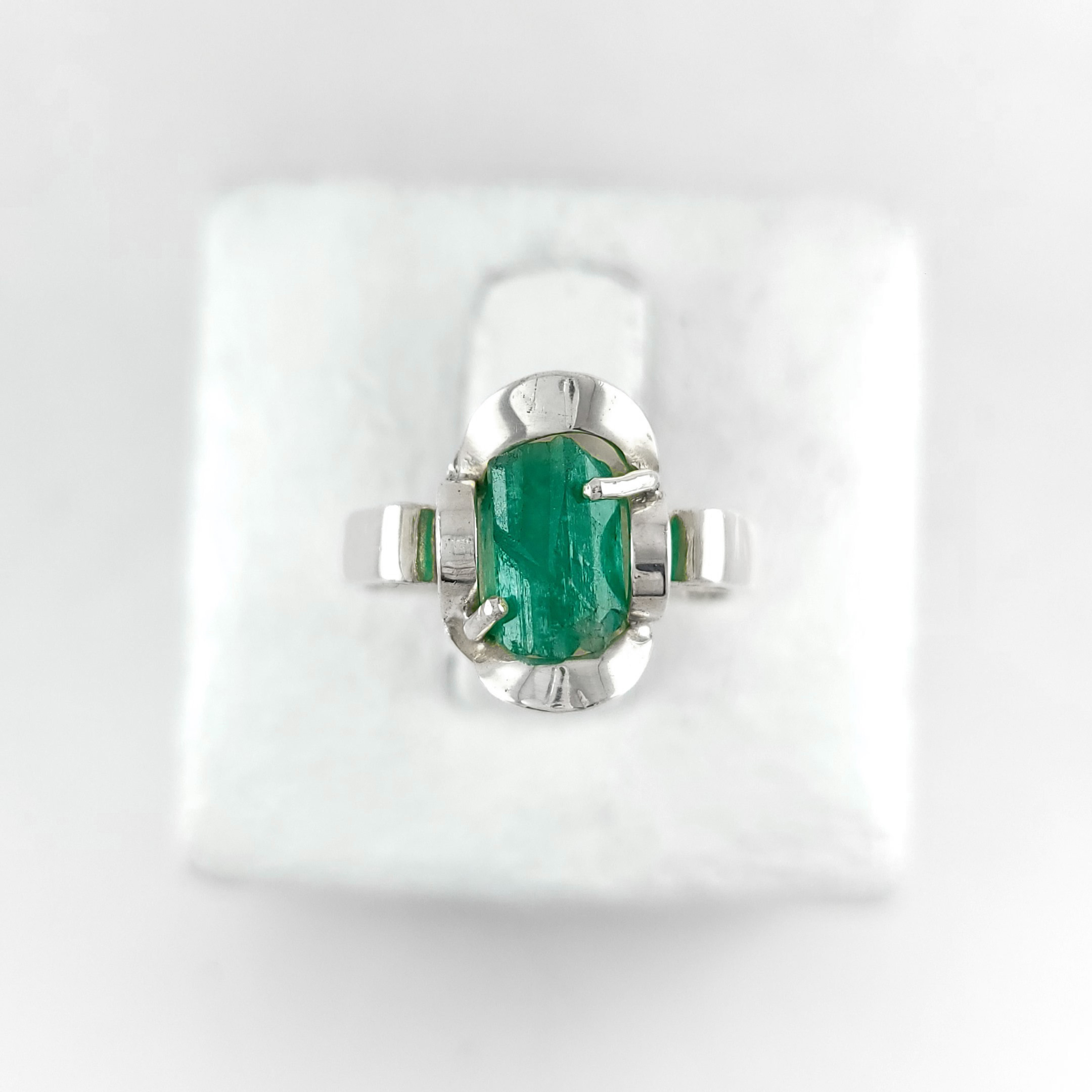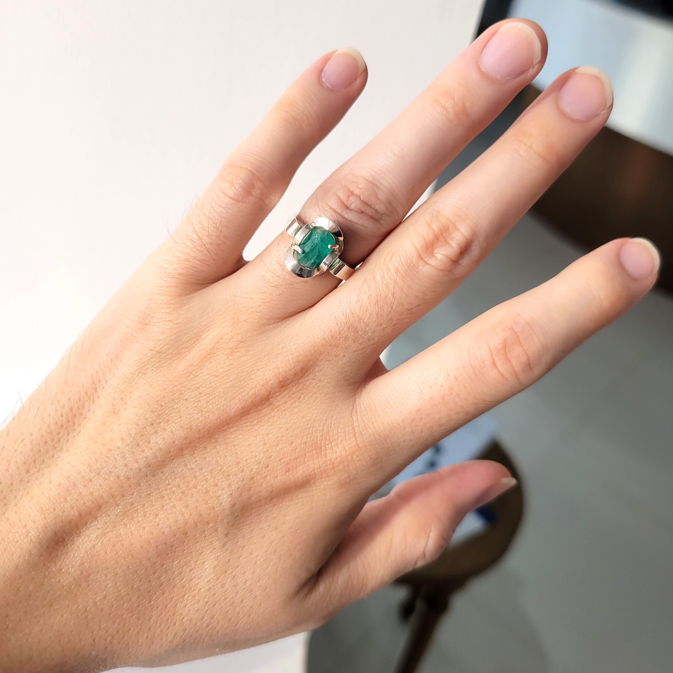 Anillo de plata sólida con esmeralda natural Colombiana. Peso total de la(s) esmeralda(s) 2kt