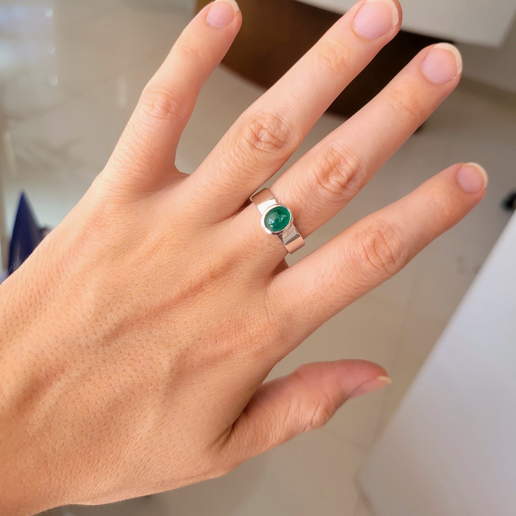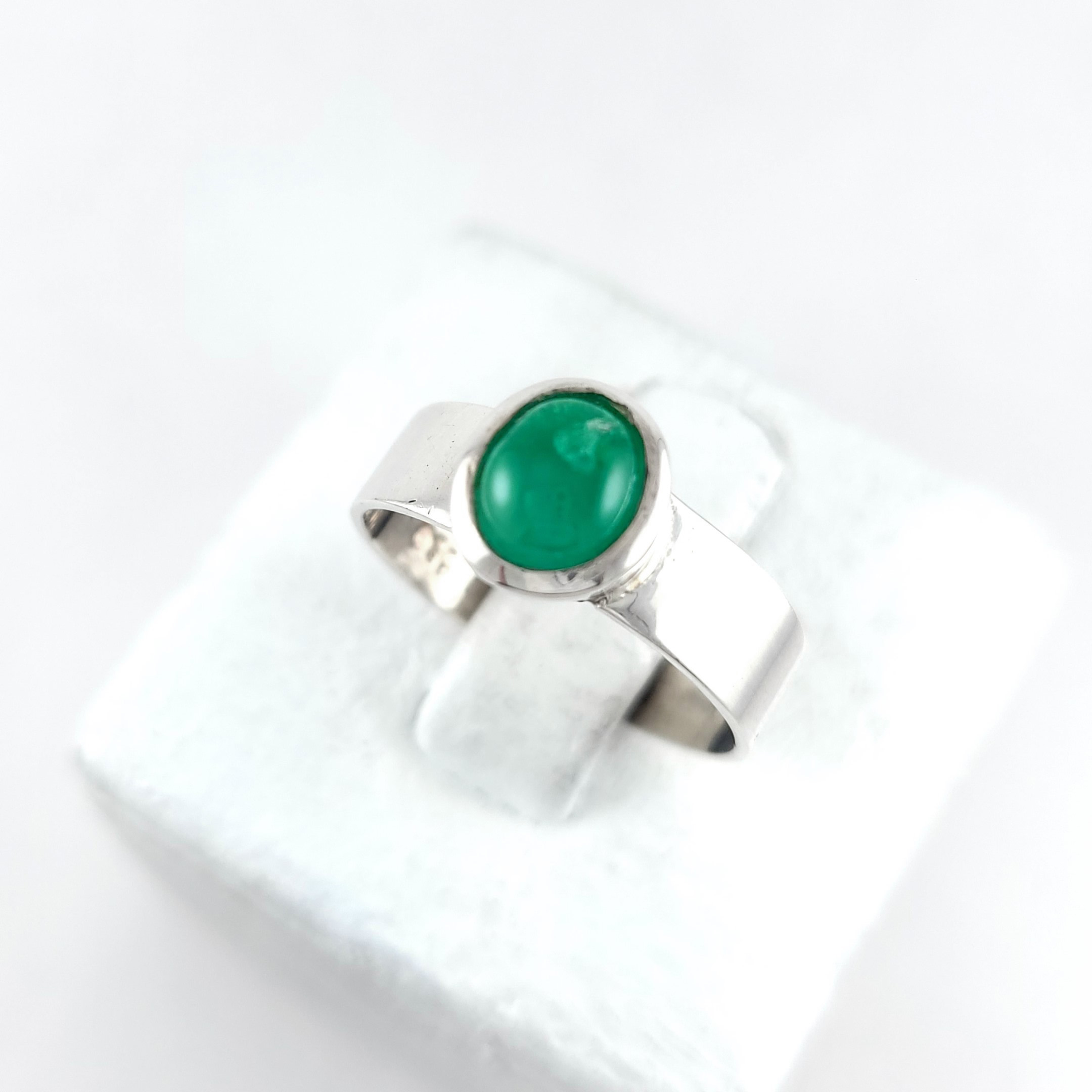 Anillo de plata sólida con esmeralda natural Colombiana. Peso total de la(s) esmeralda(s) 1.34kt