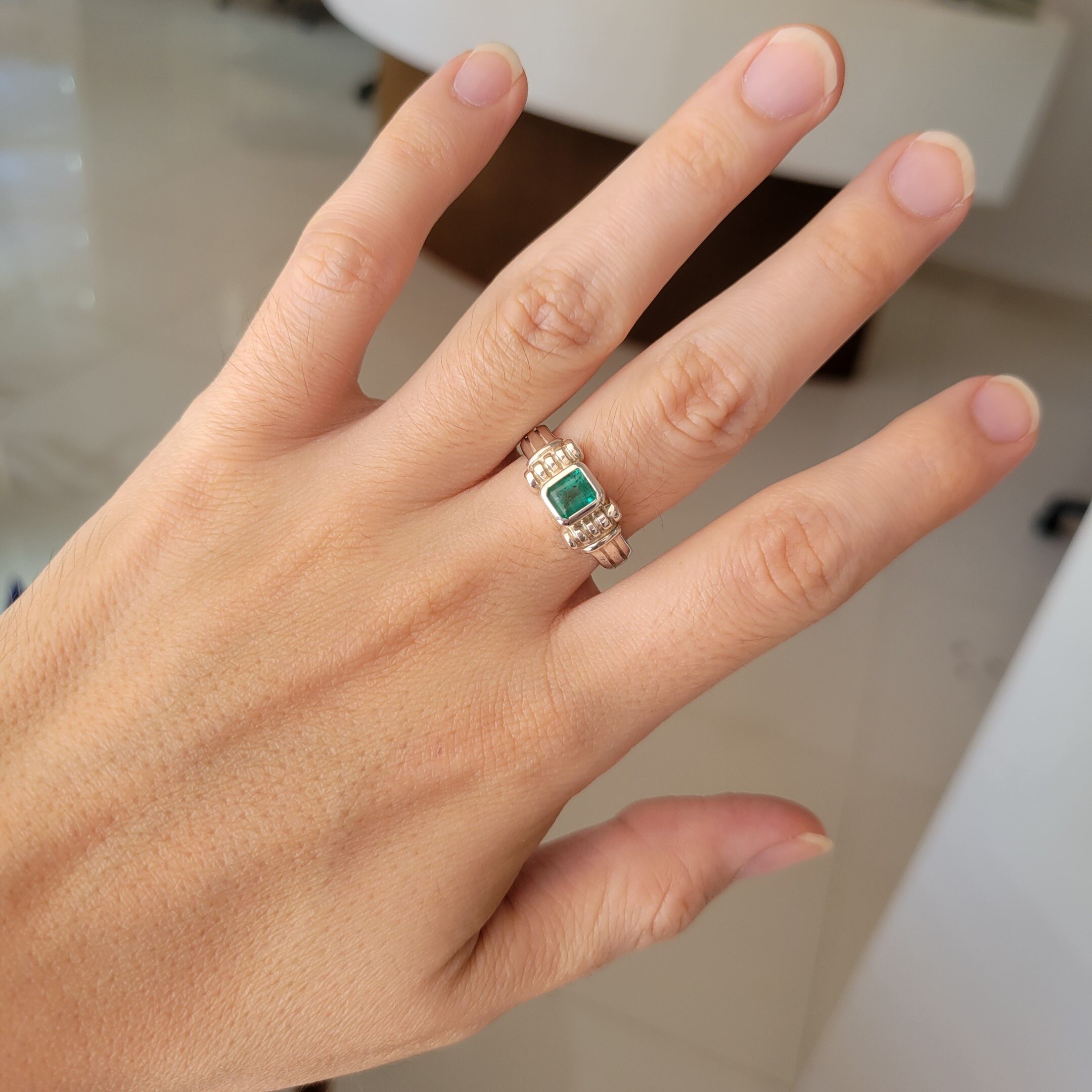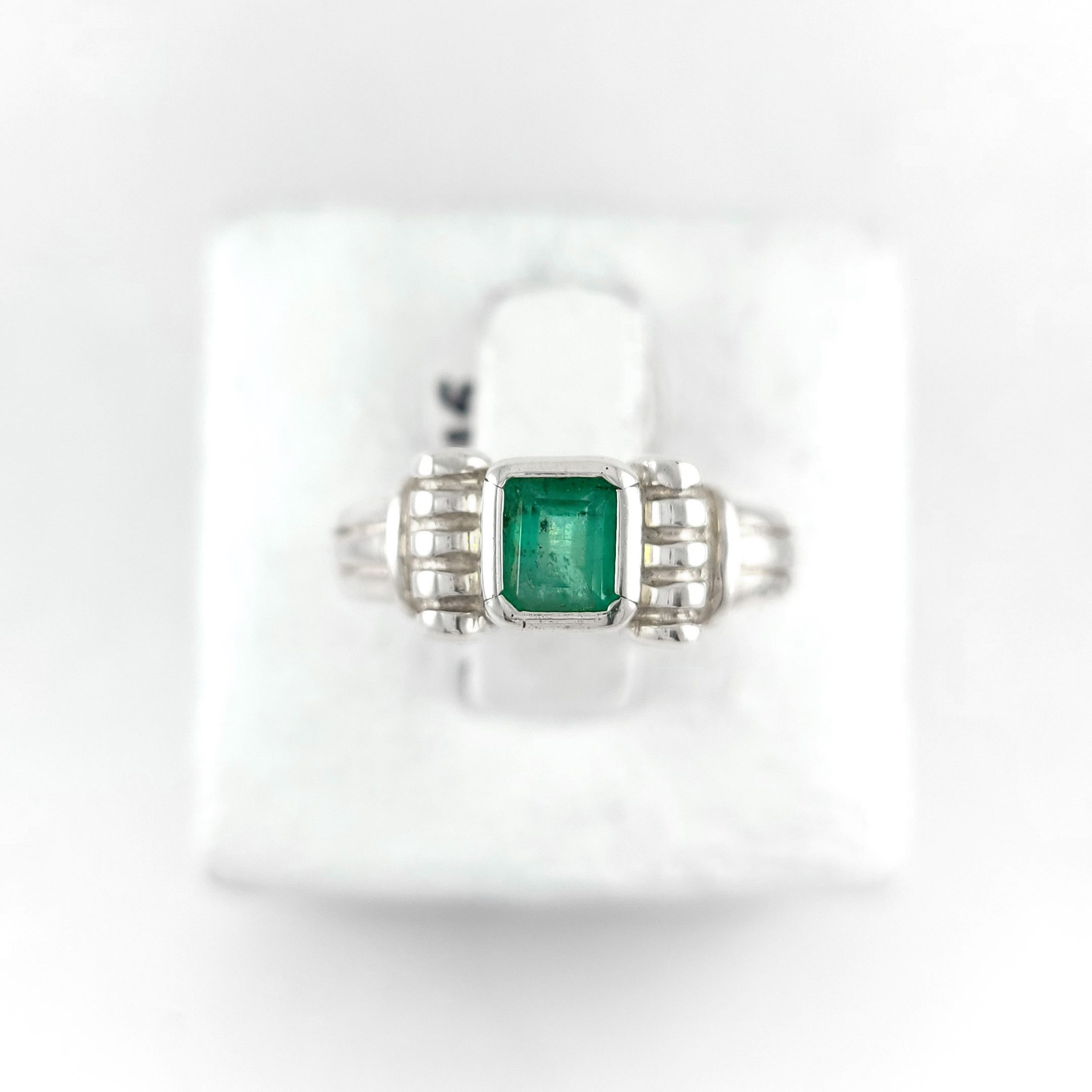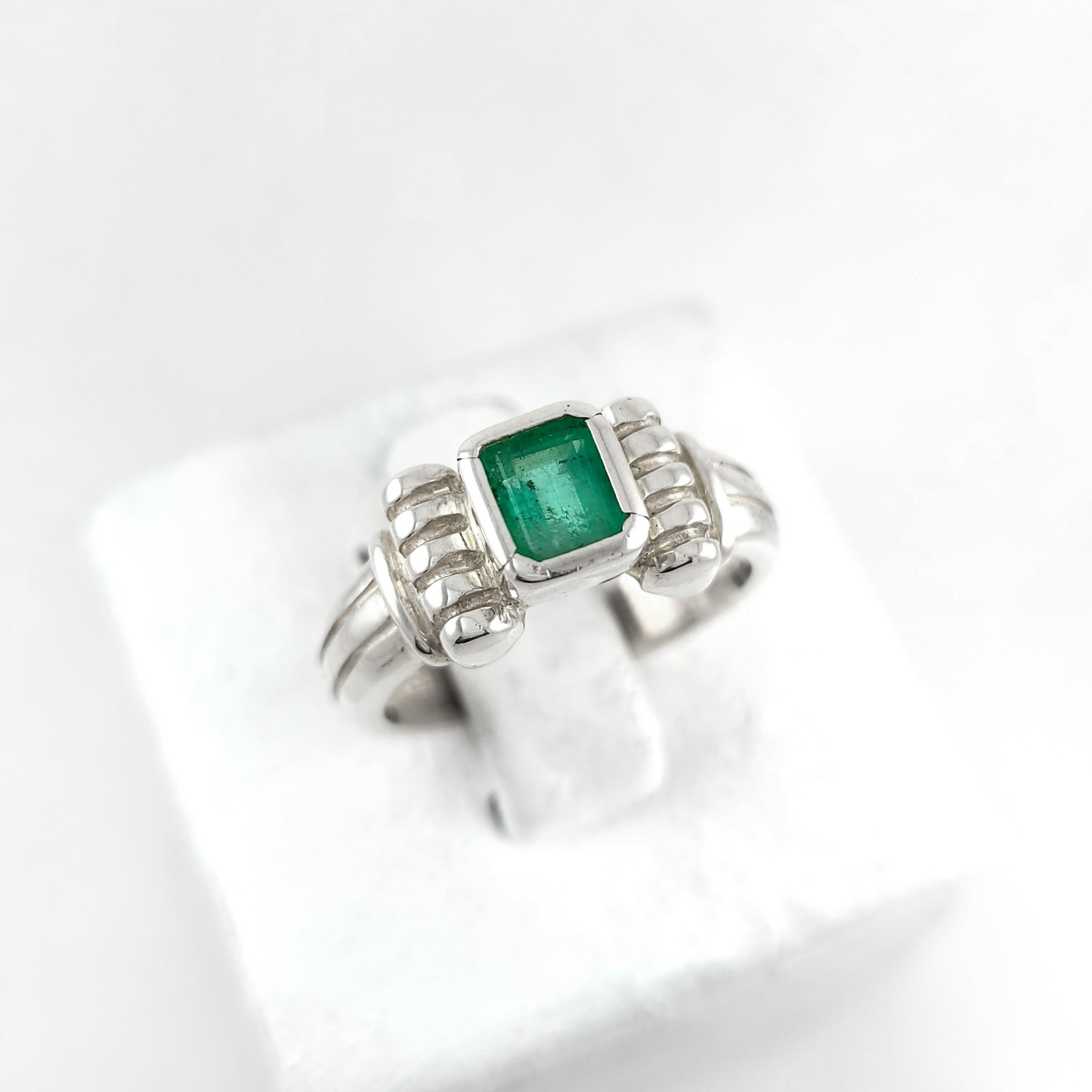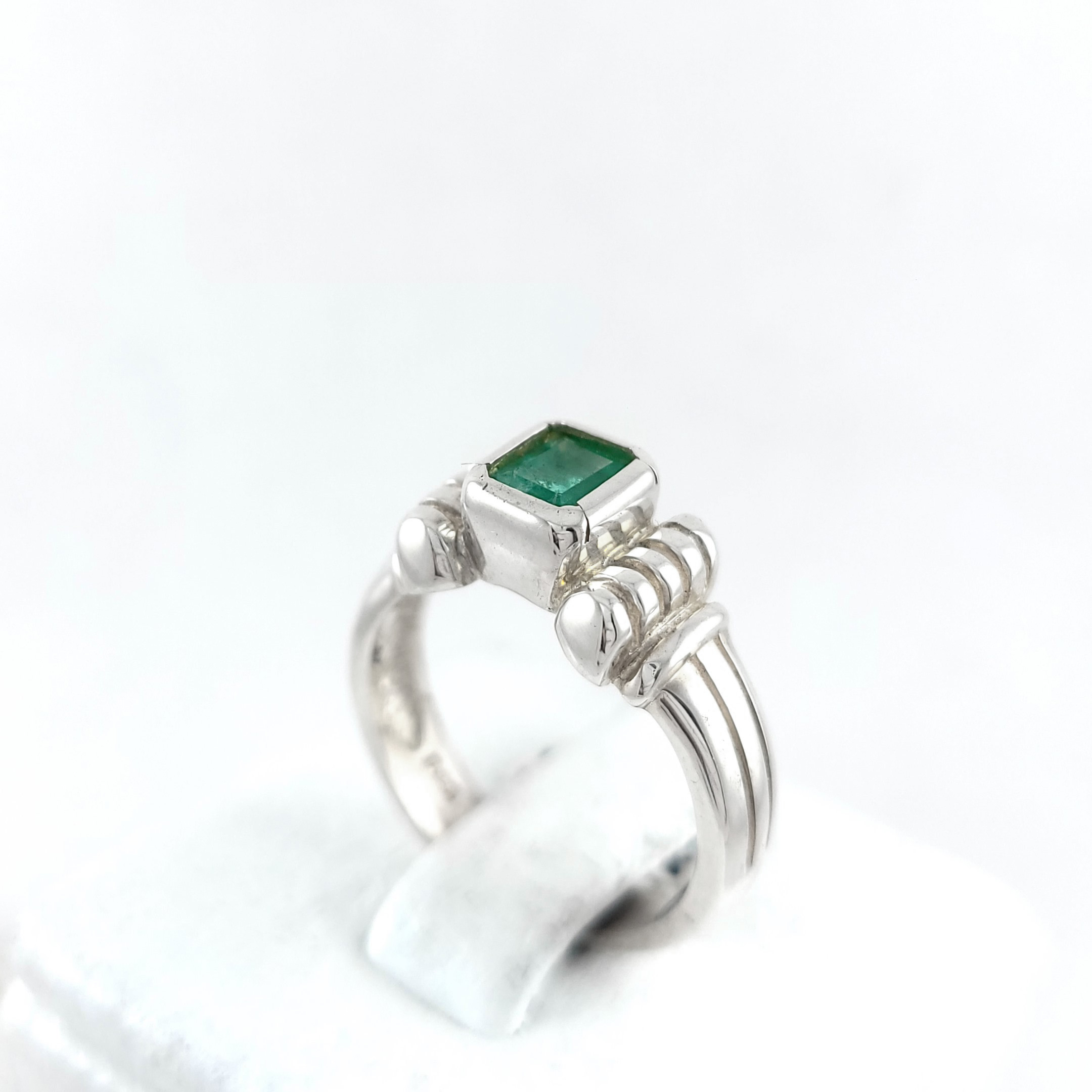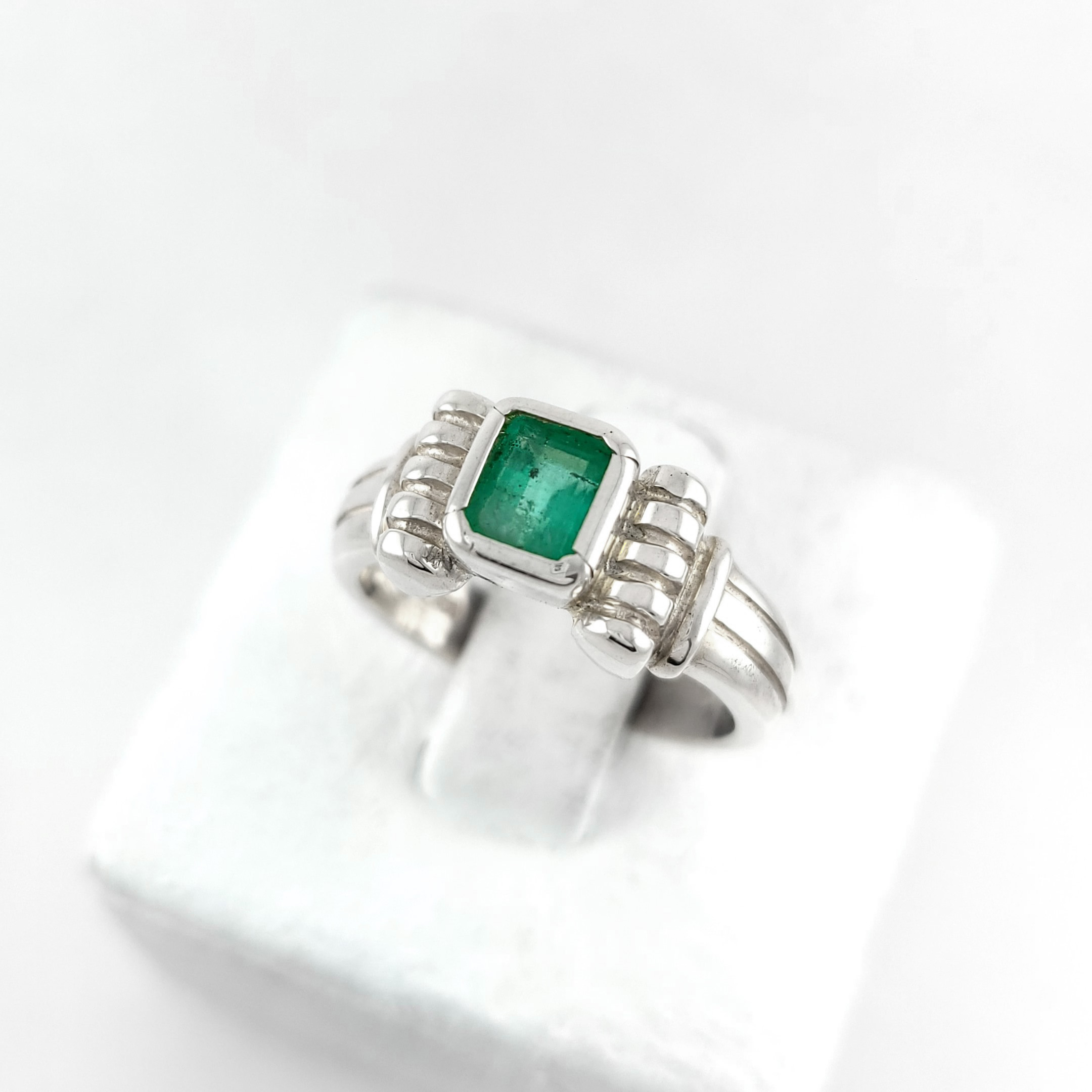Anillo de plata sólida con esmeralda natural Colombiana. Peso total de la(s) esmeralda(s) 1kt
