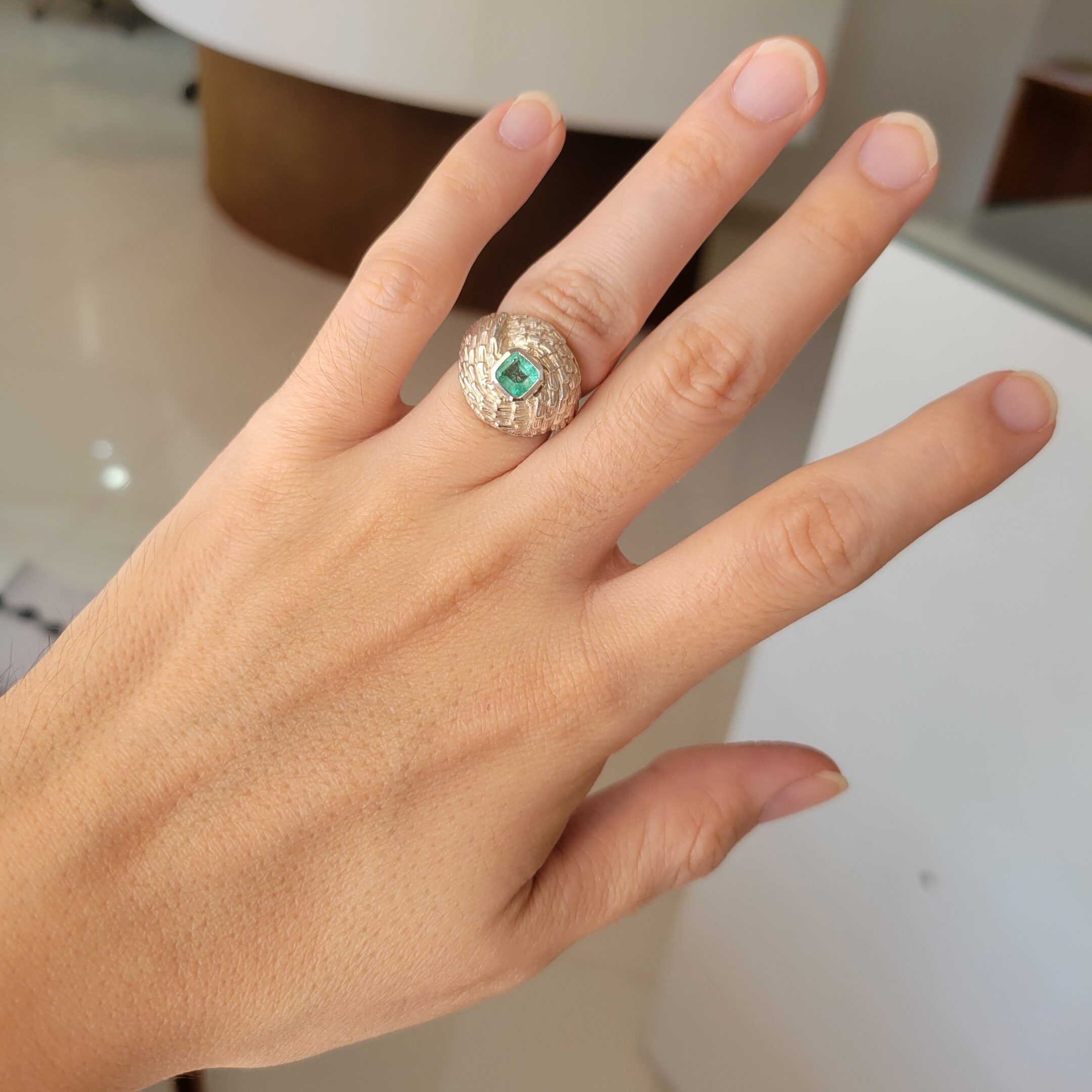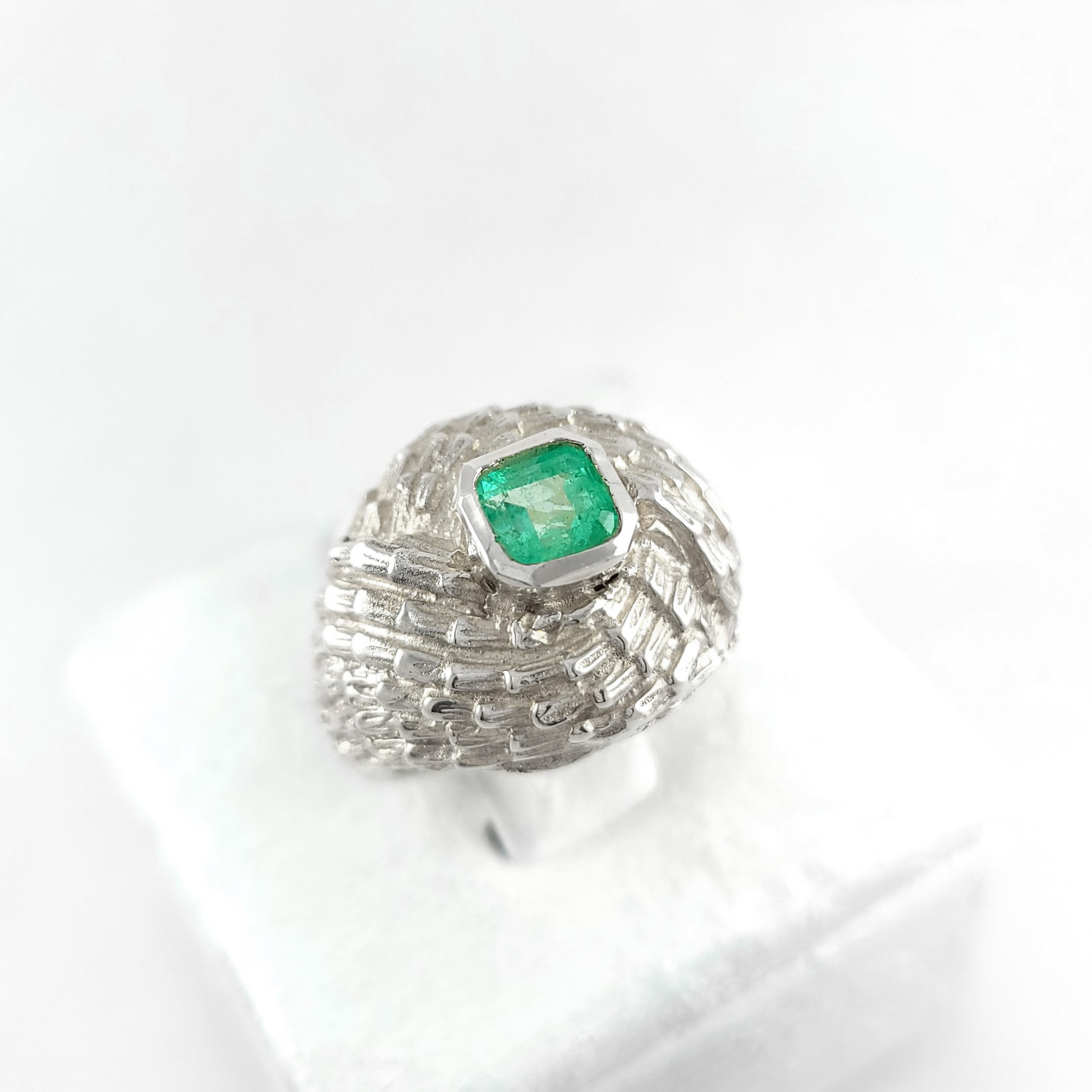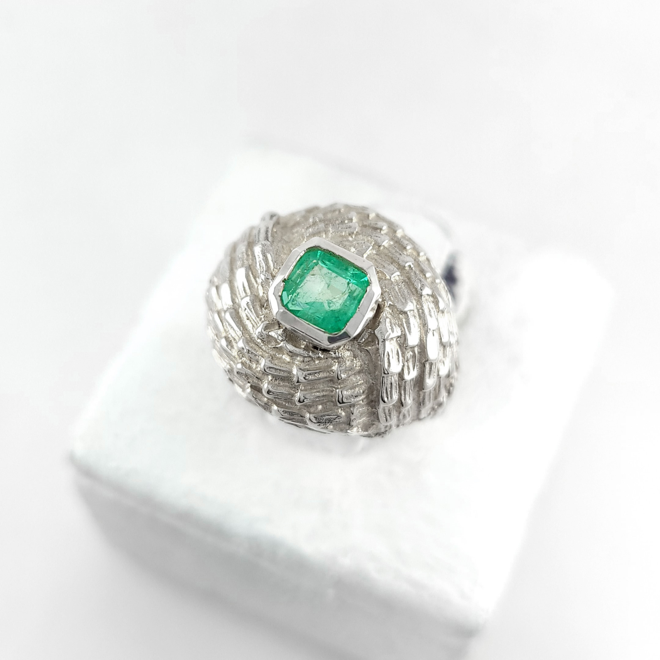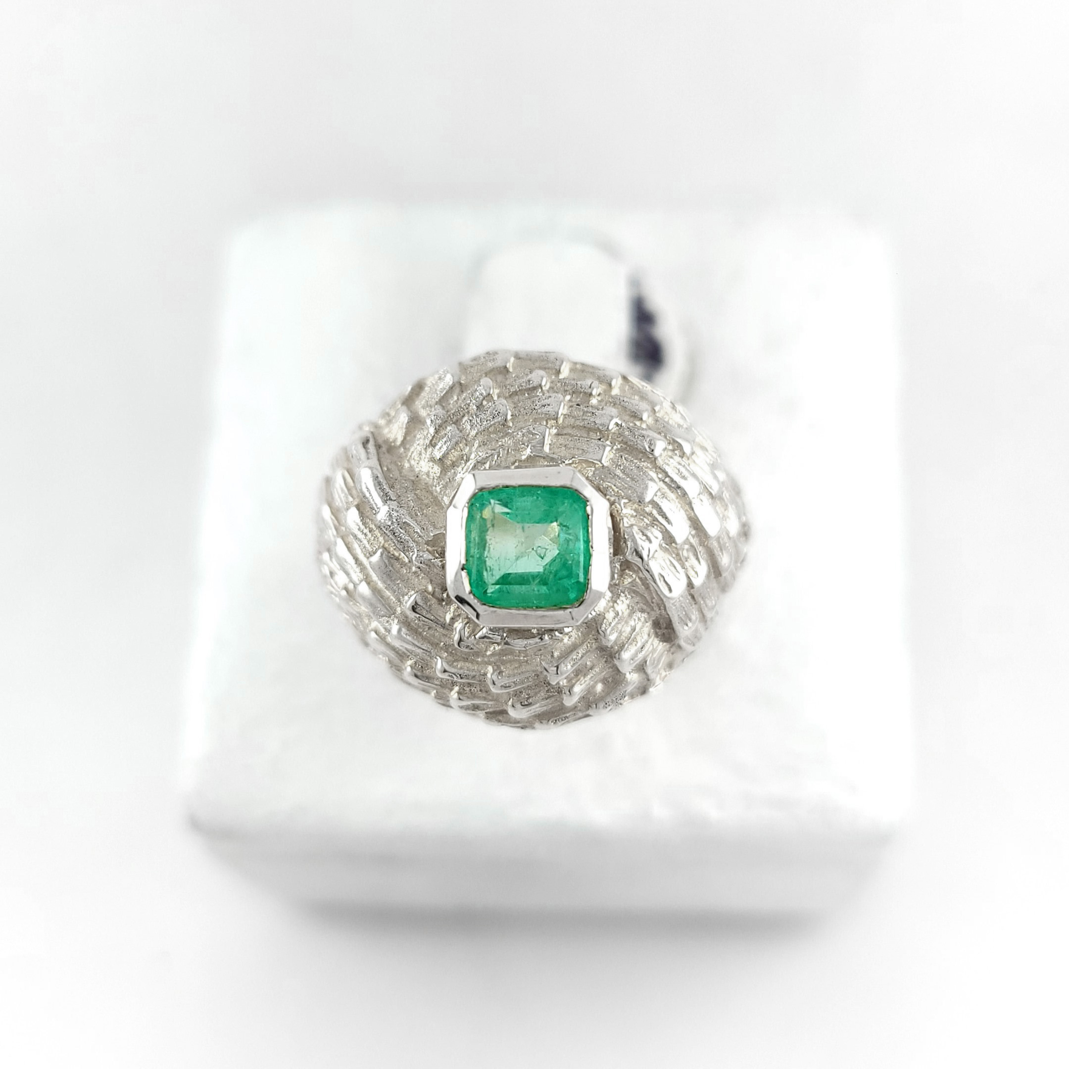 Anillo de plata sólida con esmeralda natural Colombiana. Peso total de la(s) esmeralda(s) 0.60kt