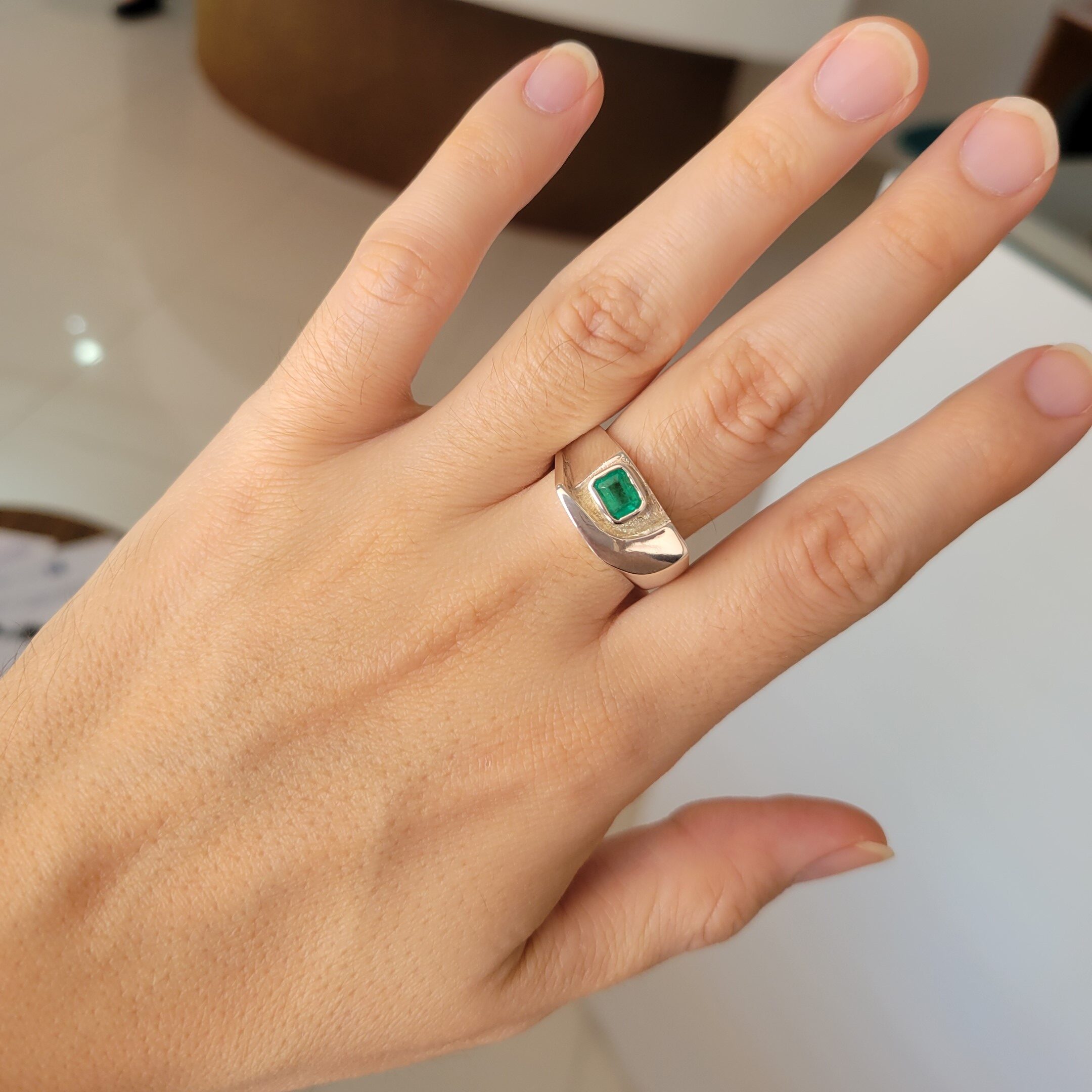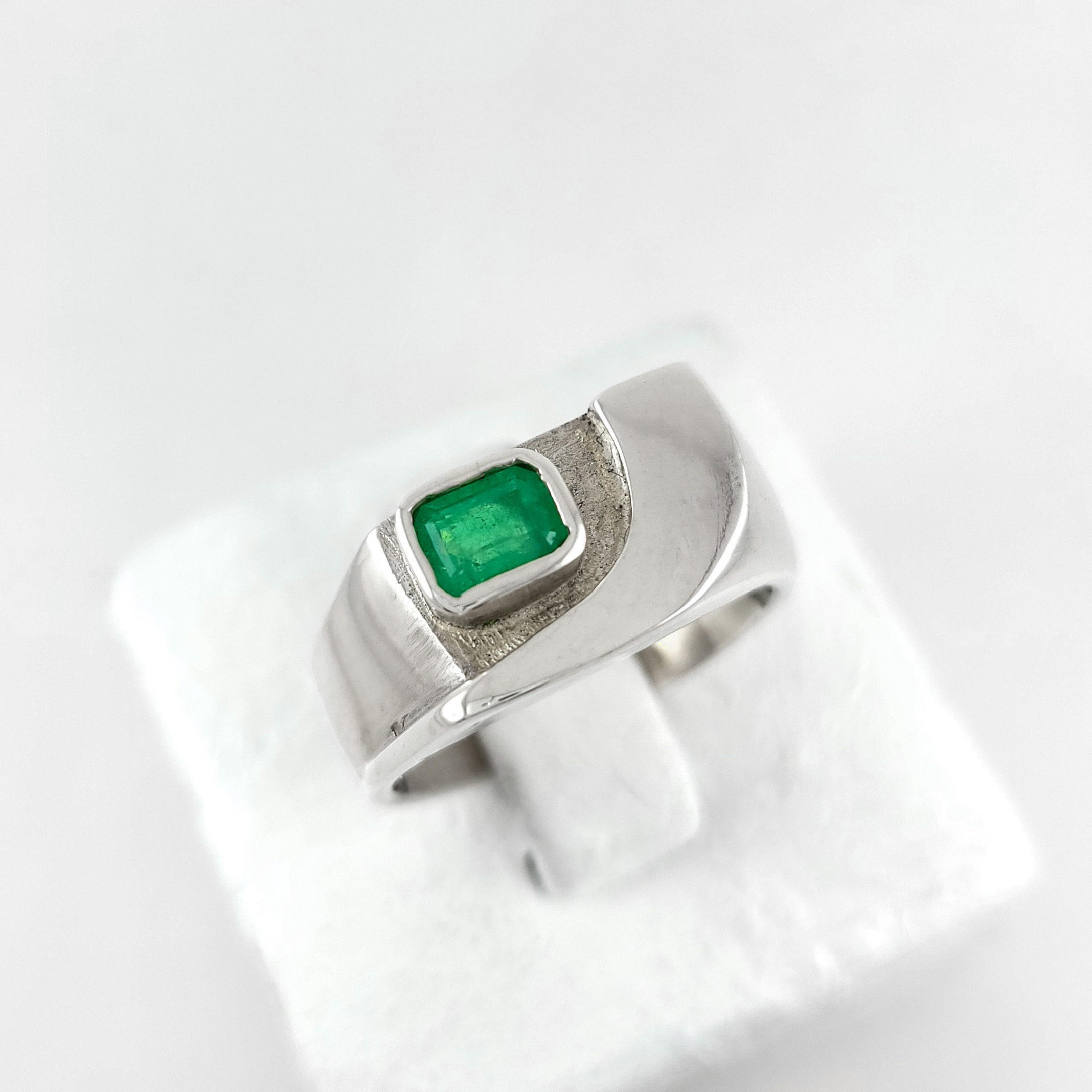 Anillo de plata sólida con esmeralda natural Colombiana. Peso total de la(s) esmeralda(s) 1kt