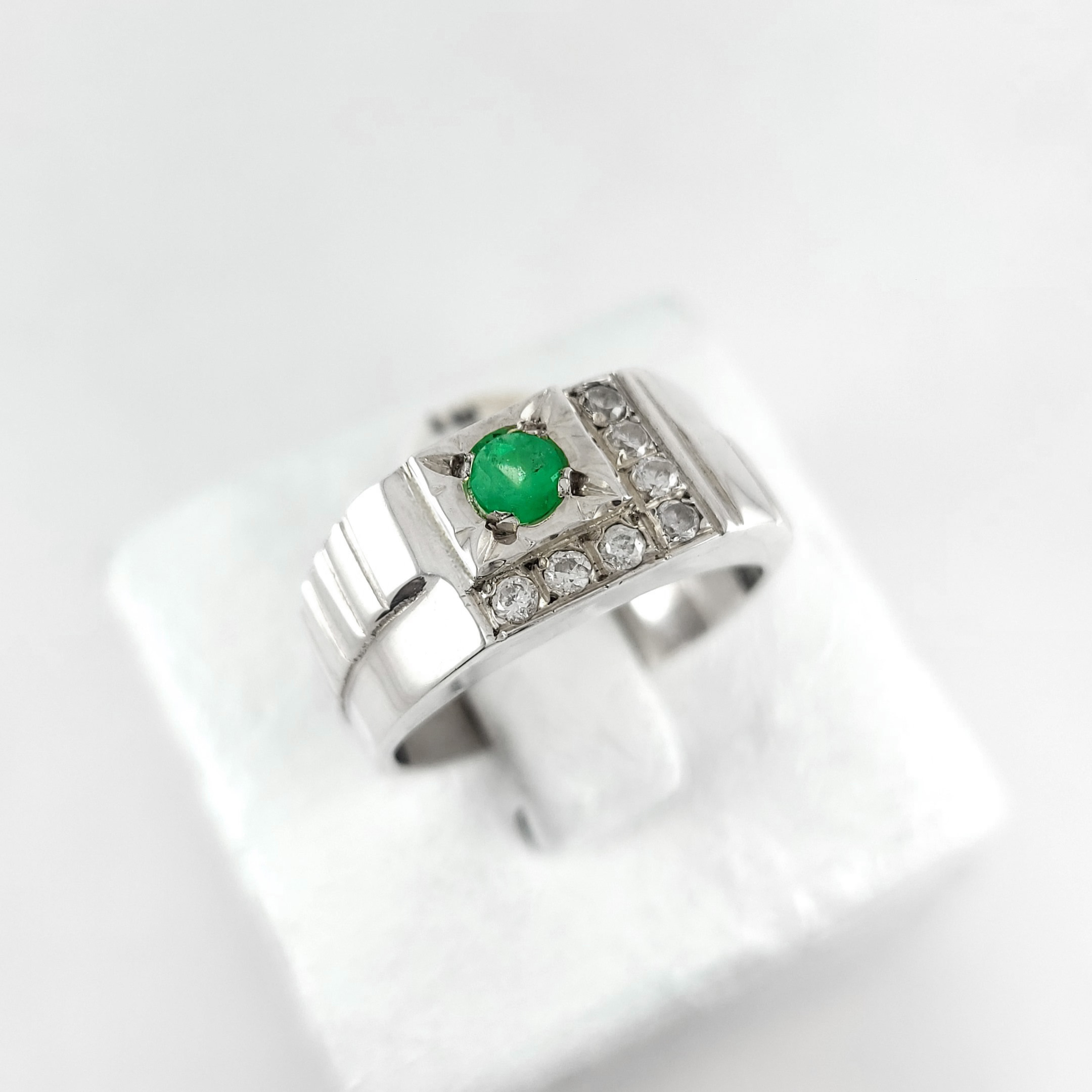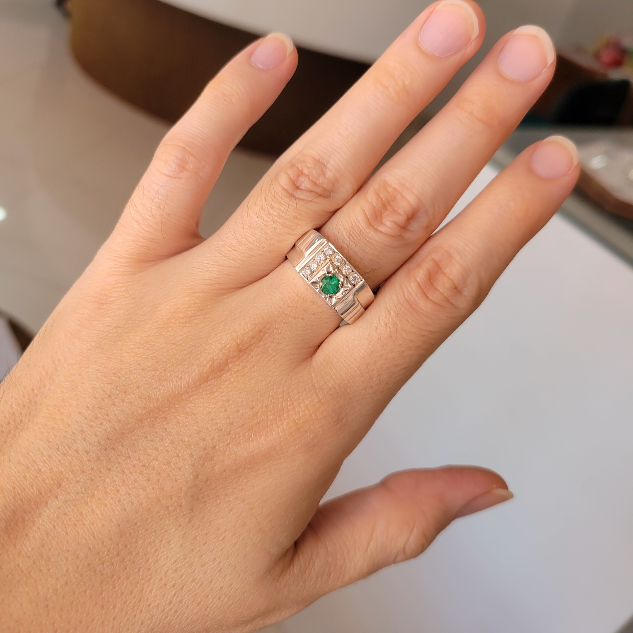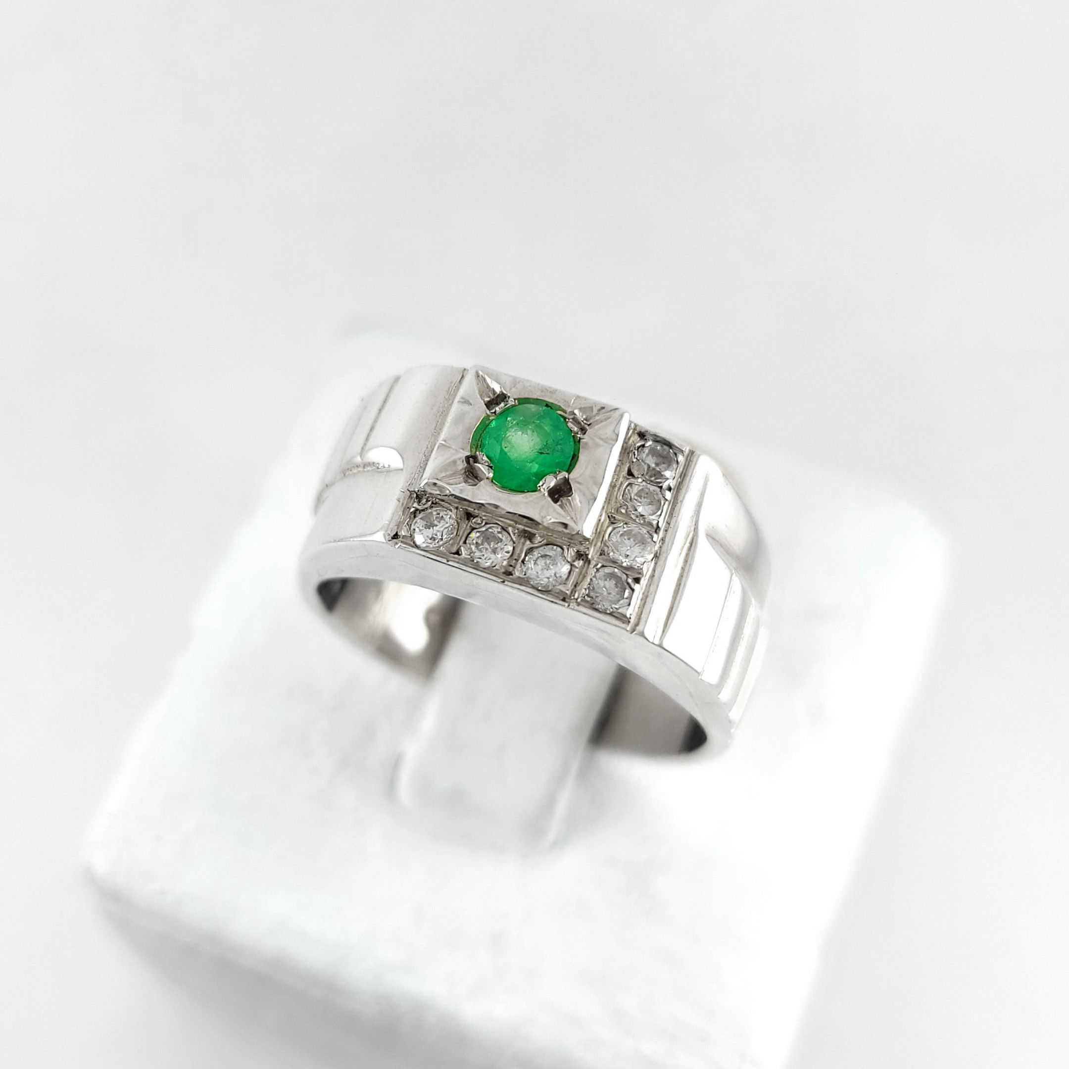 Anillo de plata sólida con esmeralda natural Colombiana. Peso total de la(s) esmeralda(s) 0.40kt
