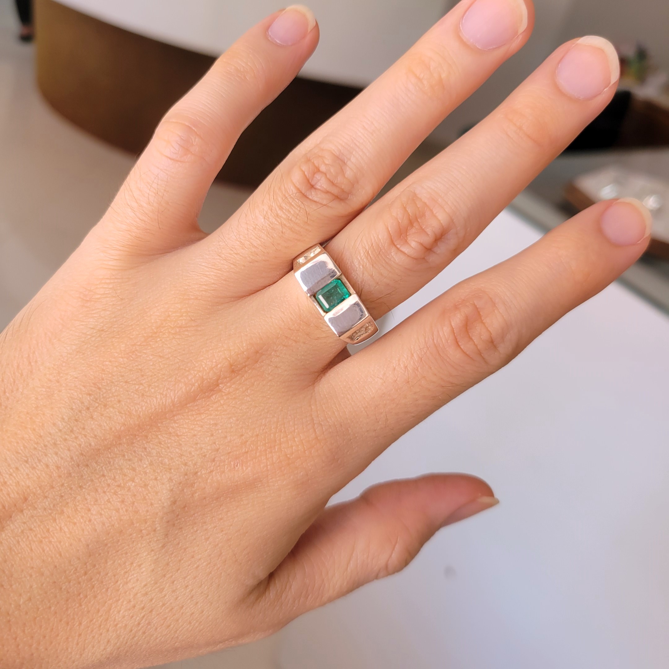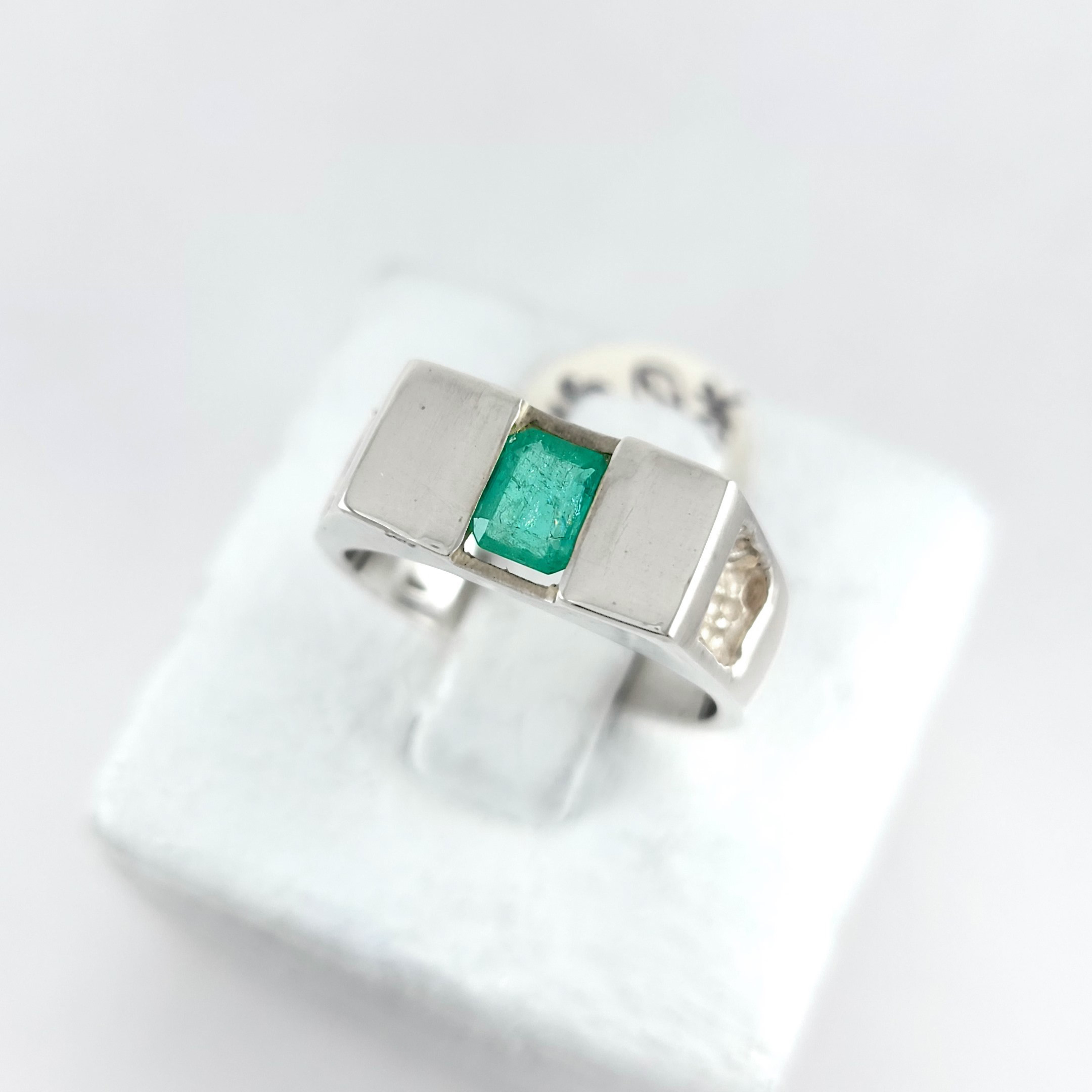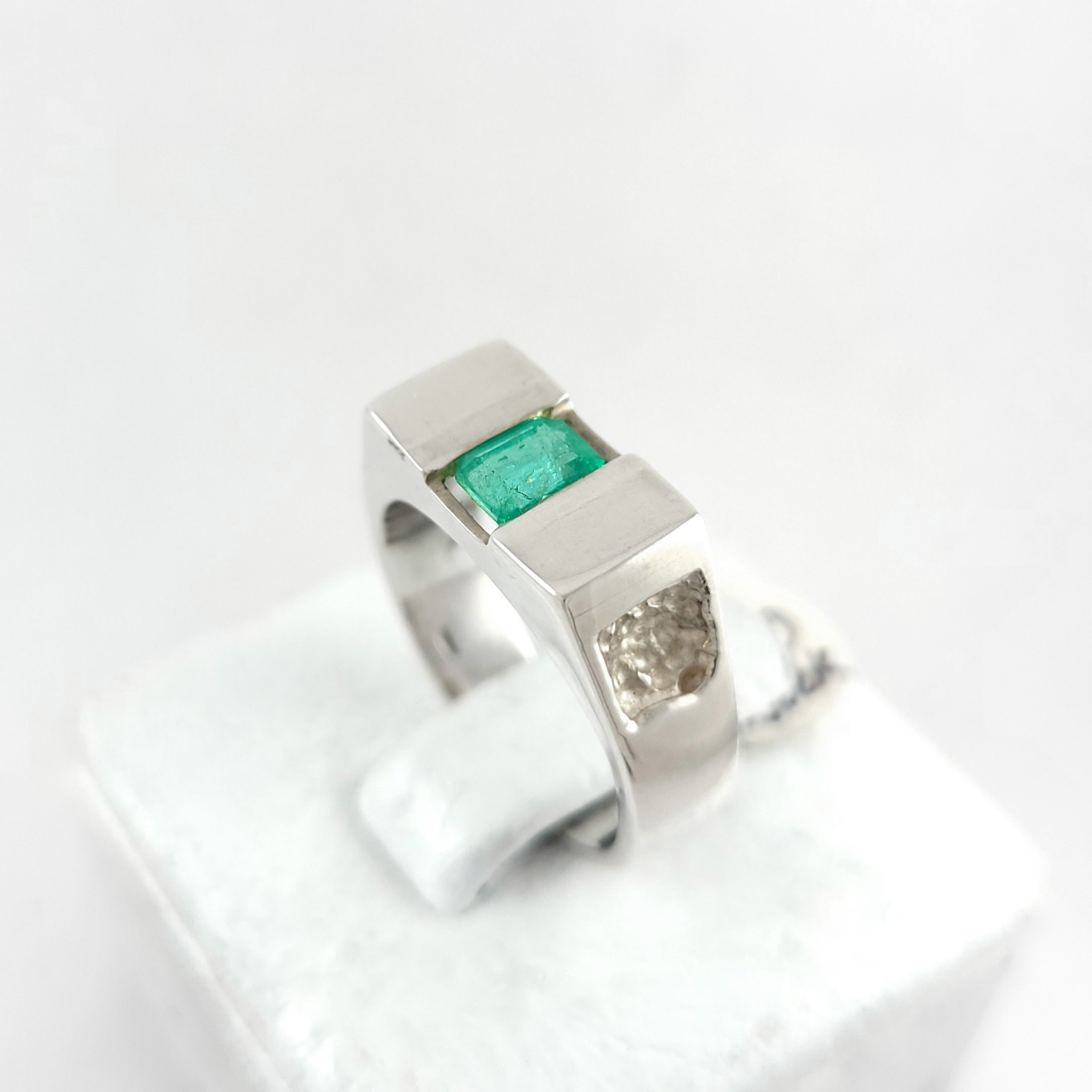 Anillo de plata sólida con esmeralda natural Colombiana. Peso total de la(s) esmeralda(s) 1kt