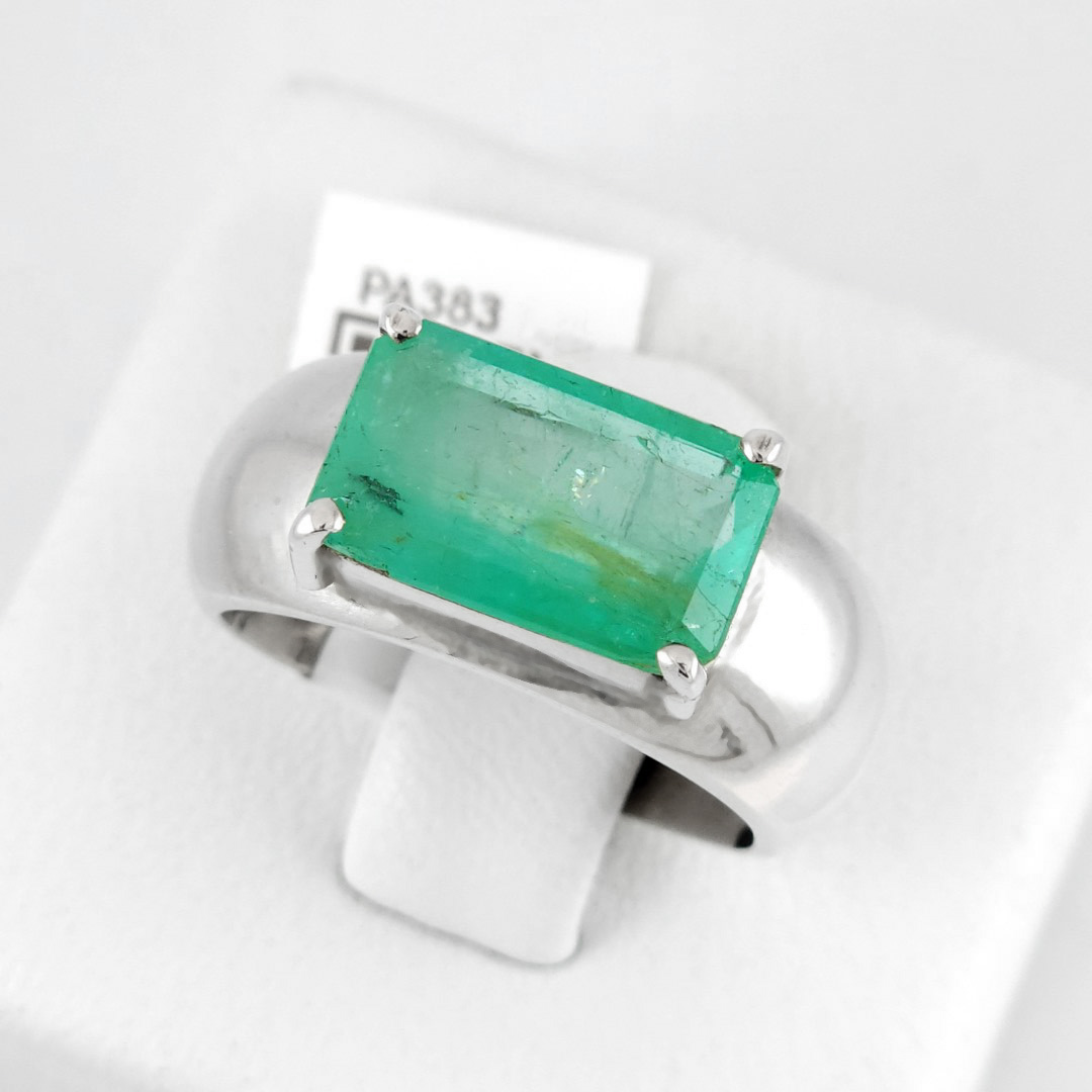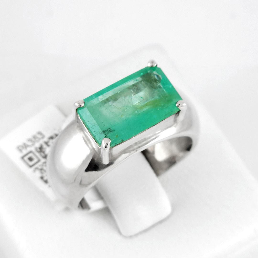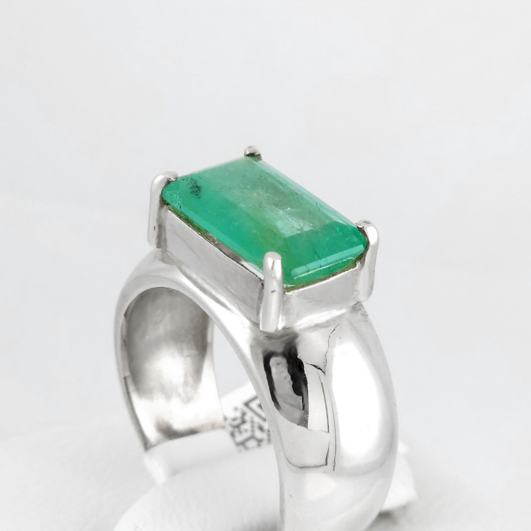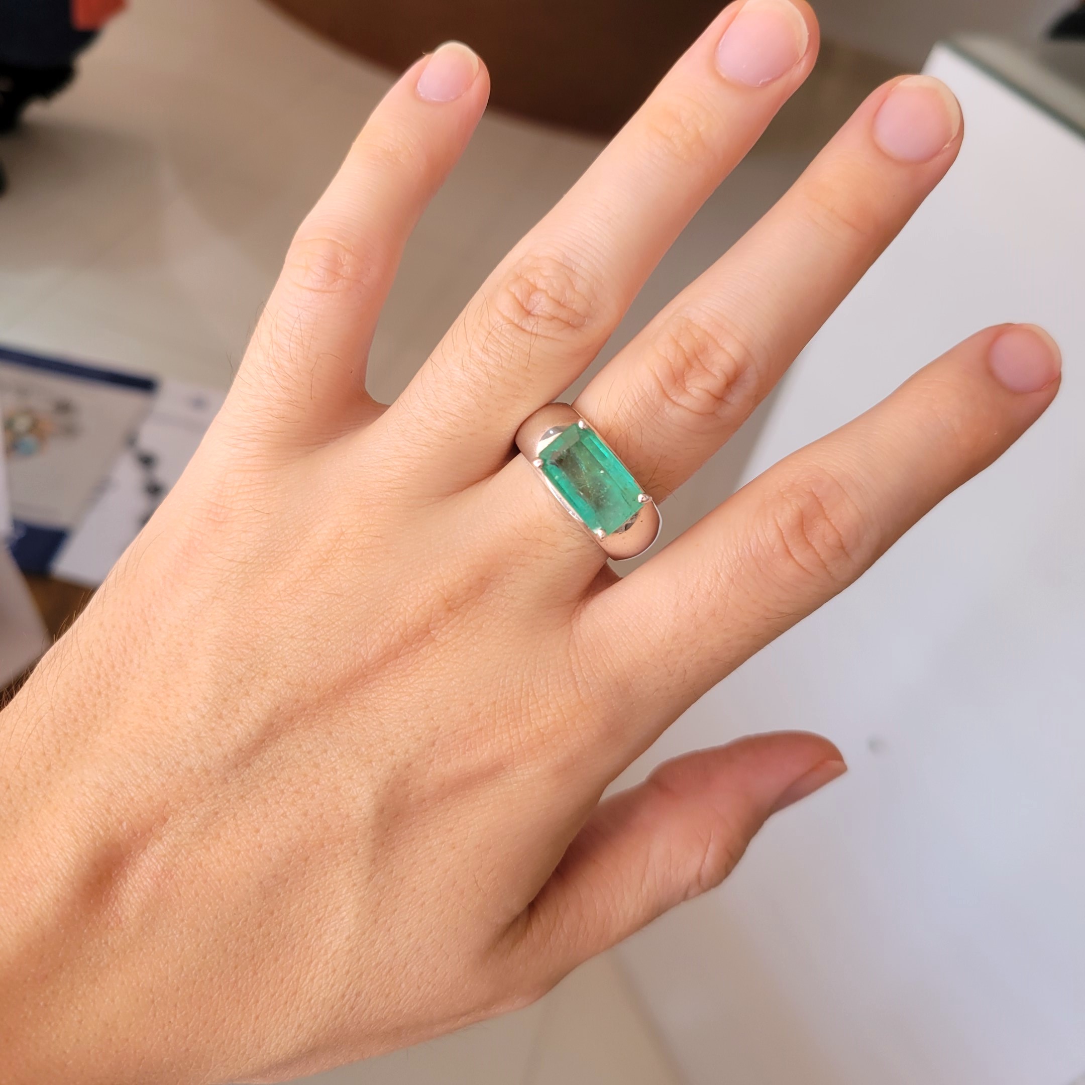 Anillo de plata sólida con esmeralda natural Colombiana. Peso total de la(s) esmeralda(s) 4.40kt