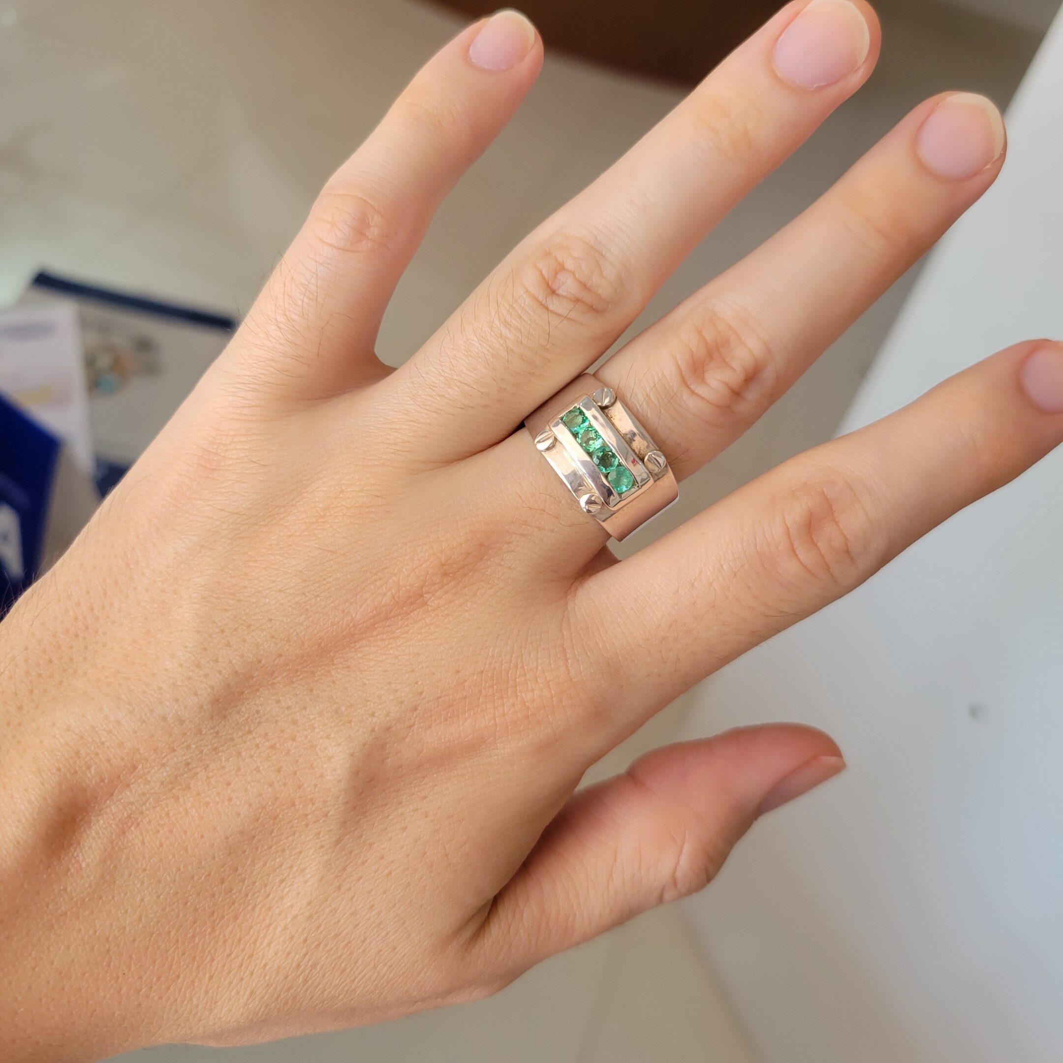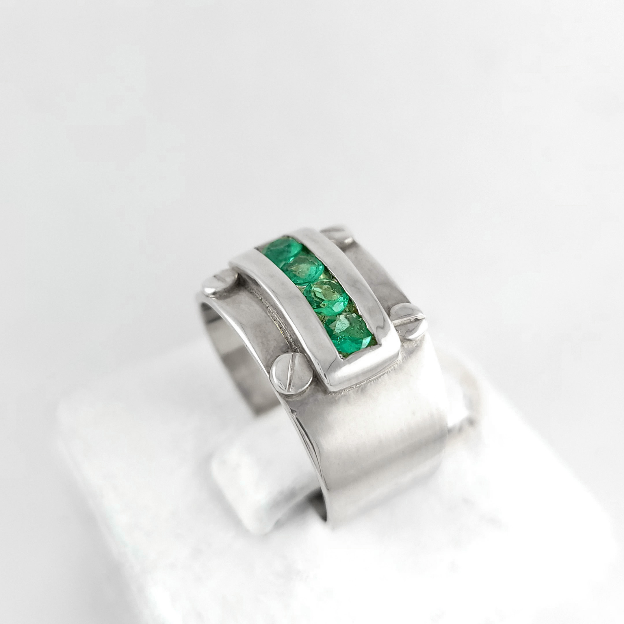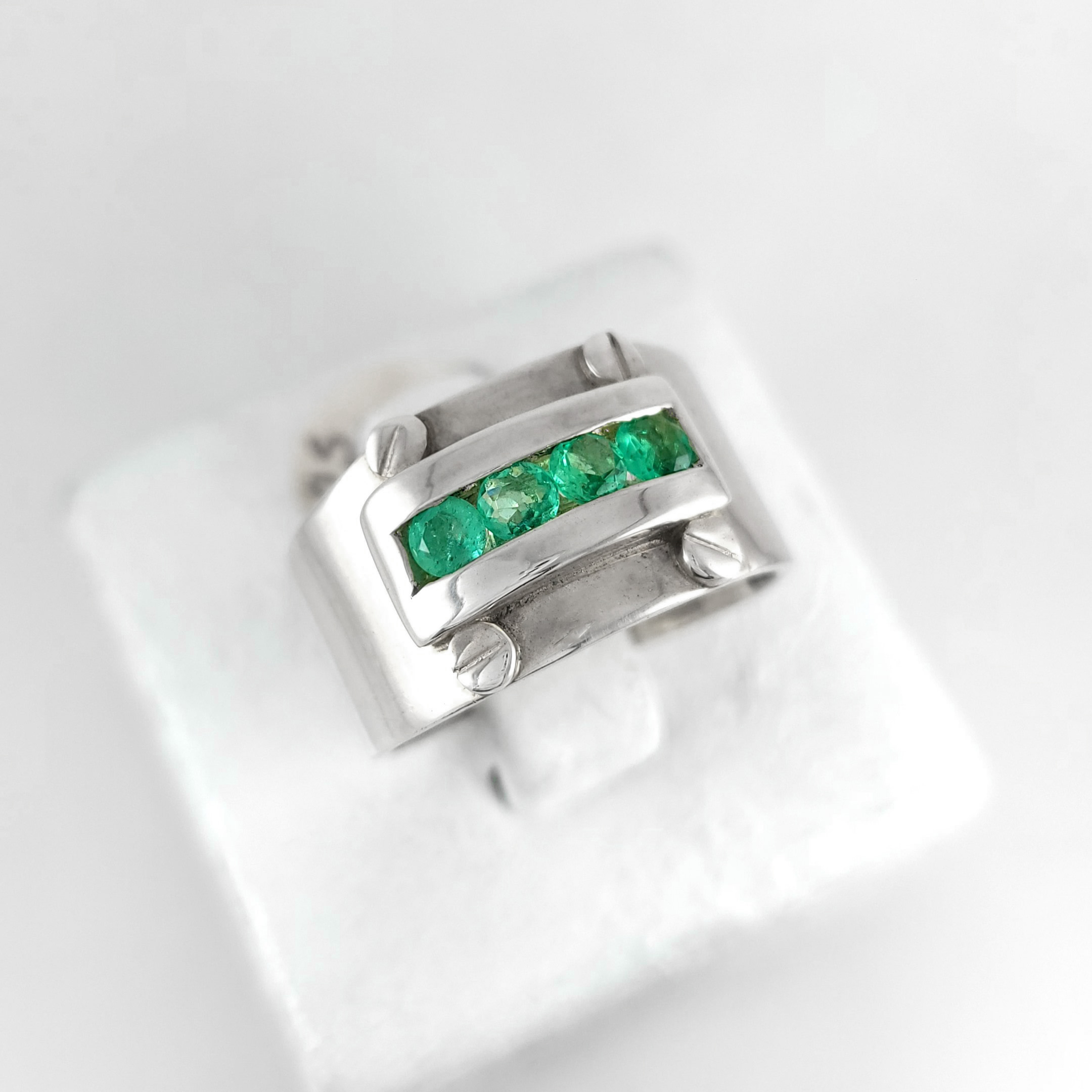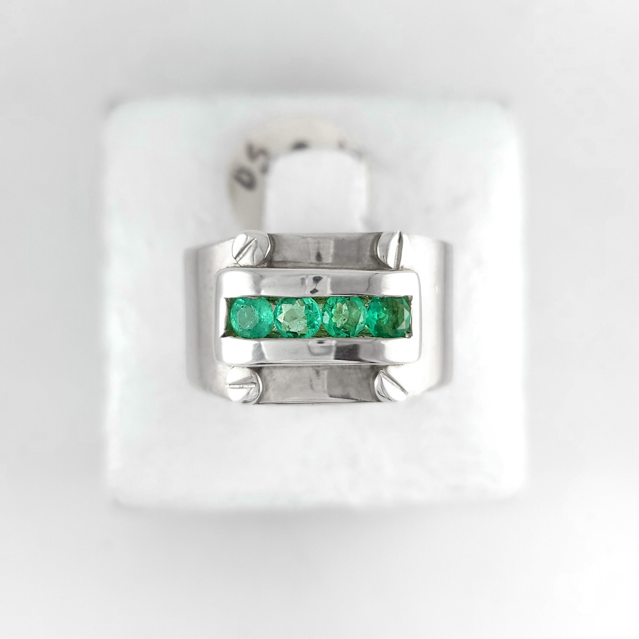 Anillo de plata sólida con esmeralda natural Colombiana. Peso total de la(s) esmeralda(s) 0.68kt