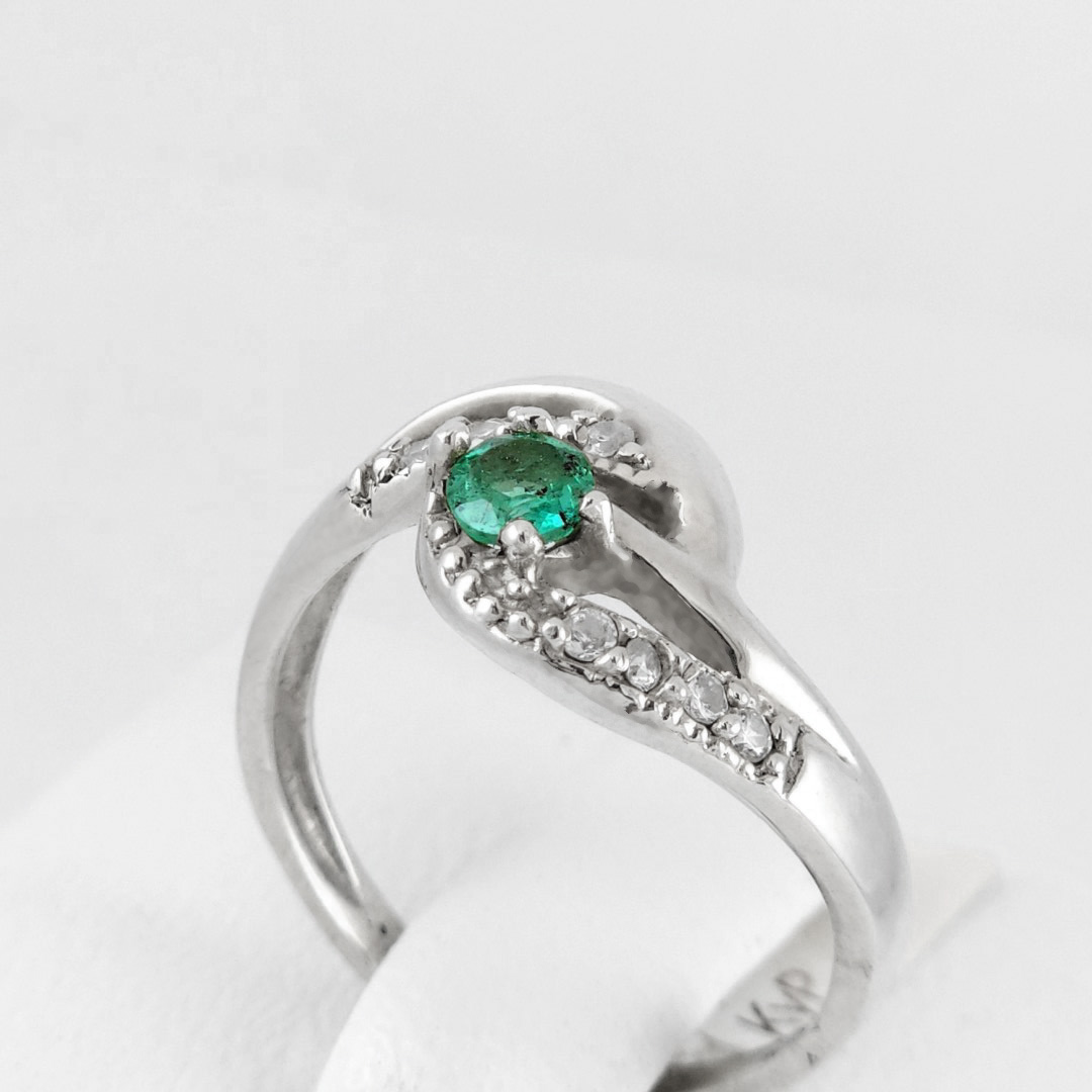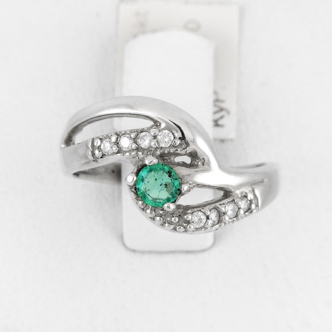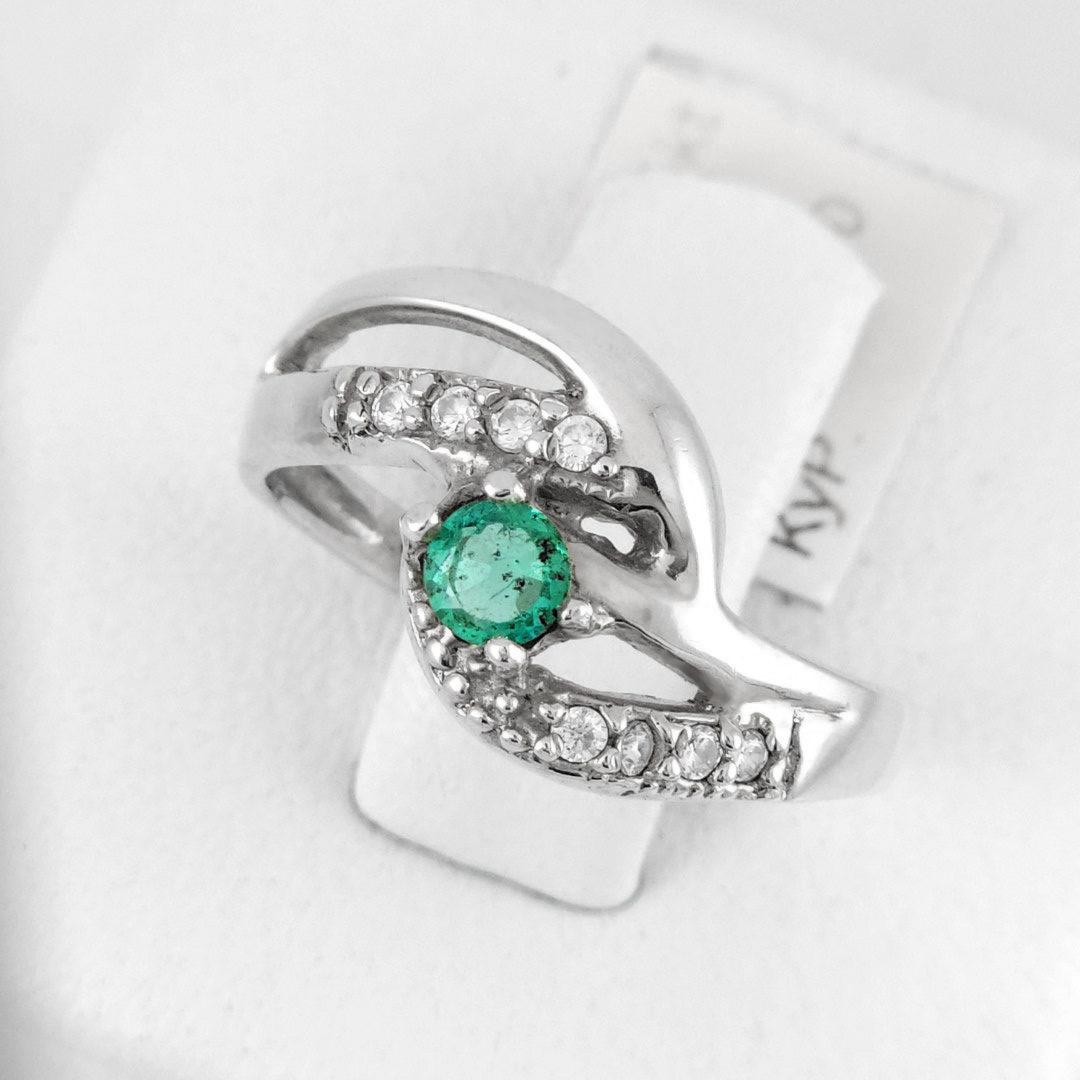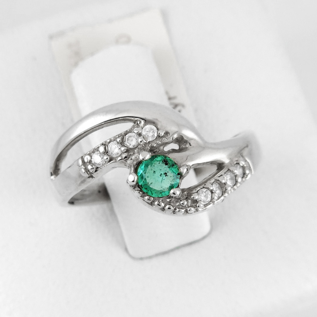 Anillo de plata sólida con esmeralda natural Colombiana y circones. Peso total de la(s) esmeralda(s) 0.26kt