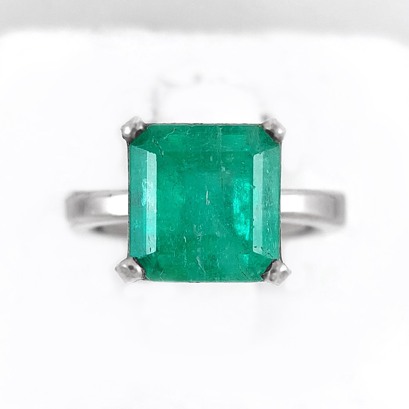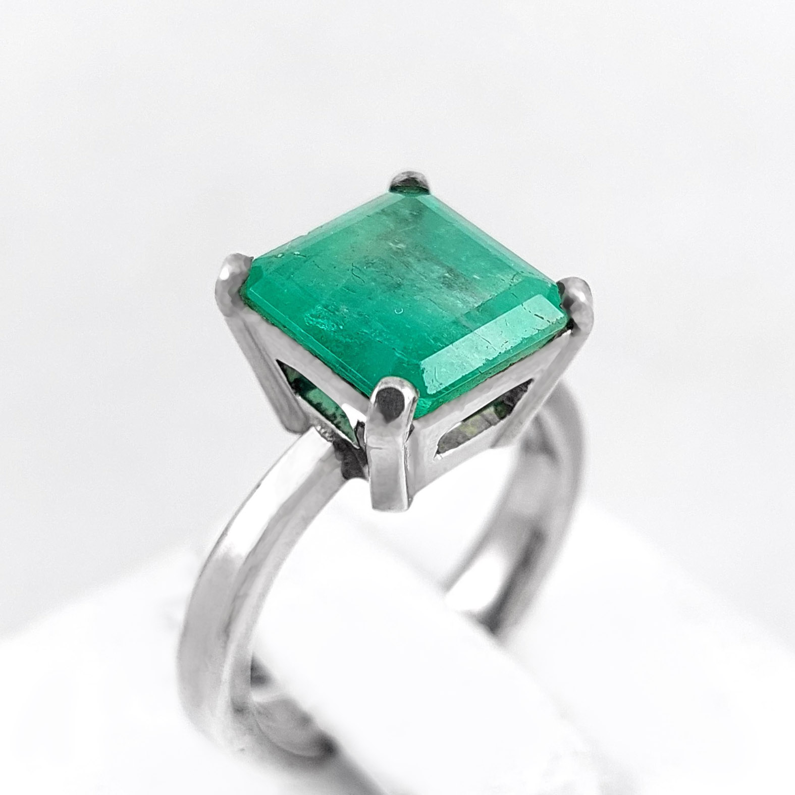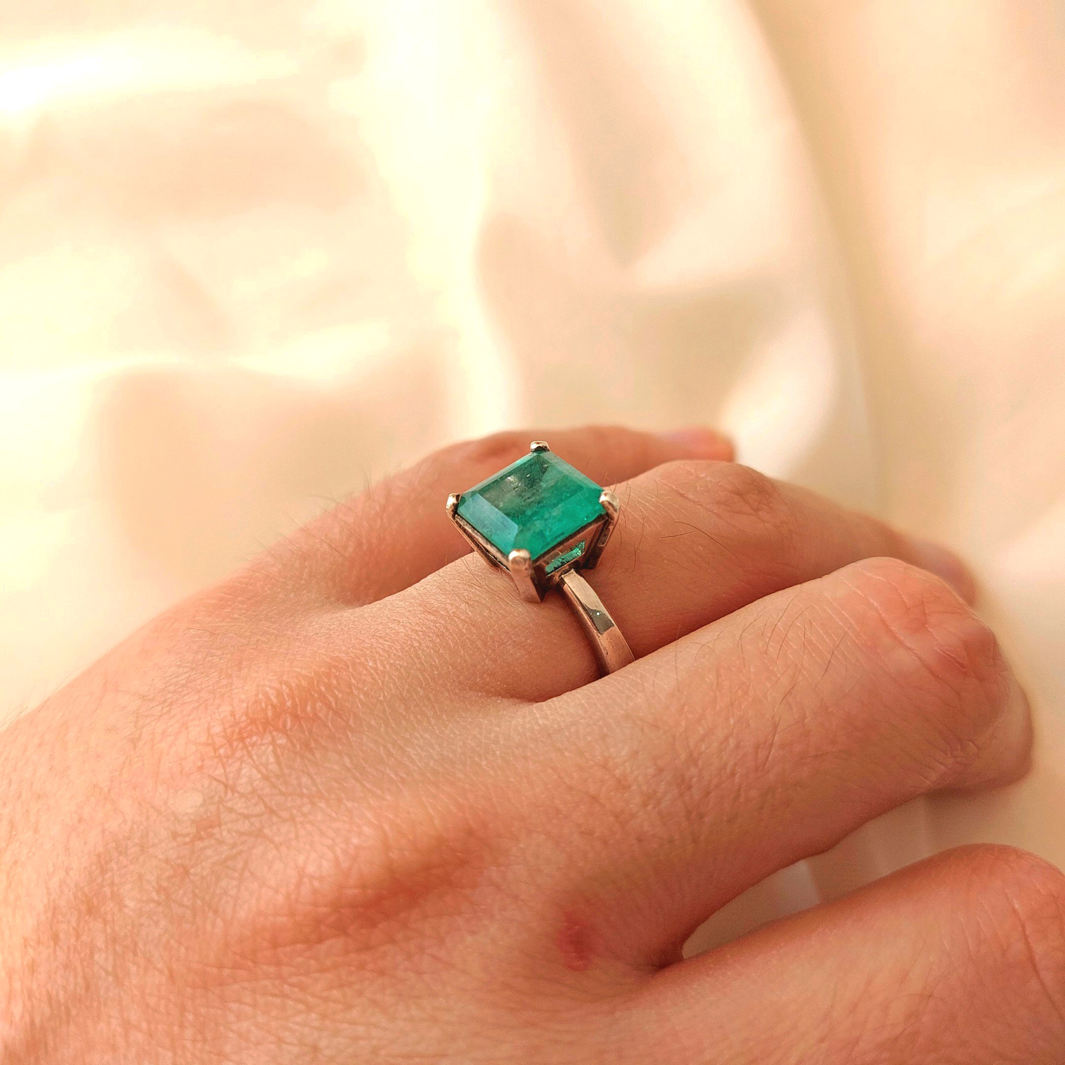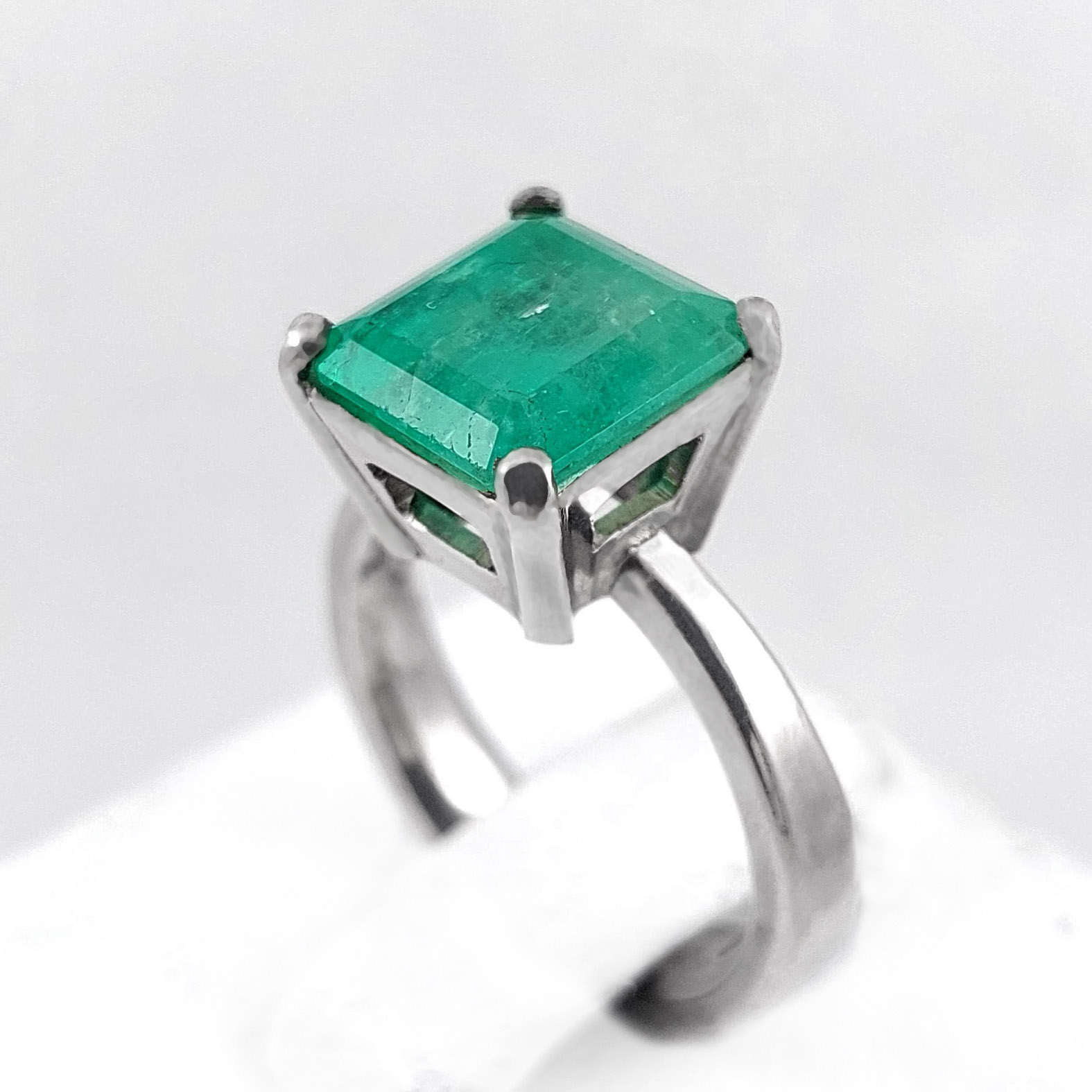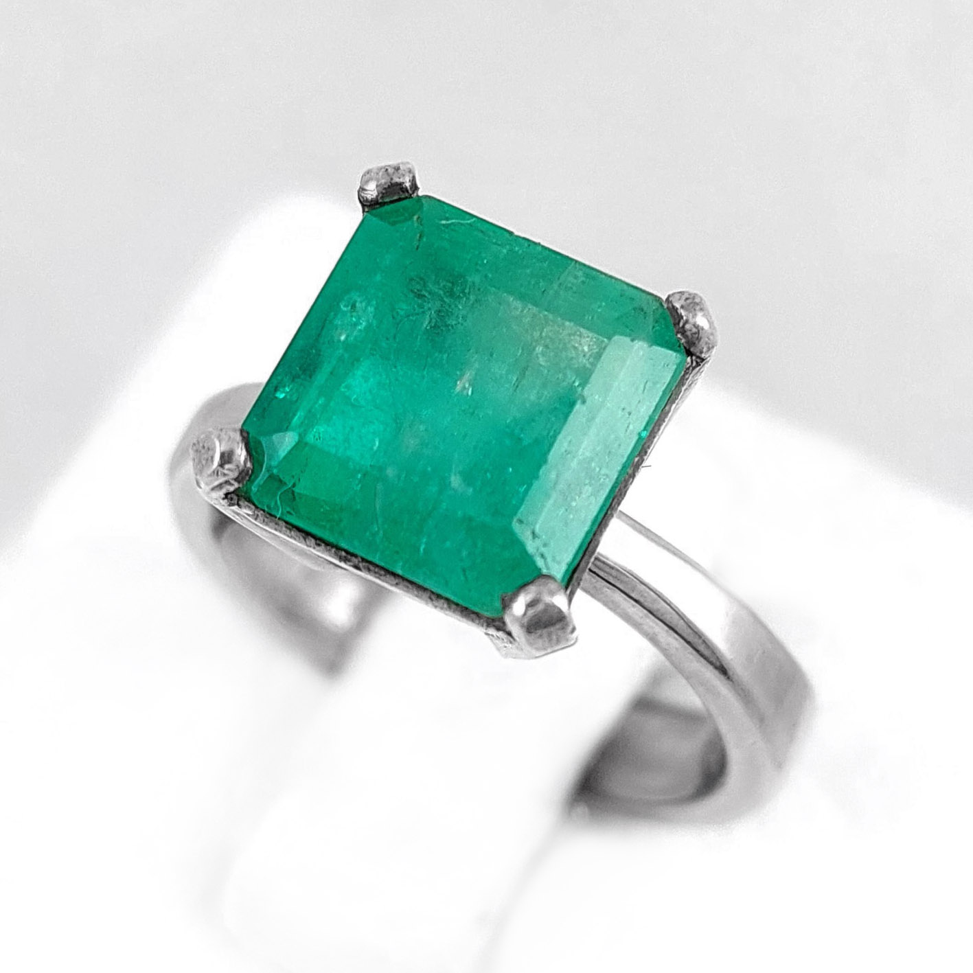 Anillo de plata sólida con esmeralda natural Colombiana. Peso total de la(s) esmeralda(s) 4.98kt