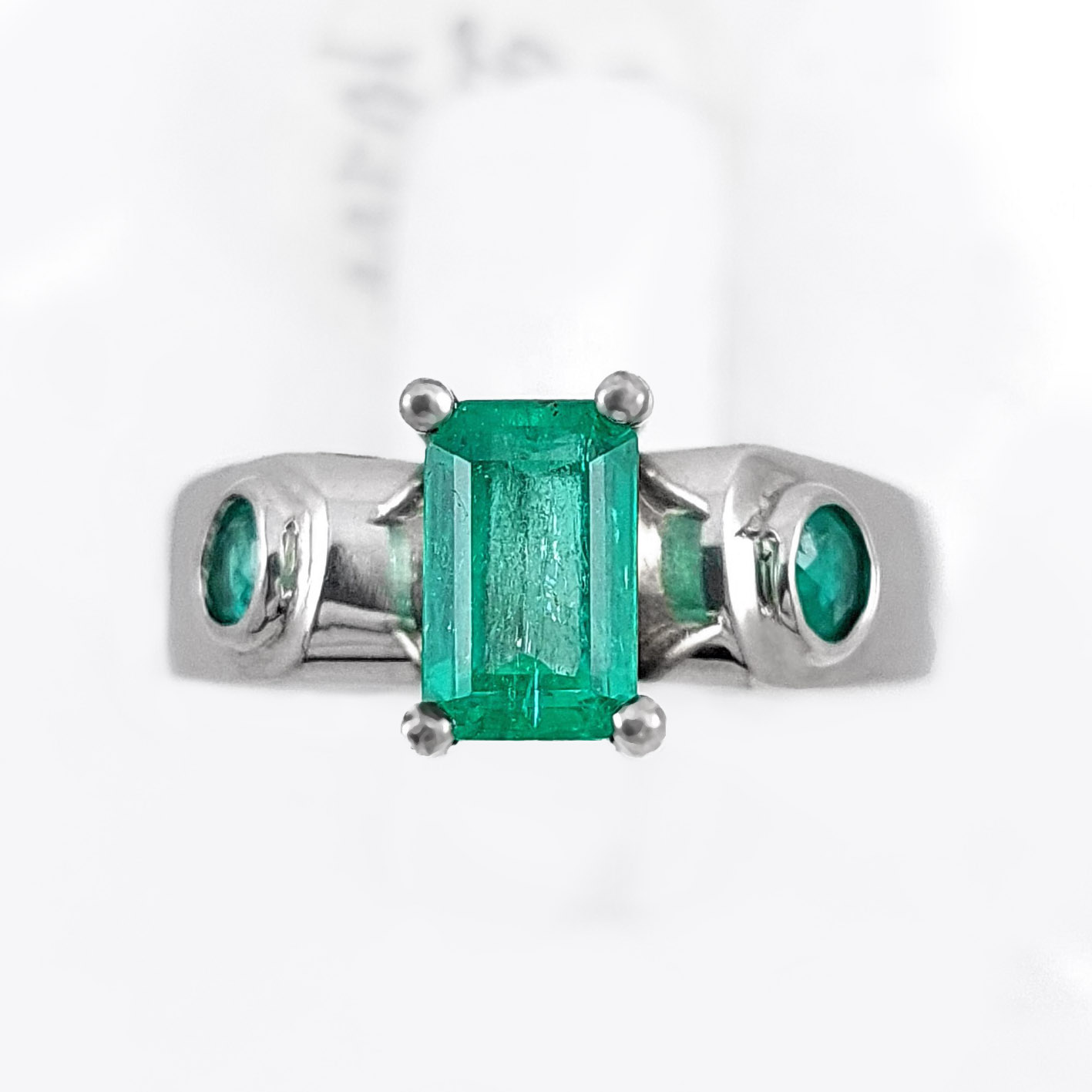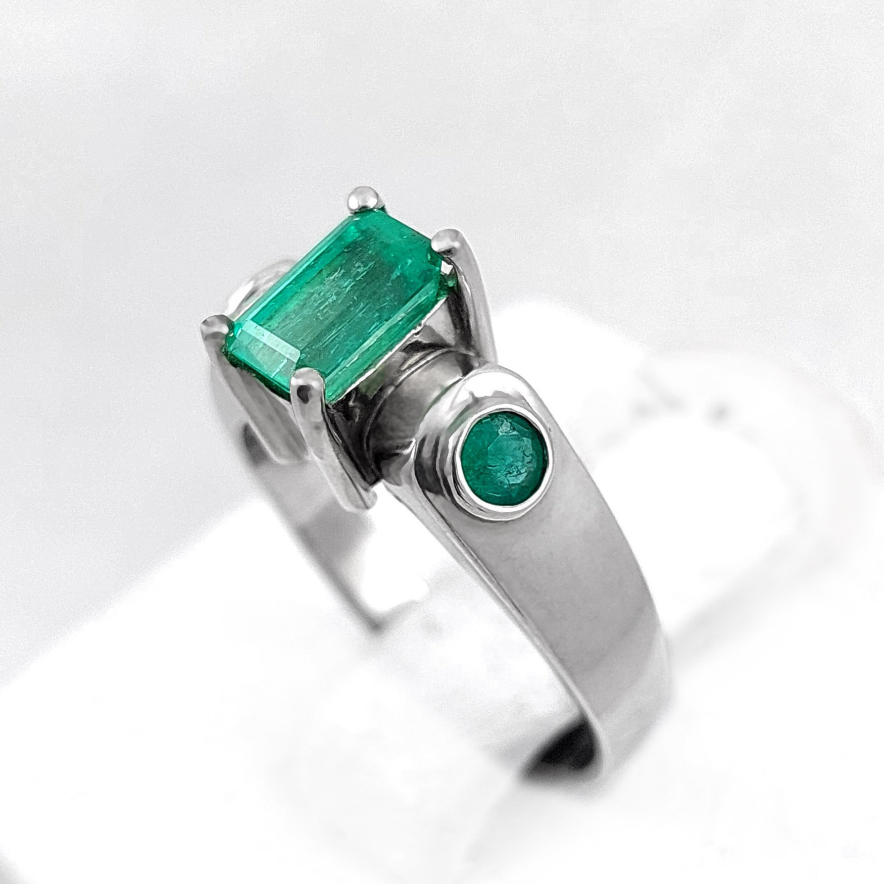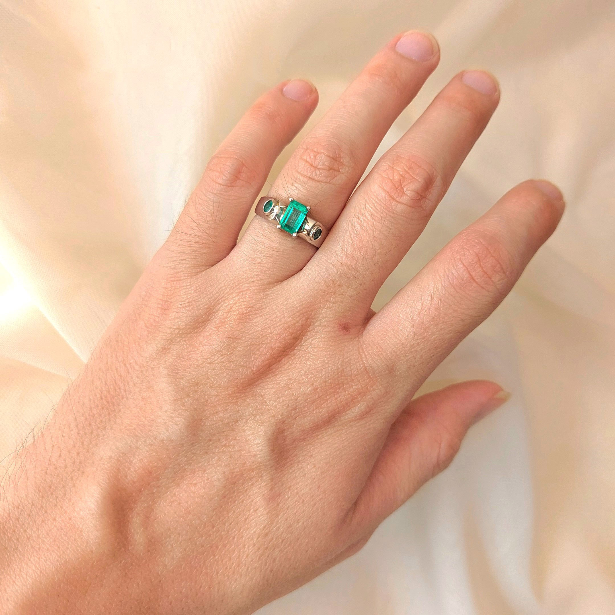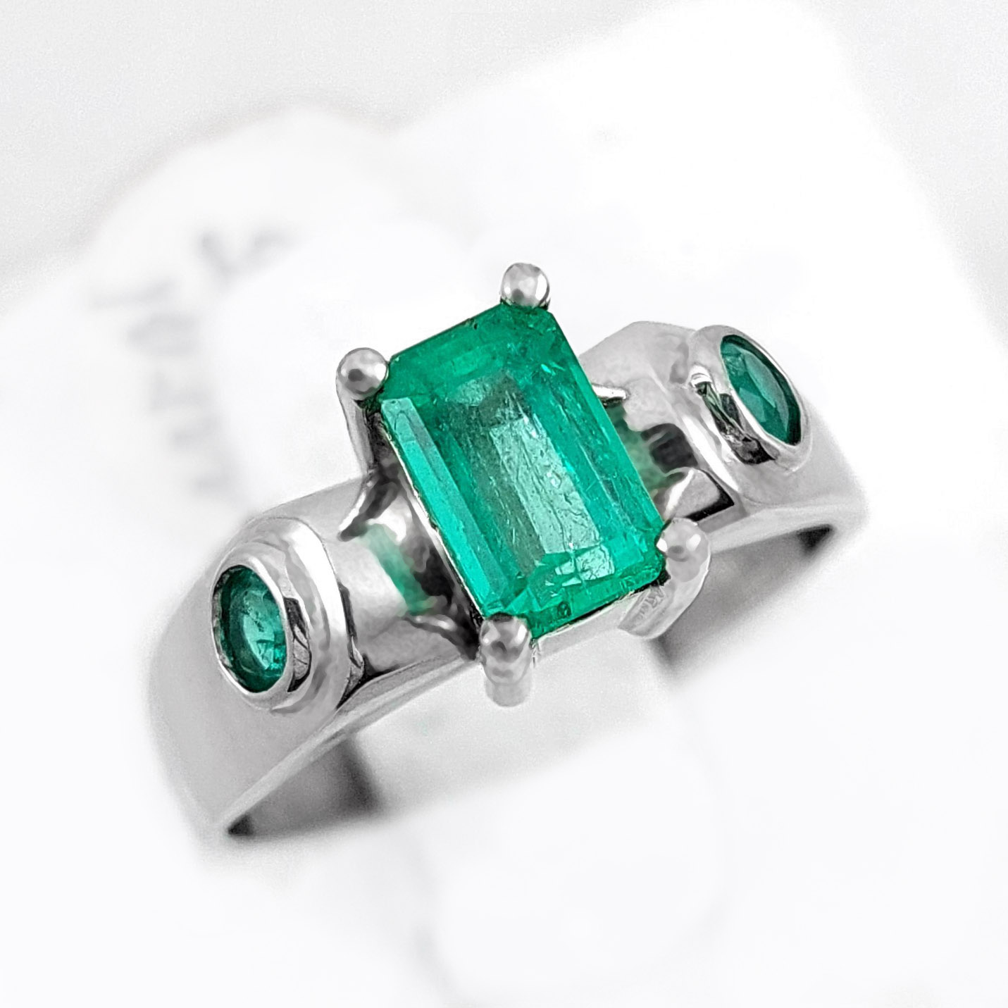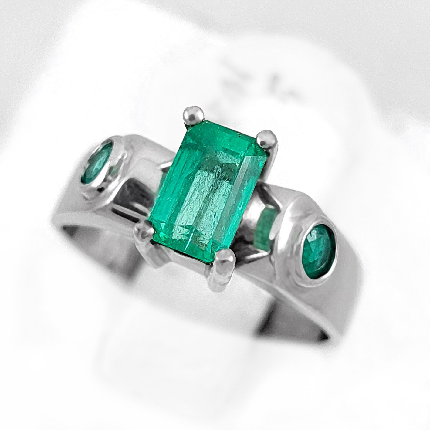 Anillo de plata sólida con esmeralda natural Colombiana. Peso total de la(s) esmeralda(s) 1kt