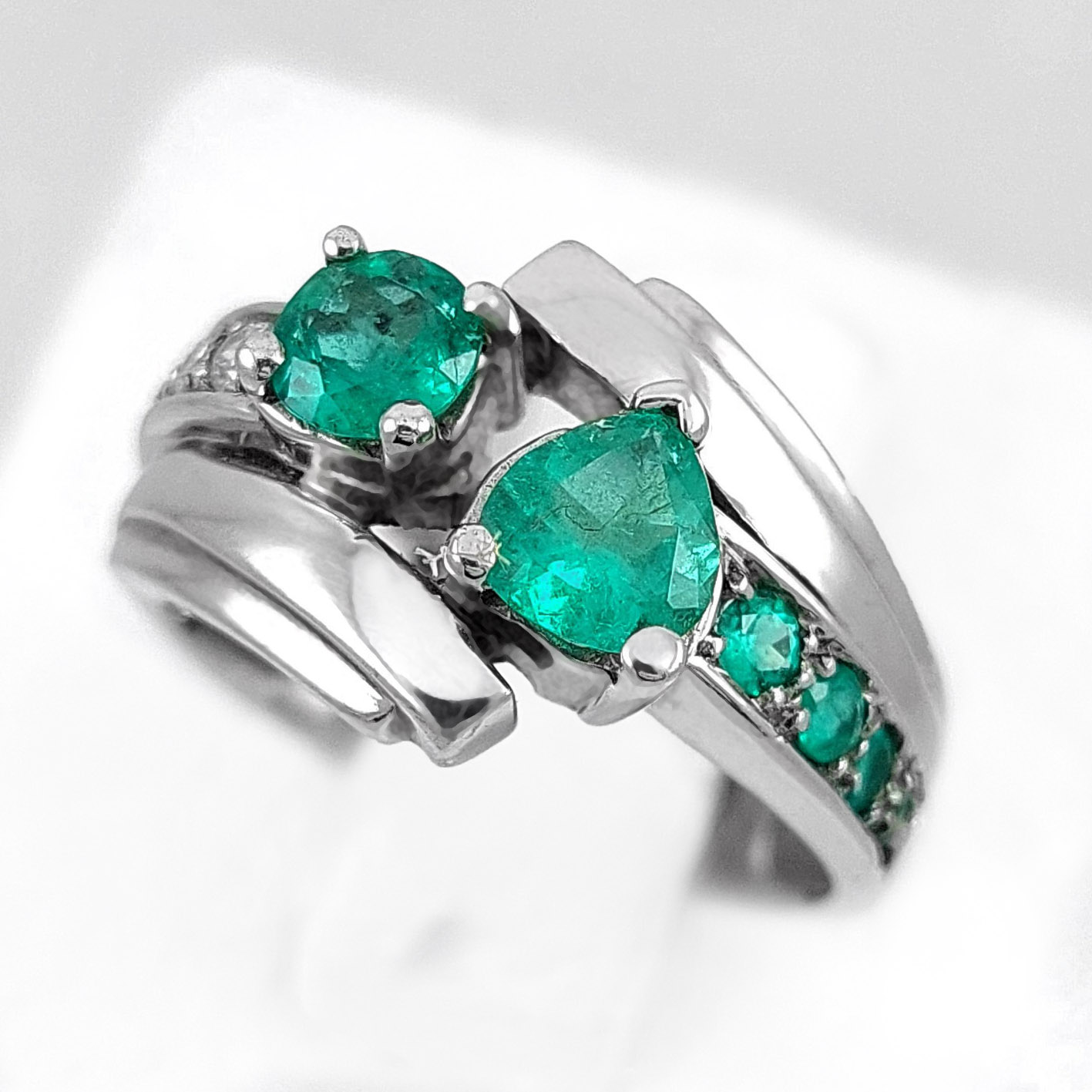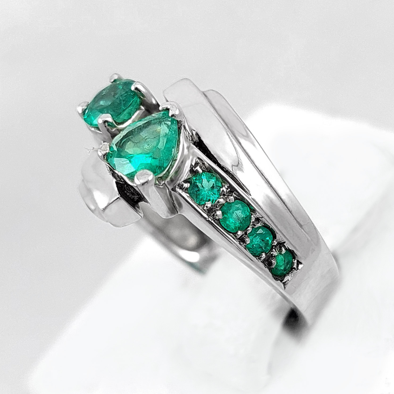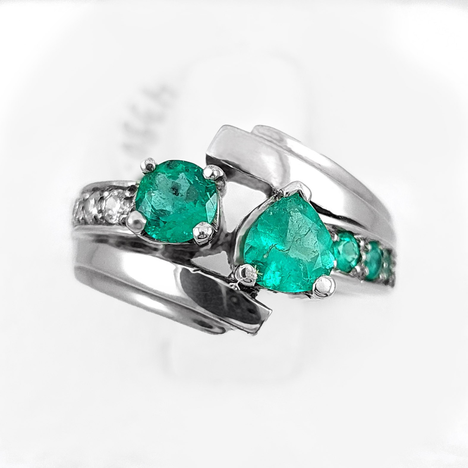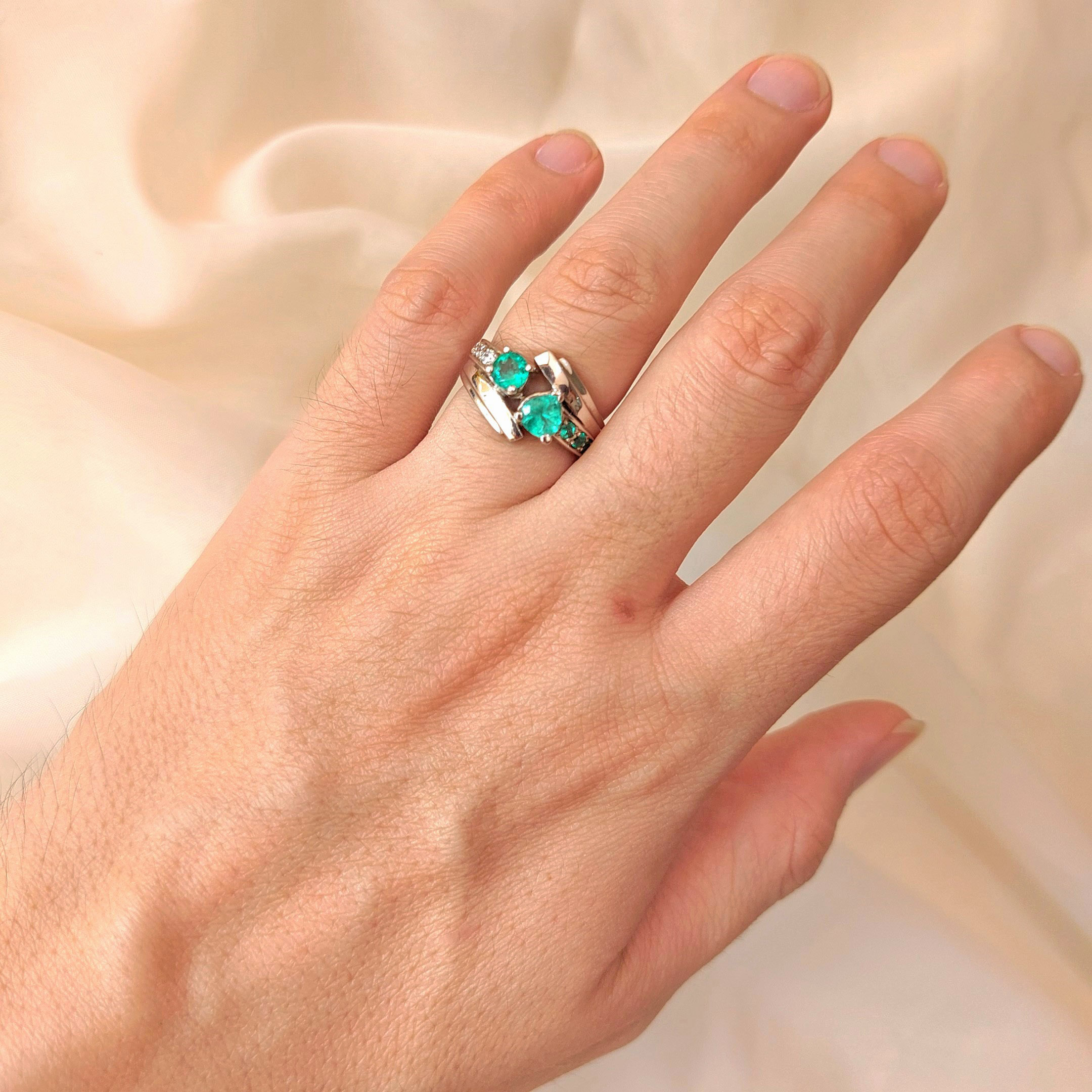 Anillo de plata sólida con esmeralda natural Colombiana y circones. Peso total de la(s) esmeralda(s) 1kt