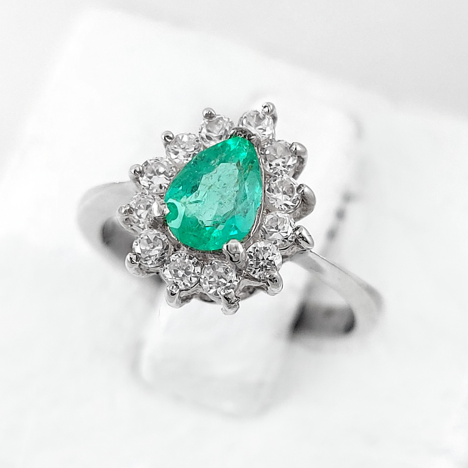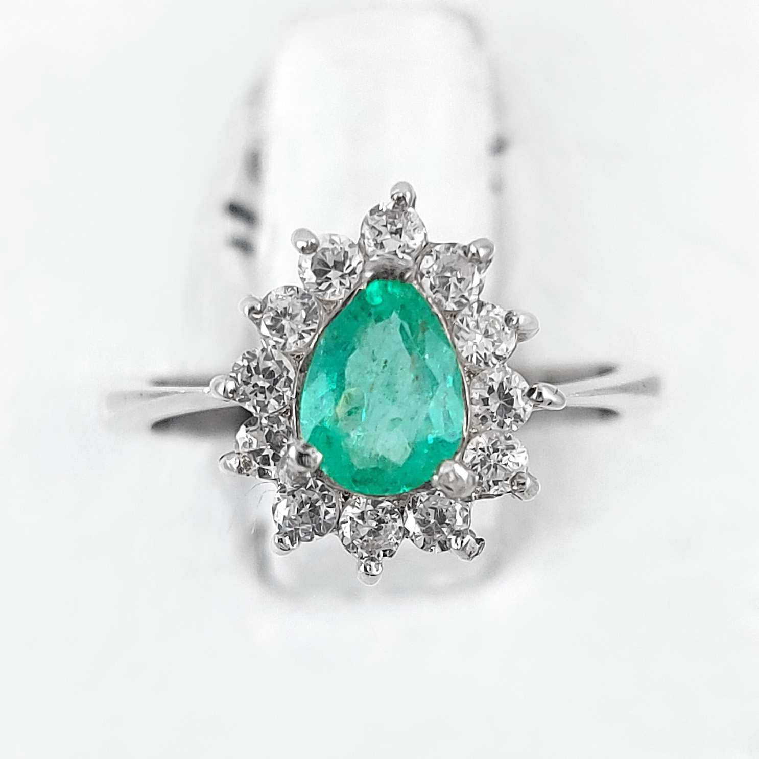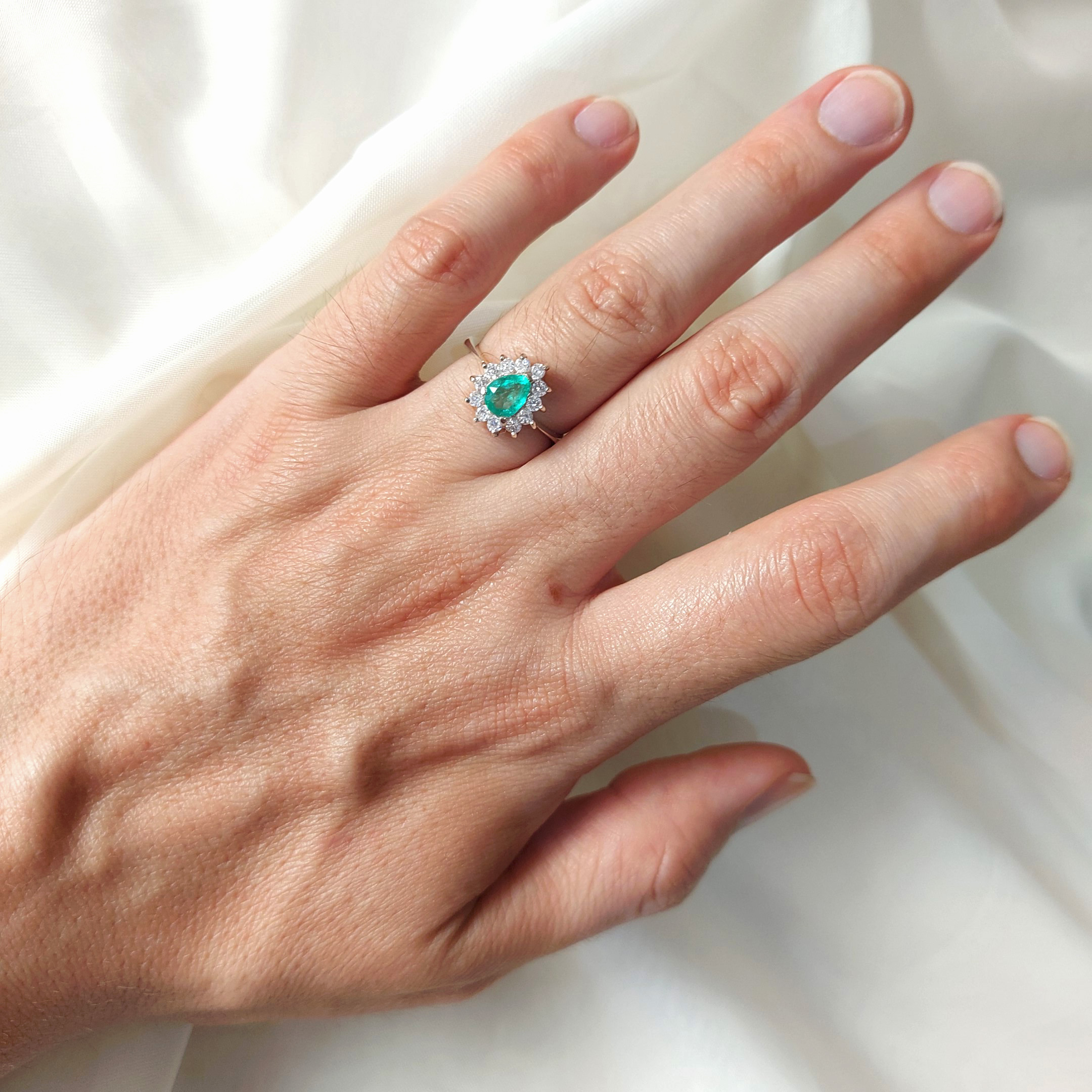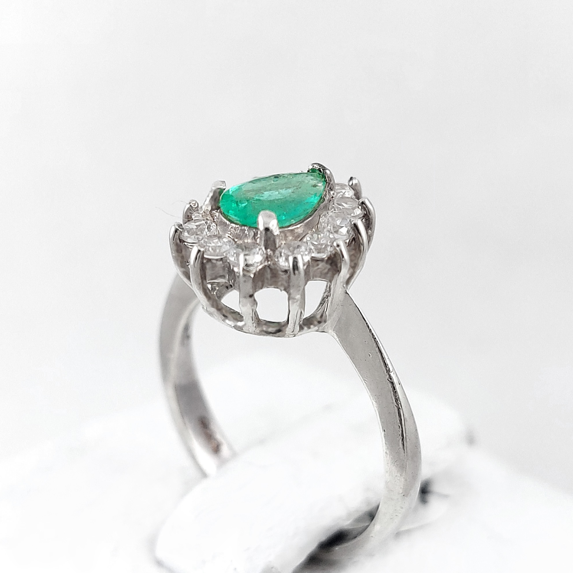 Anillo de plata sólida con esmeralda natural Colombiana y circones. Peso total de la(s) esmeralda(s) 1kt