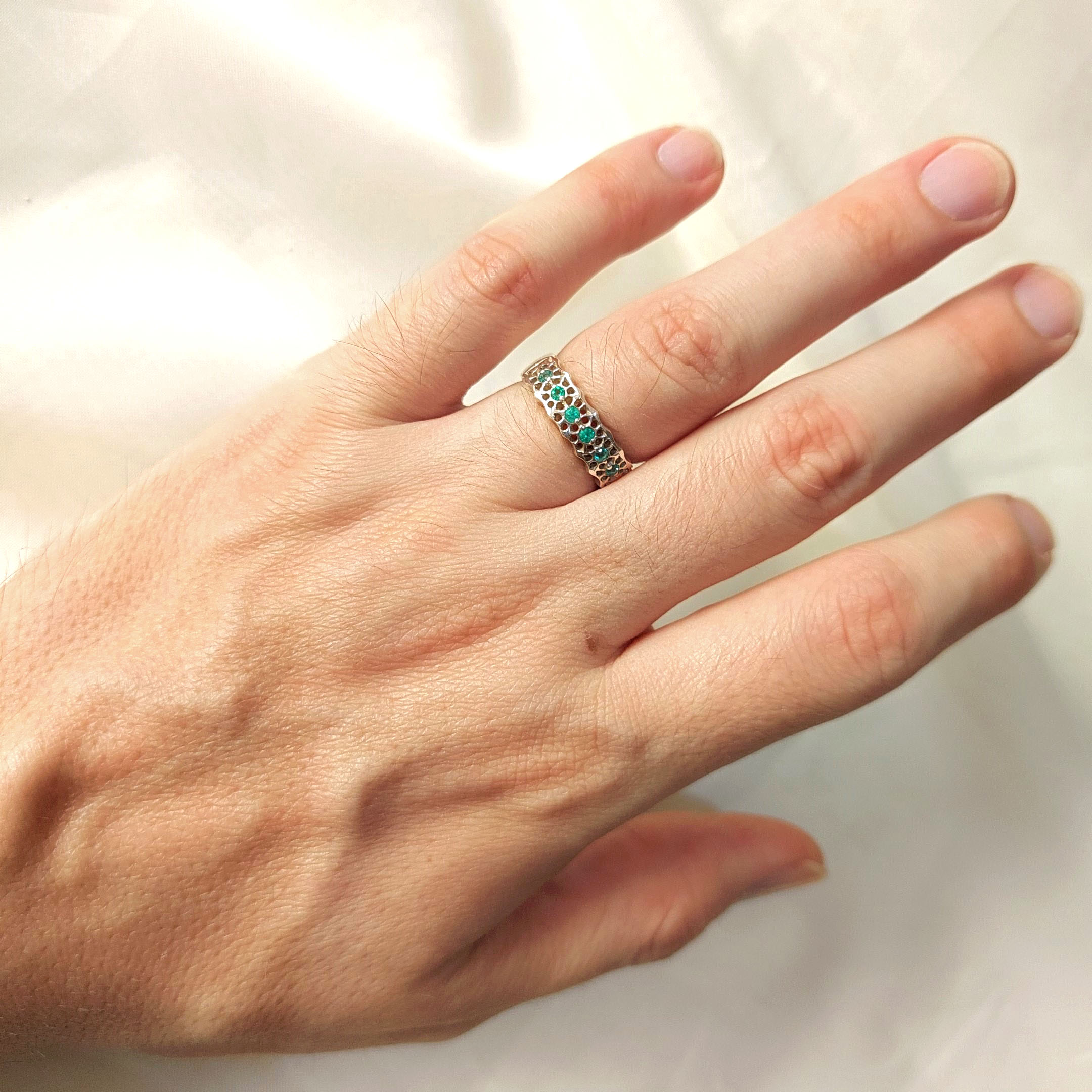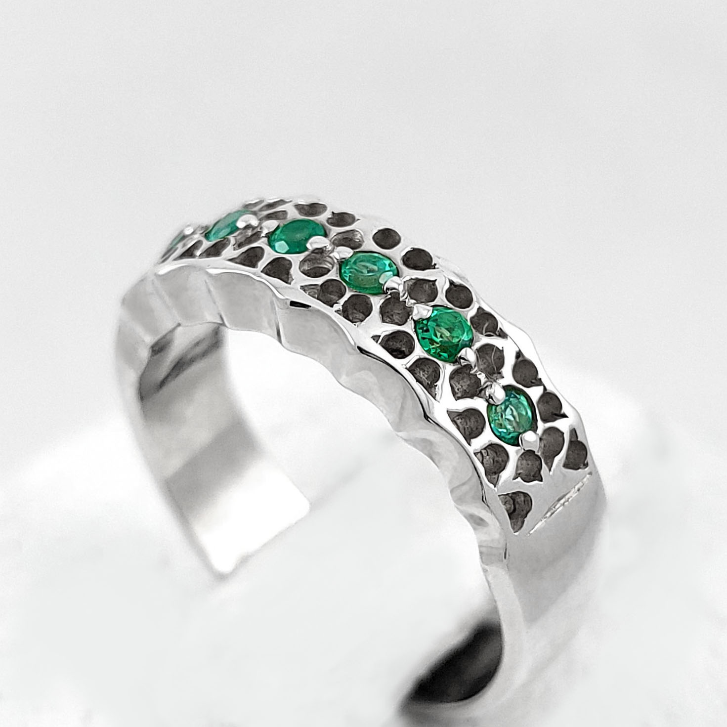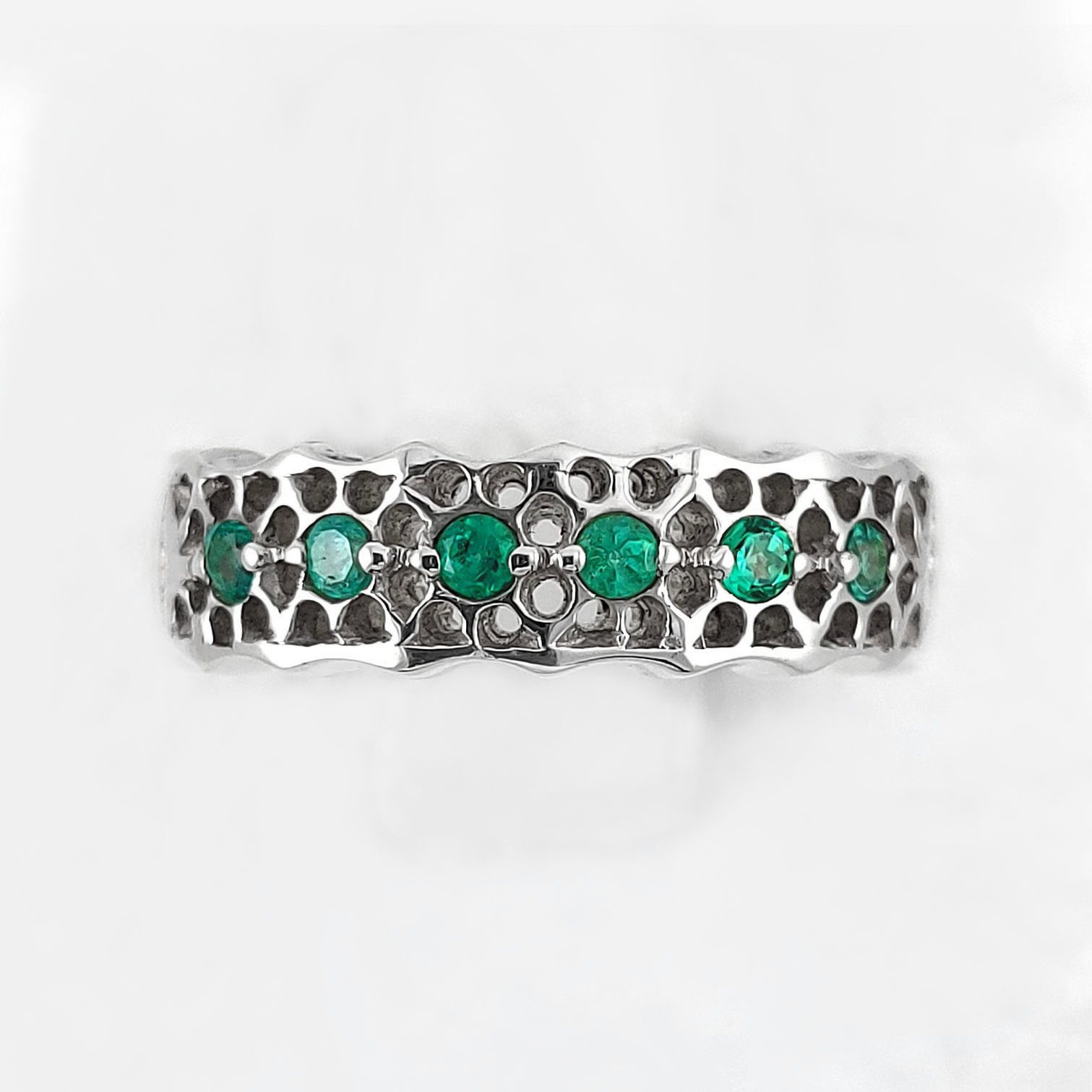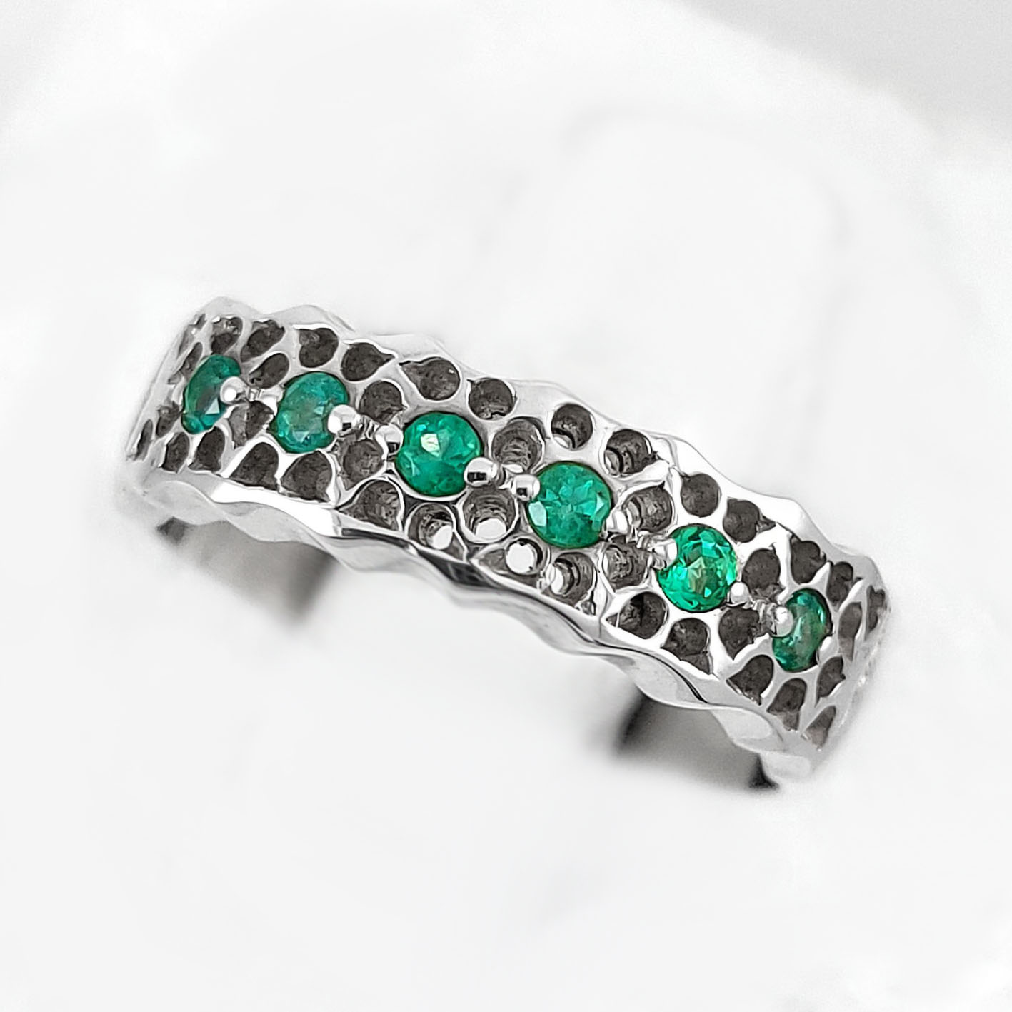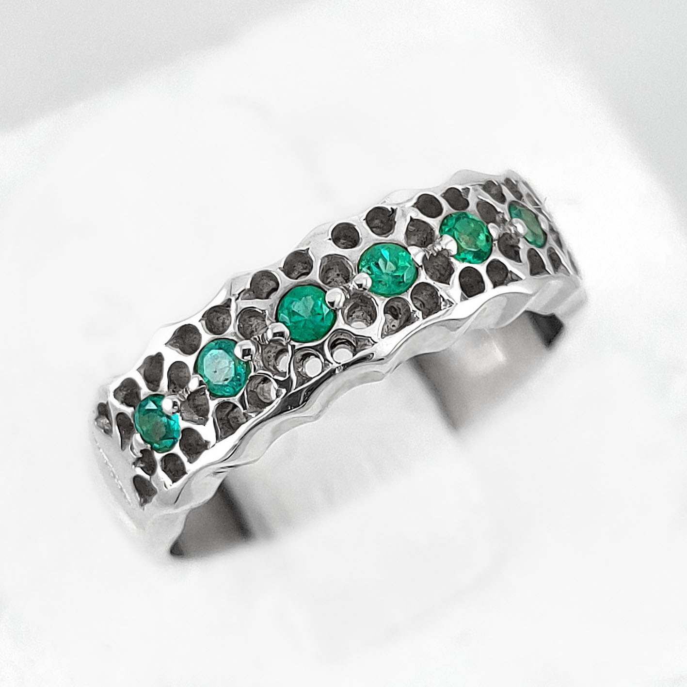 Anillo de plata sólida con esmeralda natural Colombiana. Peso total de la(s) esmeralda(s) 0.22kt