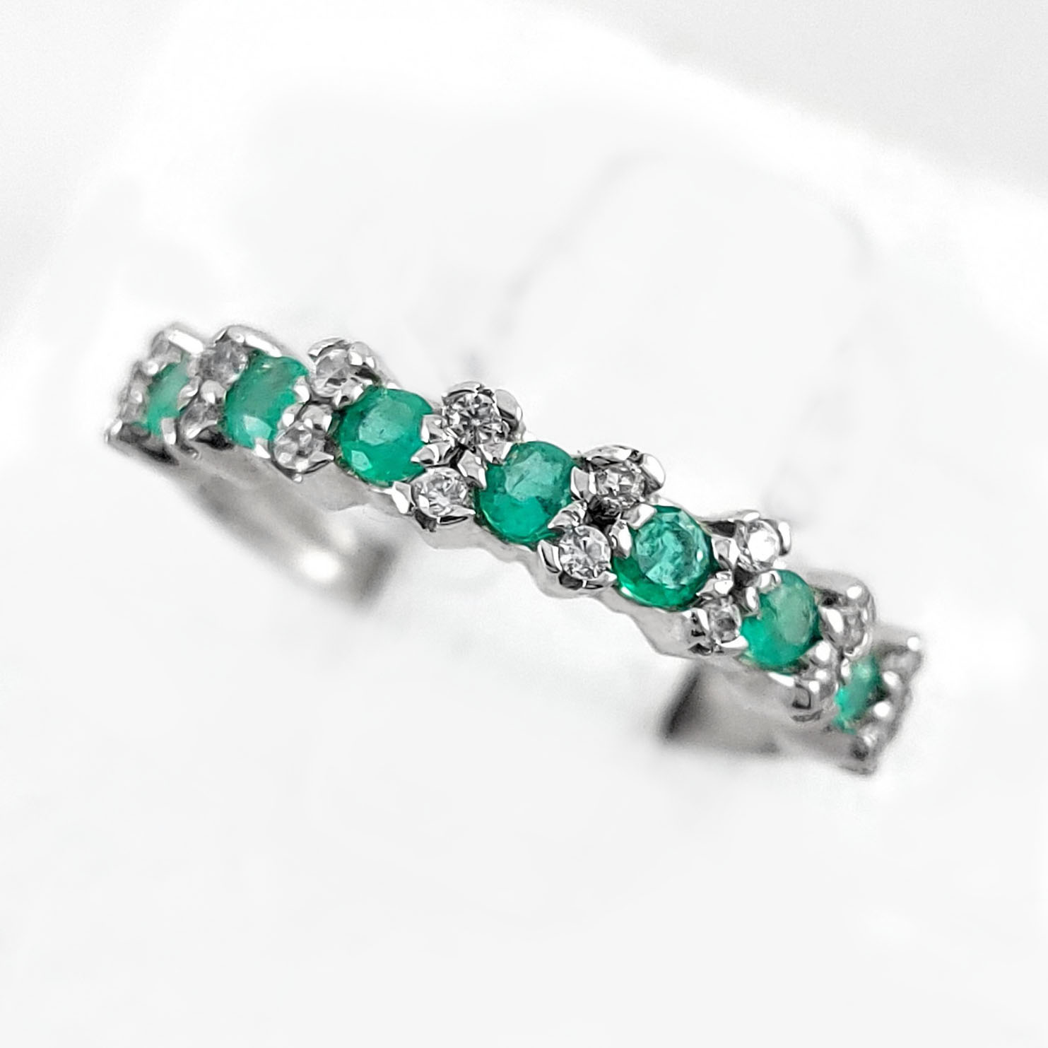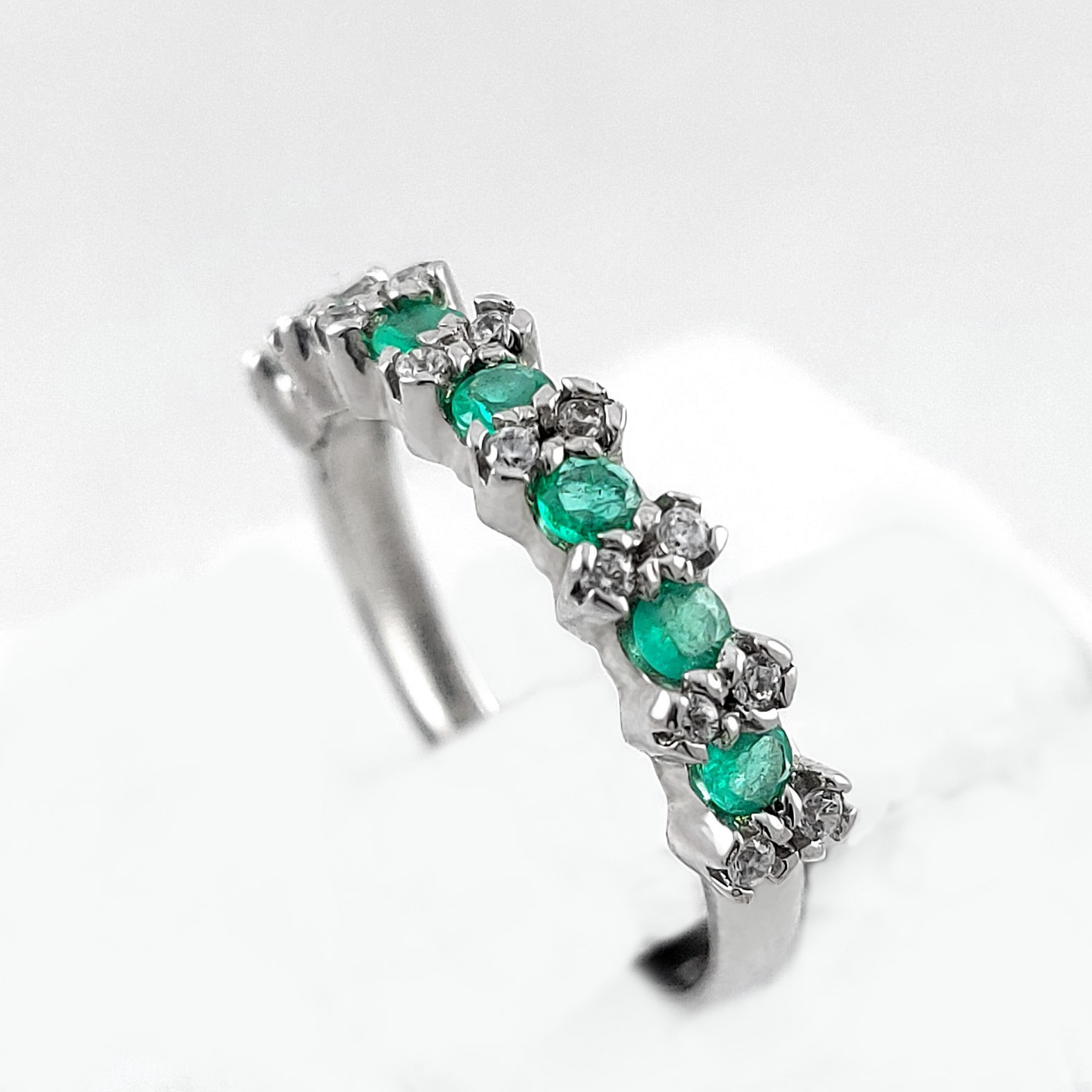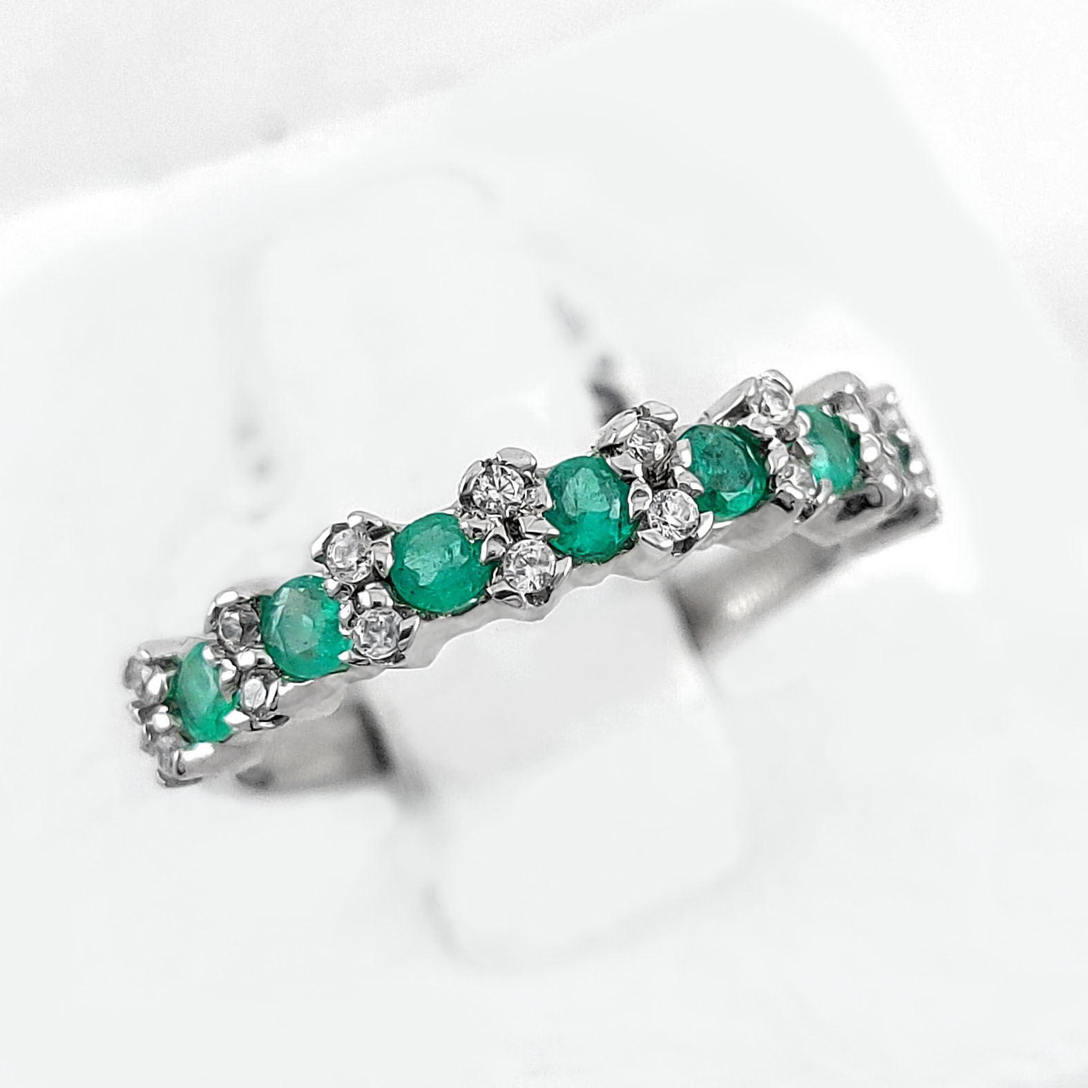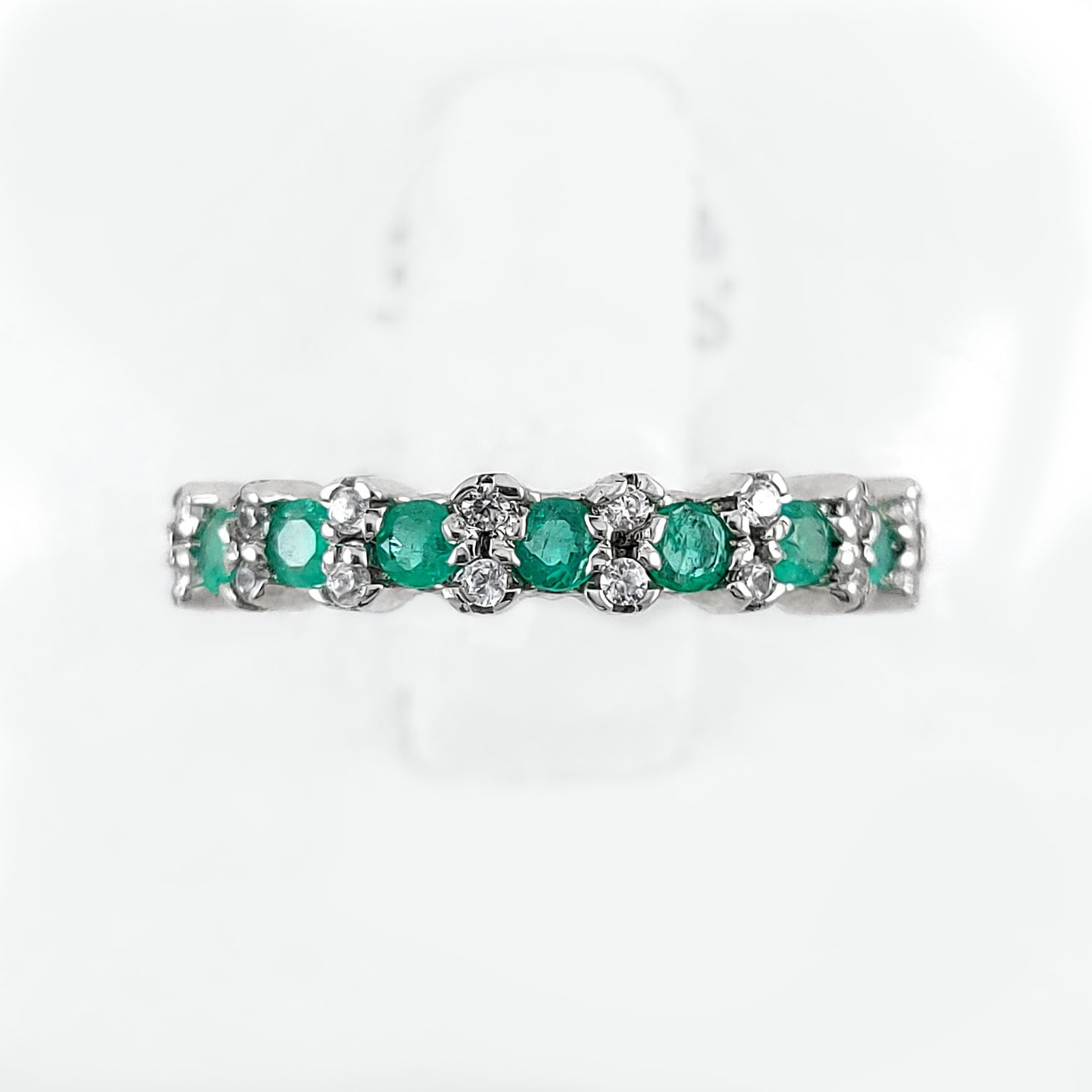 Anillo de plata sólida con esmeralda natural Colombiana y circones. Peso total de la(s) esmeralda(s) 0.60