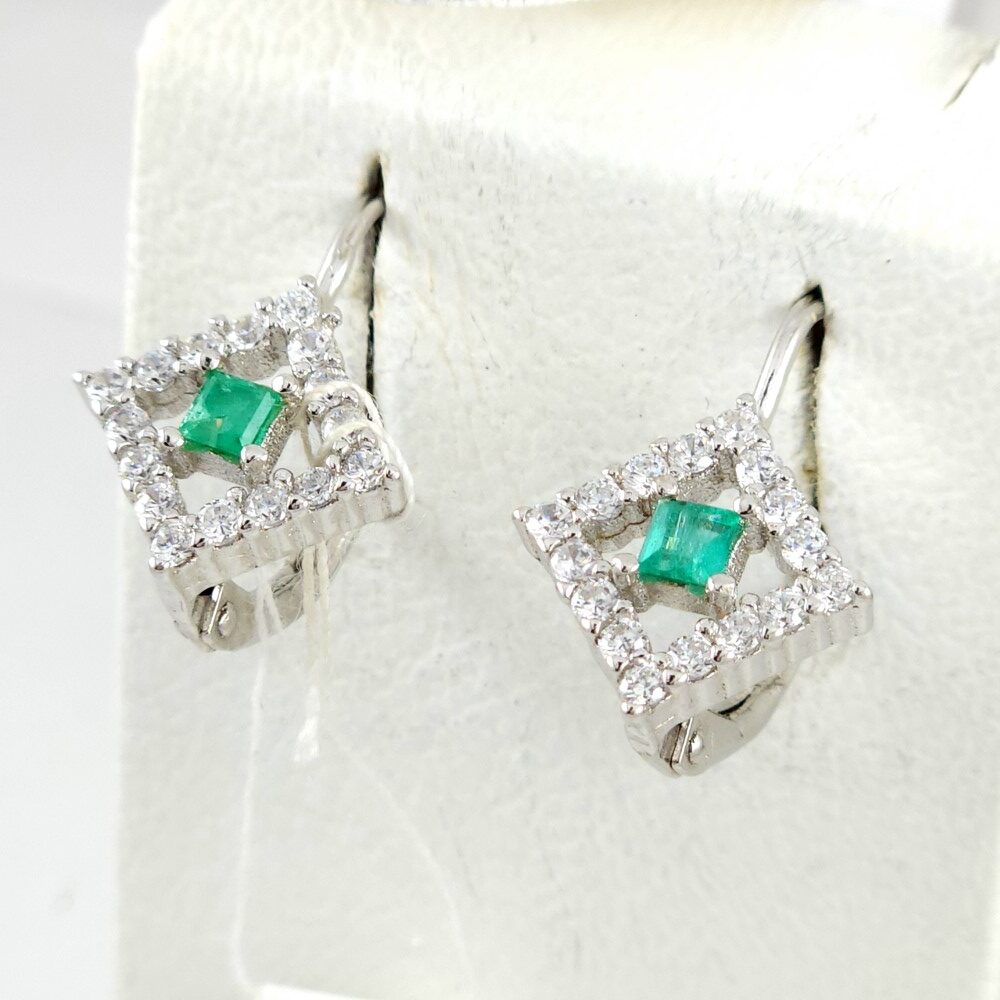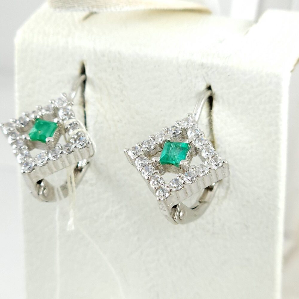 Aretes de plata sólida con esmeralda natural Colombiana garantizada, peso total de la o las esmeraldas 0.24kt