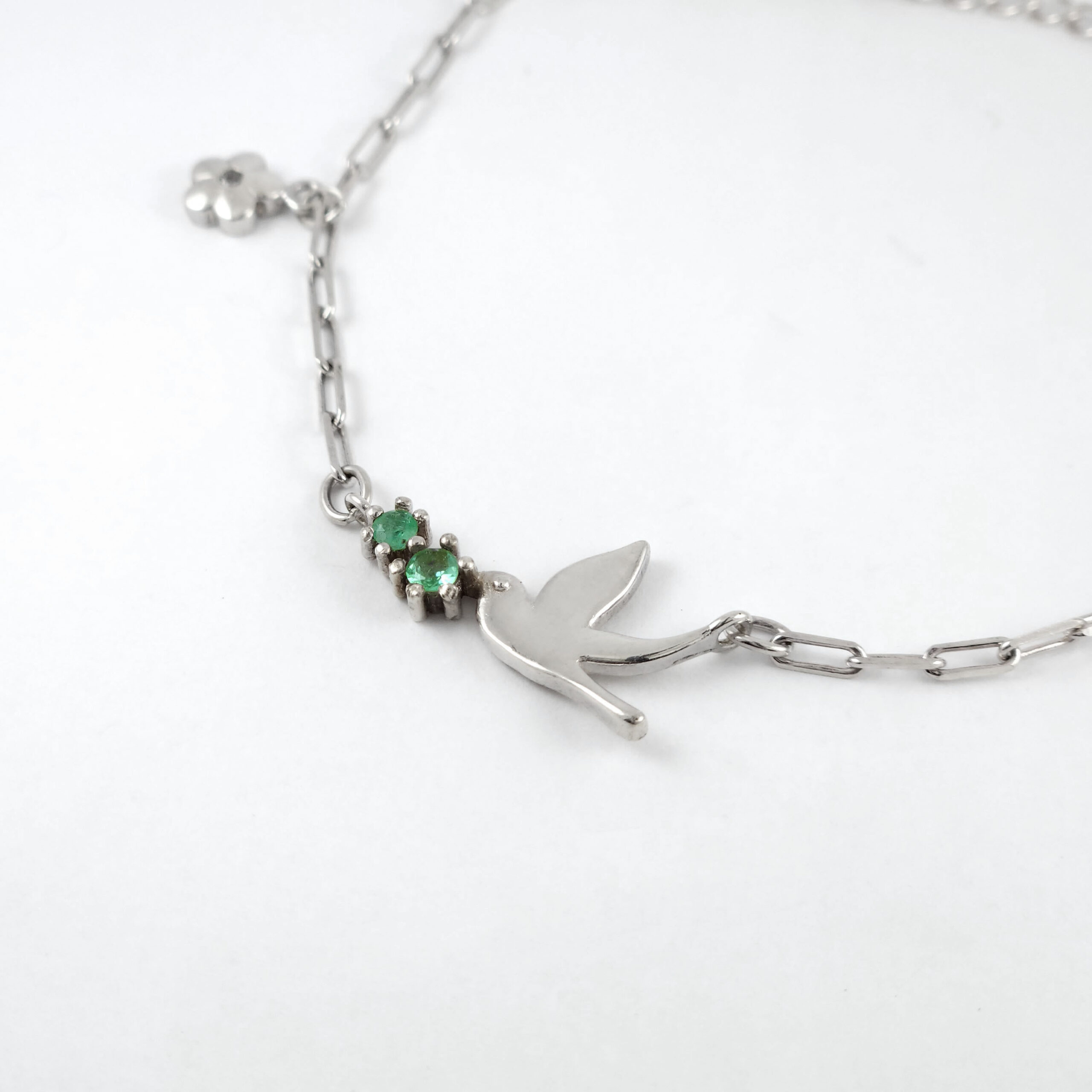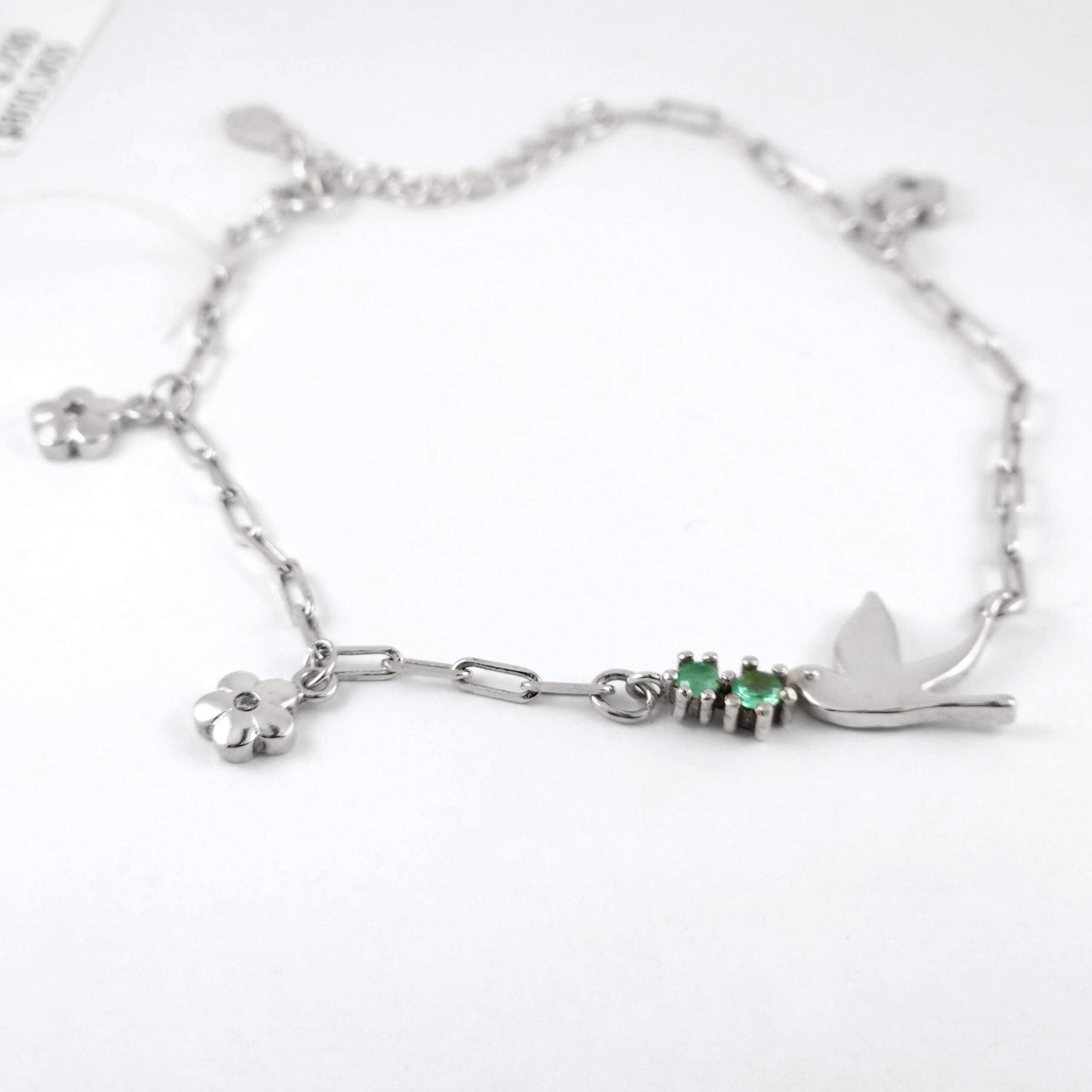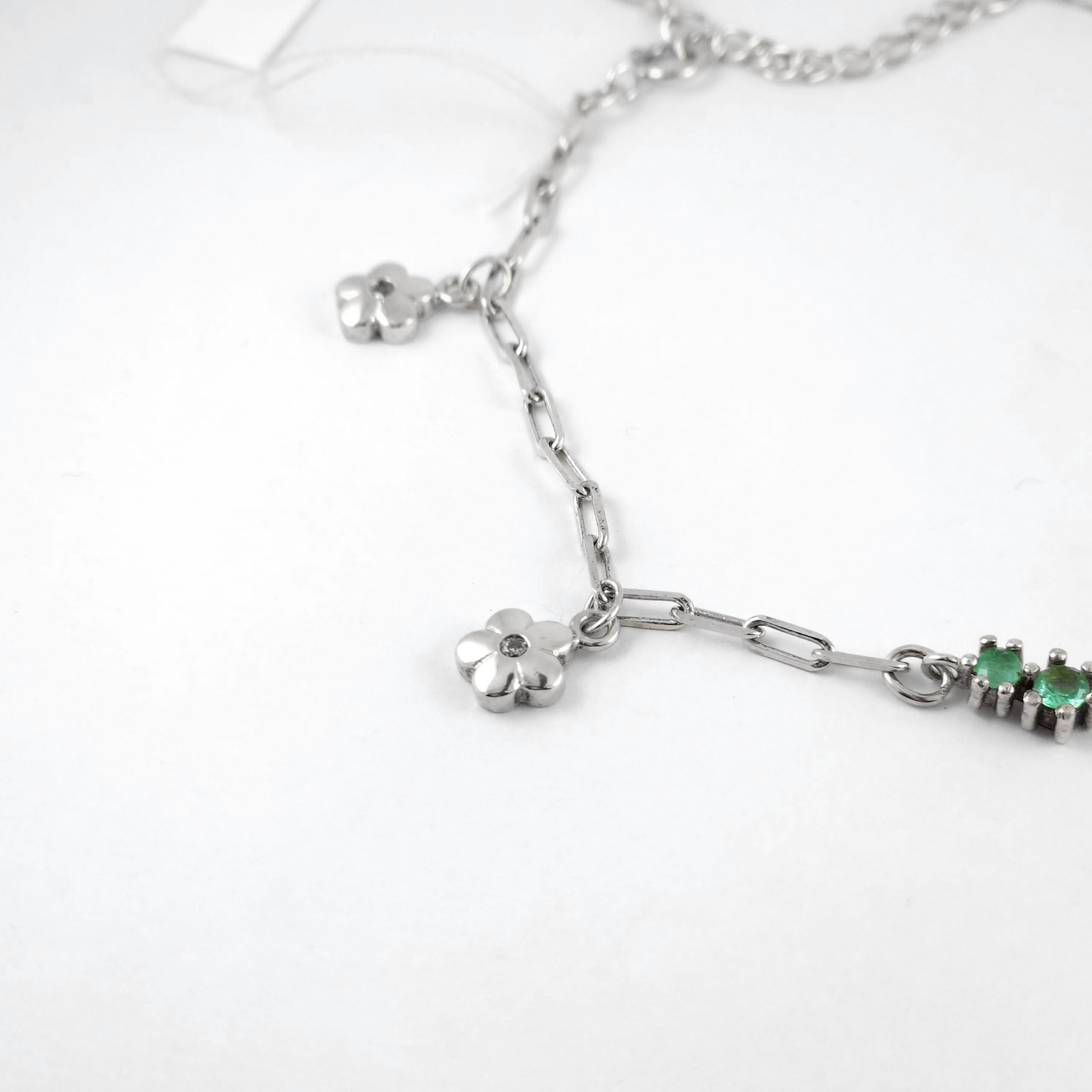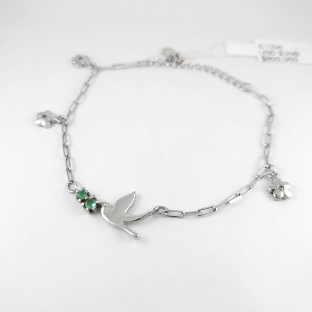 Pulsera de plata sólida con esmeralda natural Colombiana garantizada, peso total de la o las esmeraldas 0.12kt